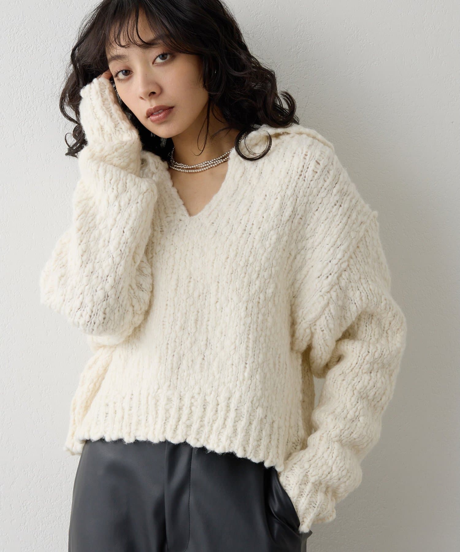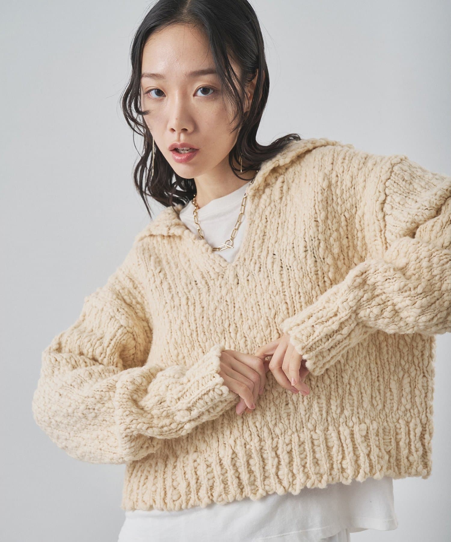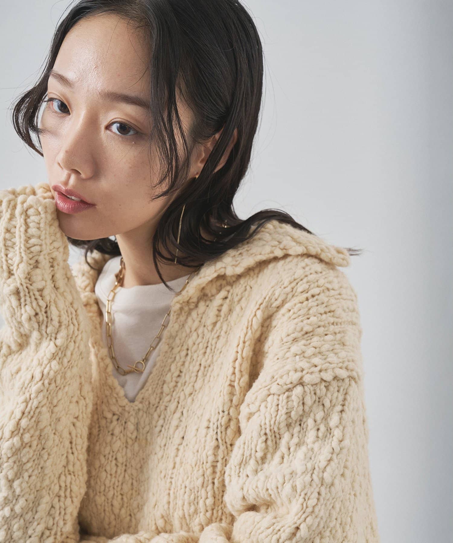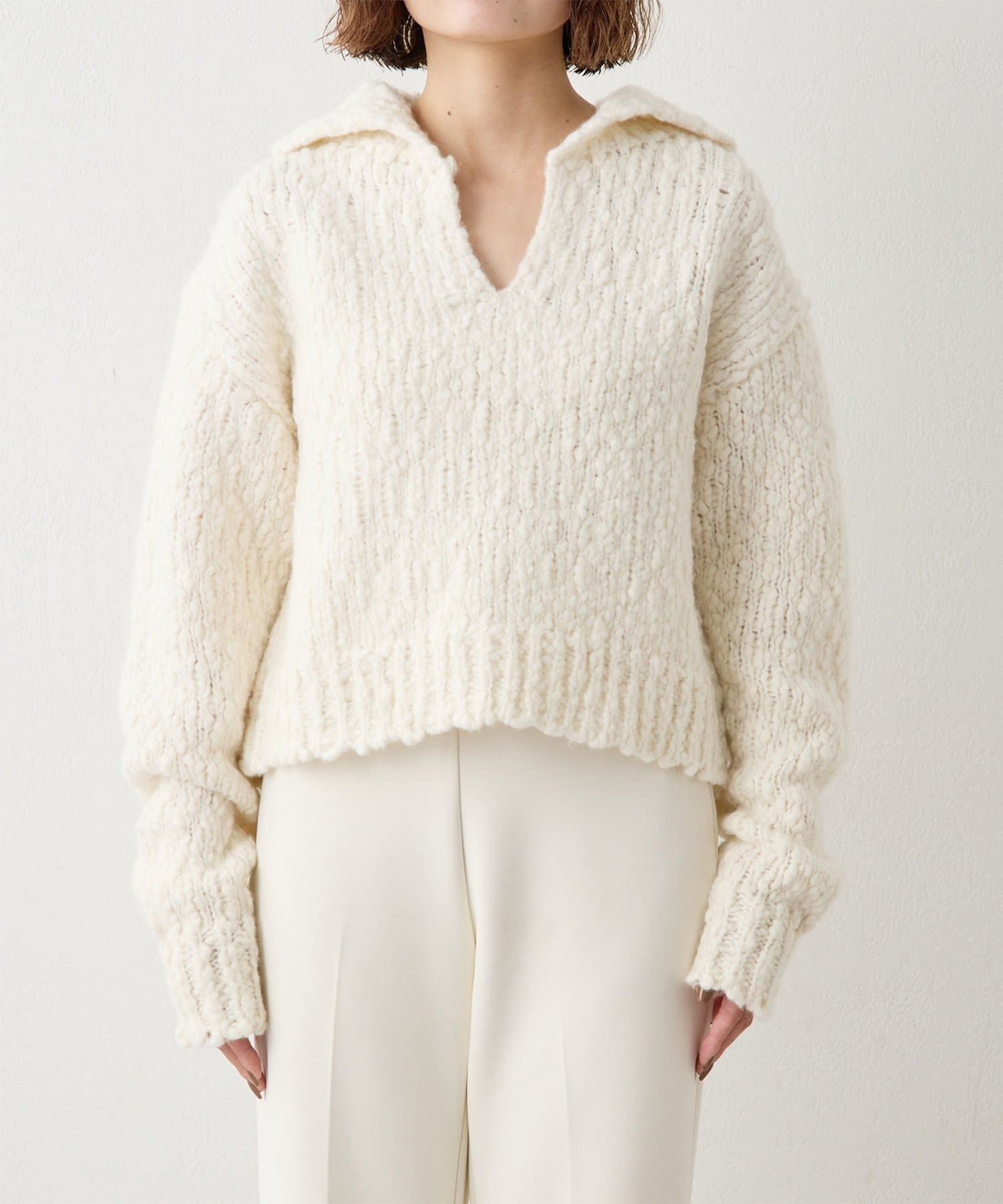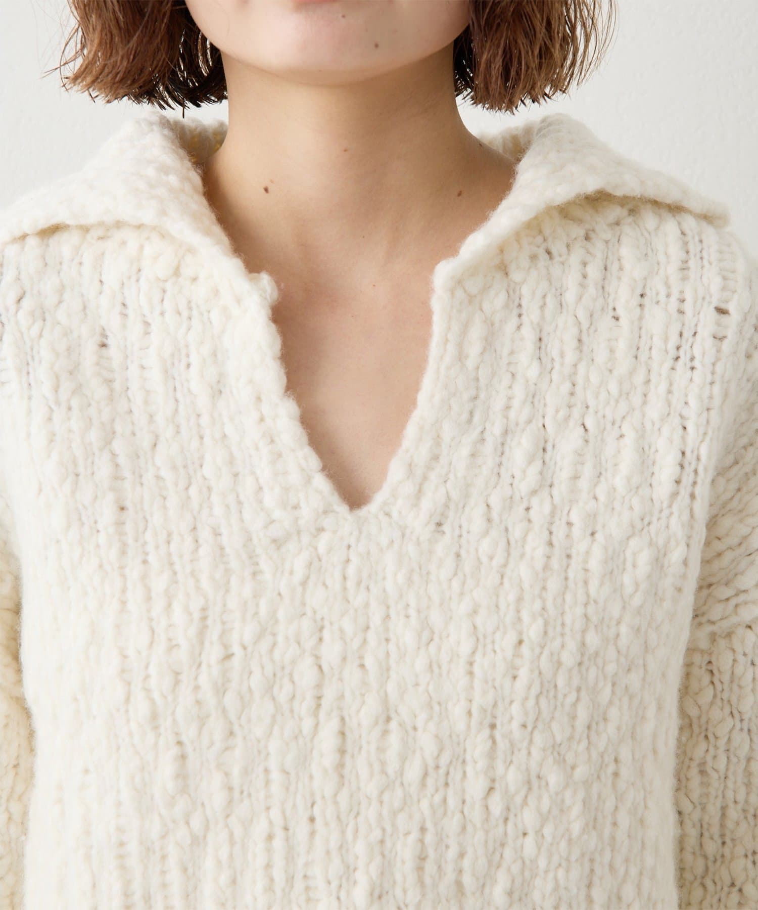 糸の豊かな表情が際立つ、着映えスキッパーニット
