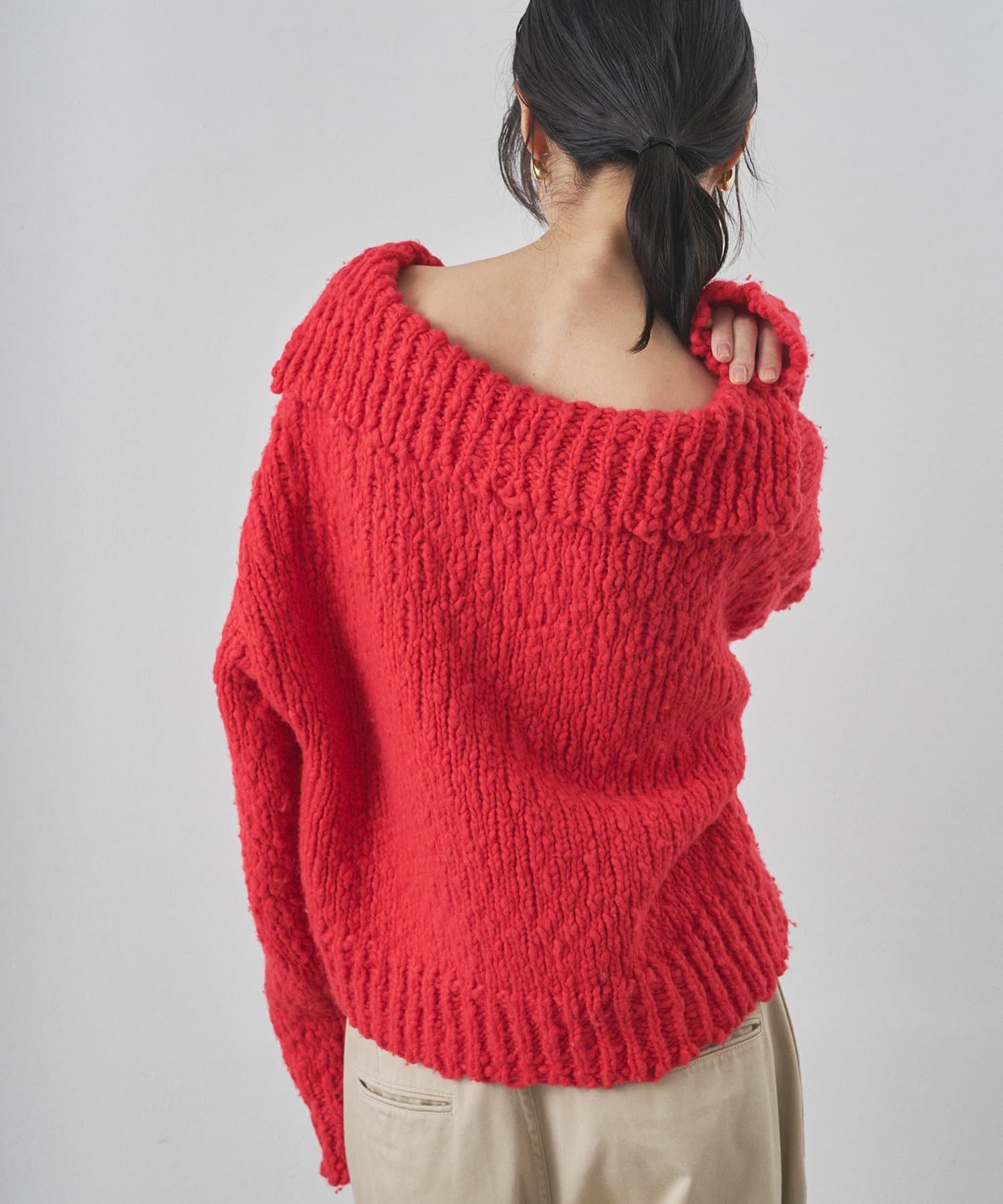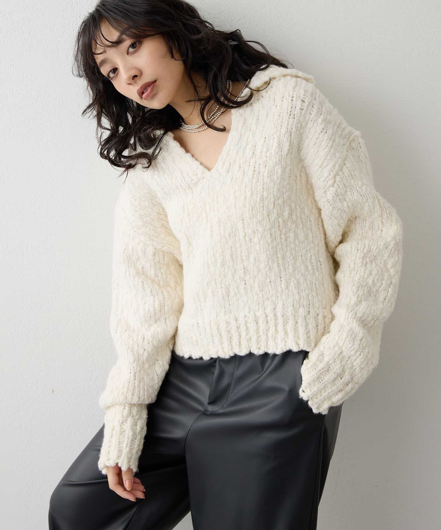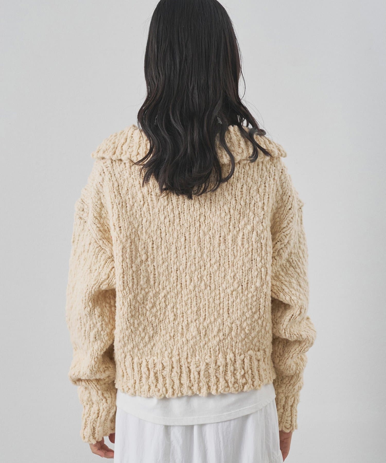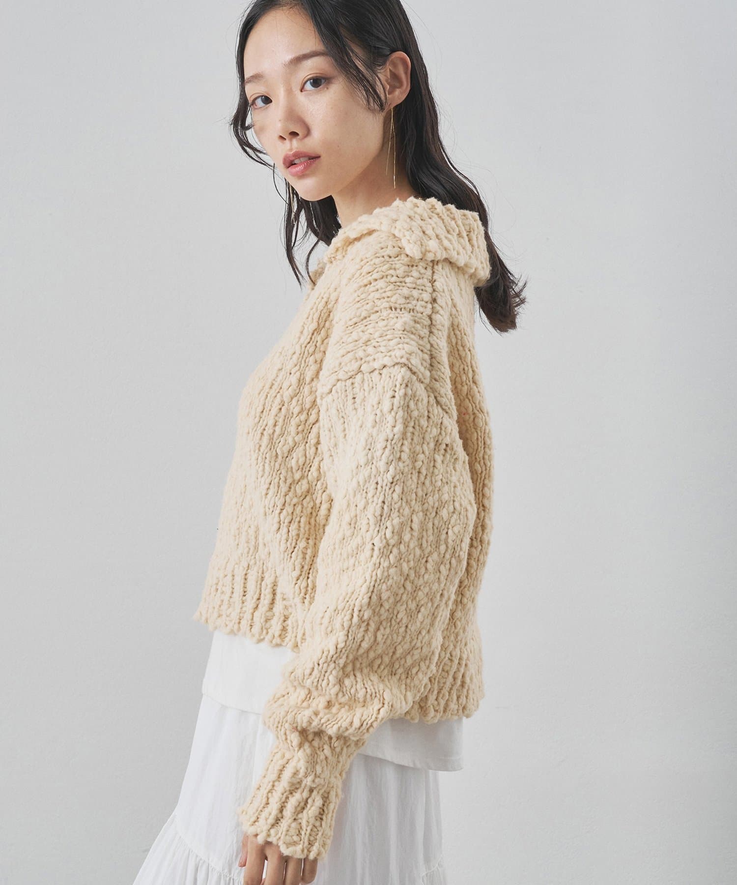 ■ウールロービングのスラブ糸を使用したニットプルオーバー。