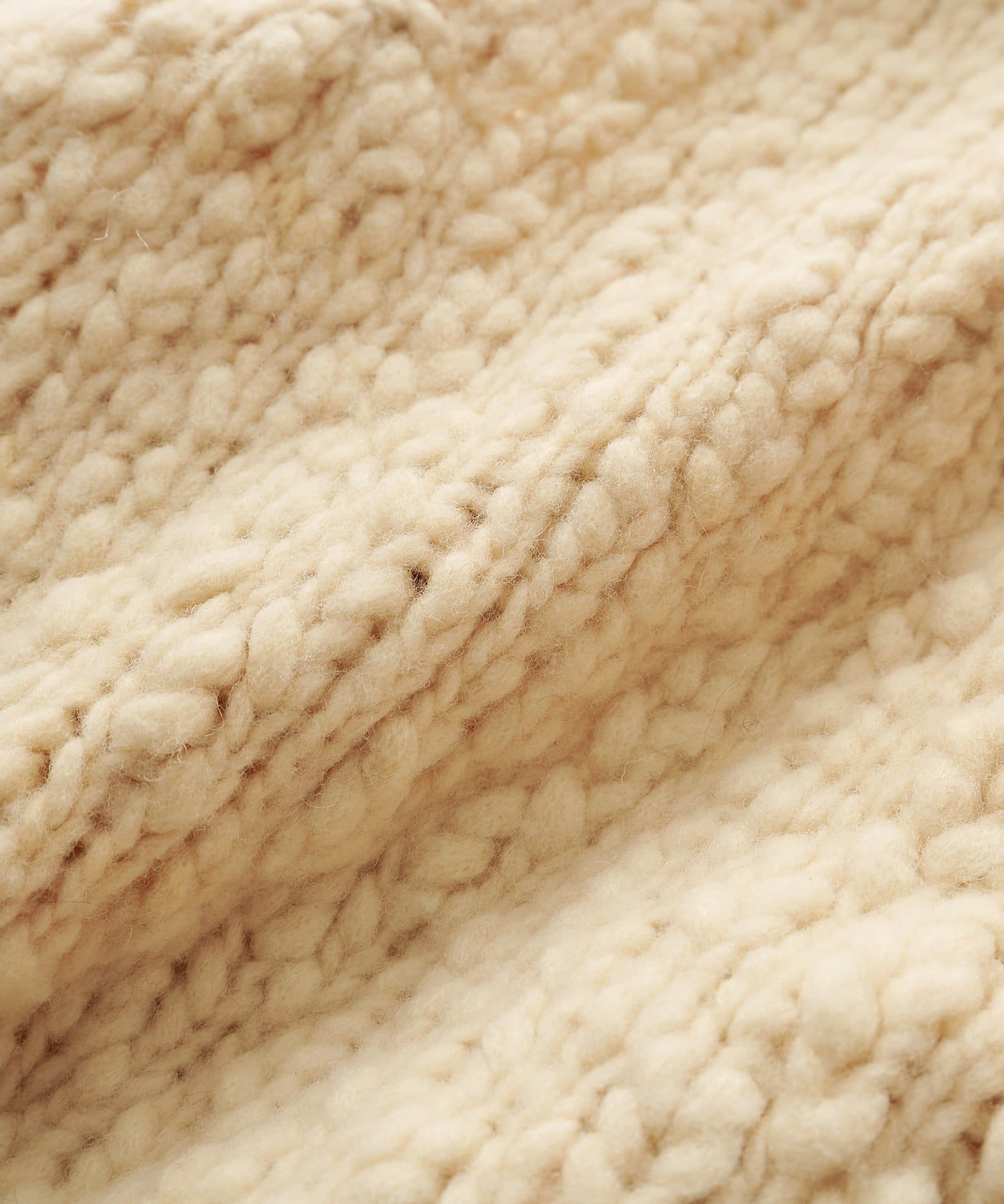 凹凸のある表情が特徴で、とても軽くて暖かみのあるウールロービングのスラブ糸。