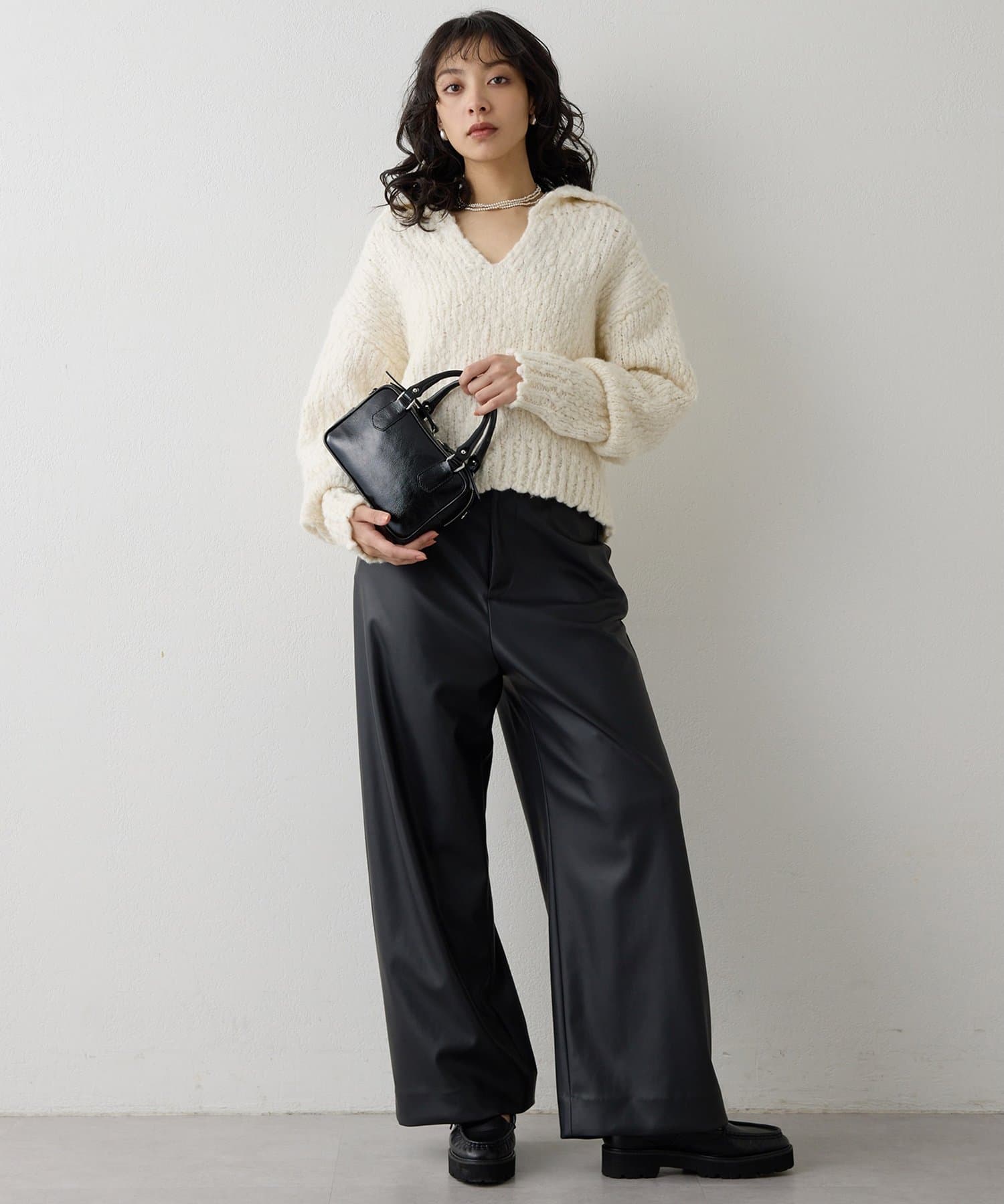 ■スキッパーネックデザインに幅広の襟がアクセントをプラスし、顔周りをすっきりと演出。
