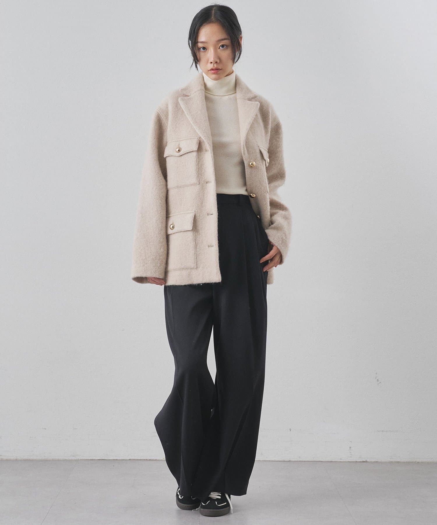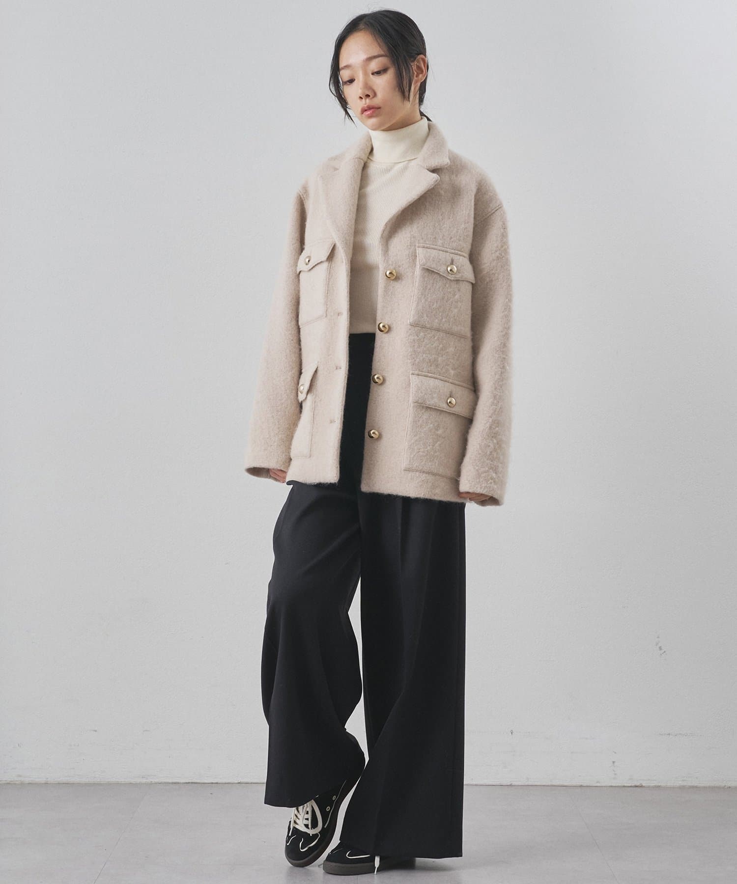 ■シャギーの表情感が鮮度のあるスタイリングに仕上げてくれる一着。