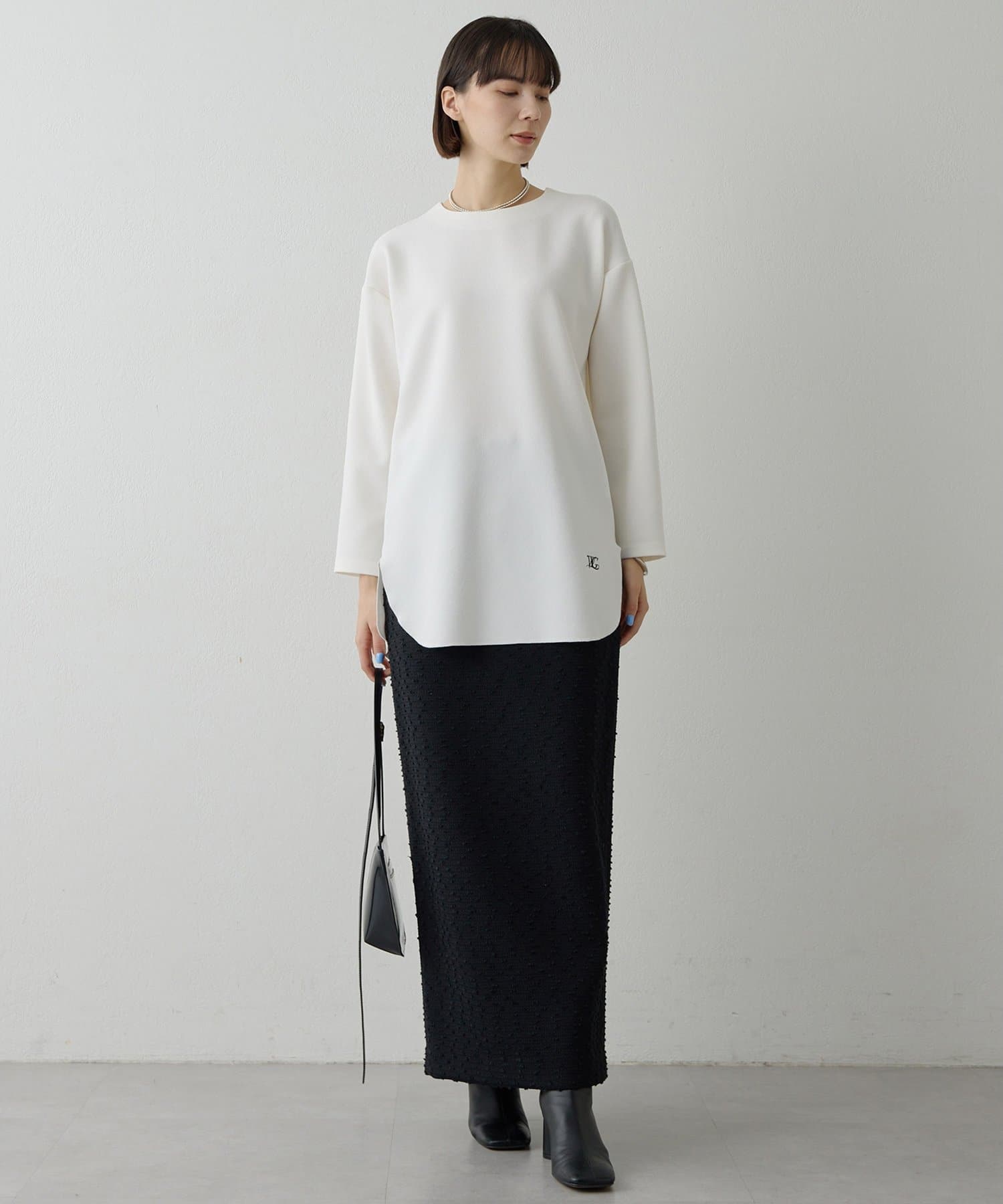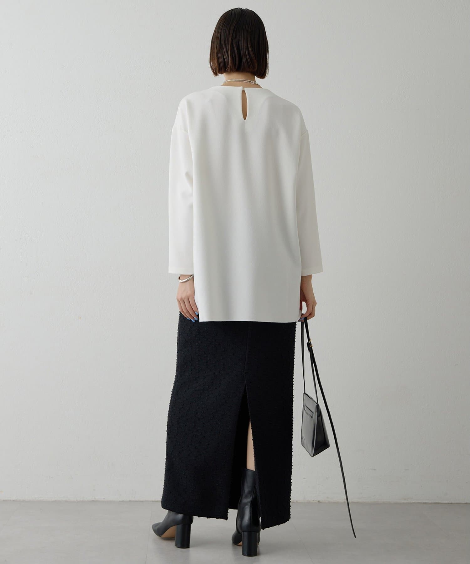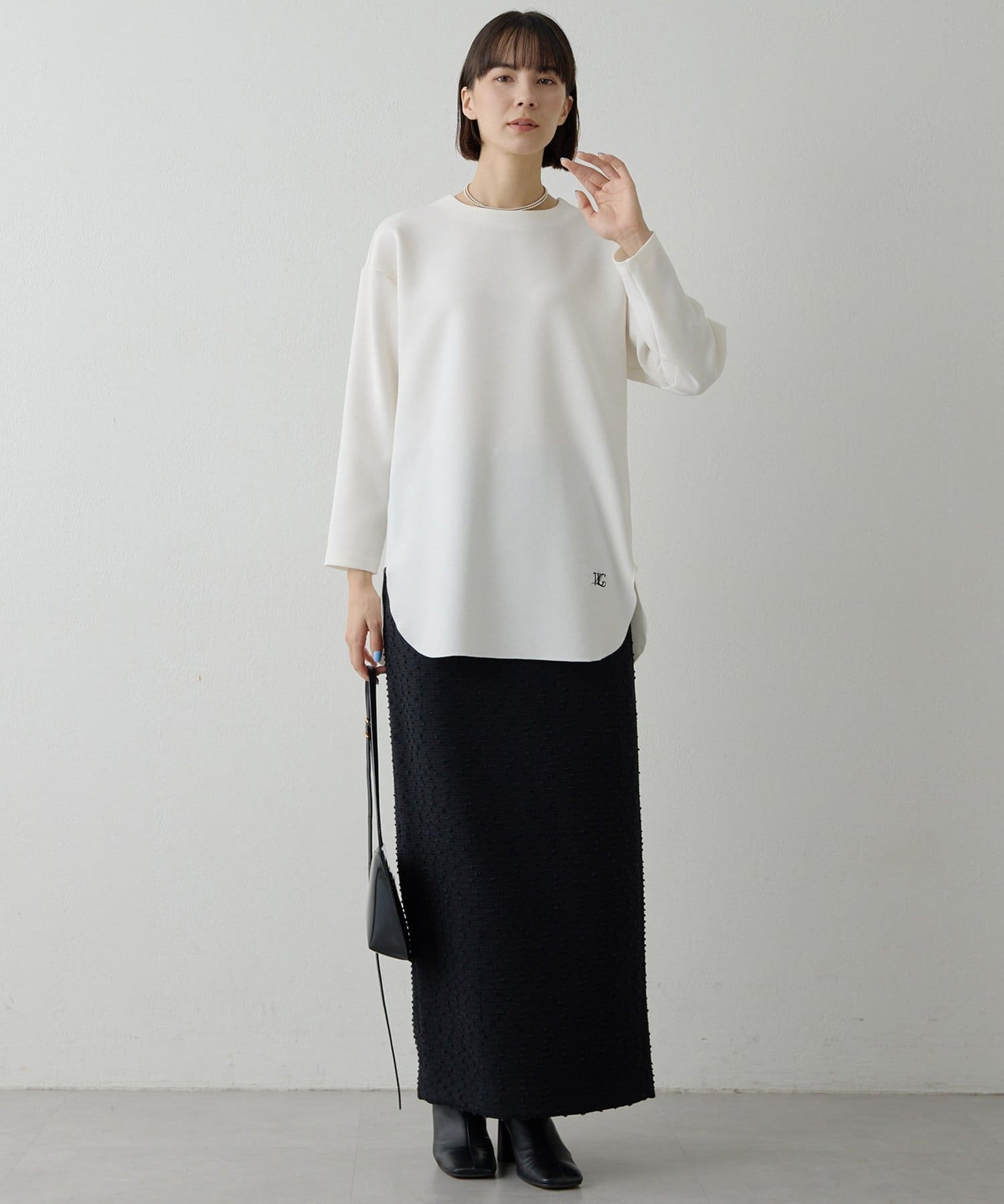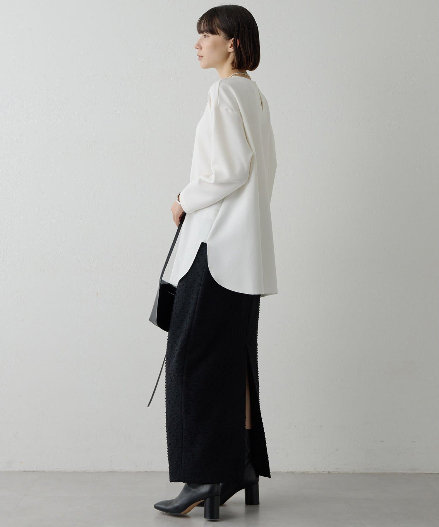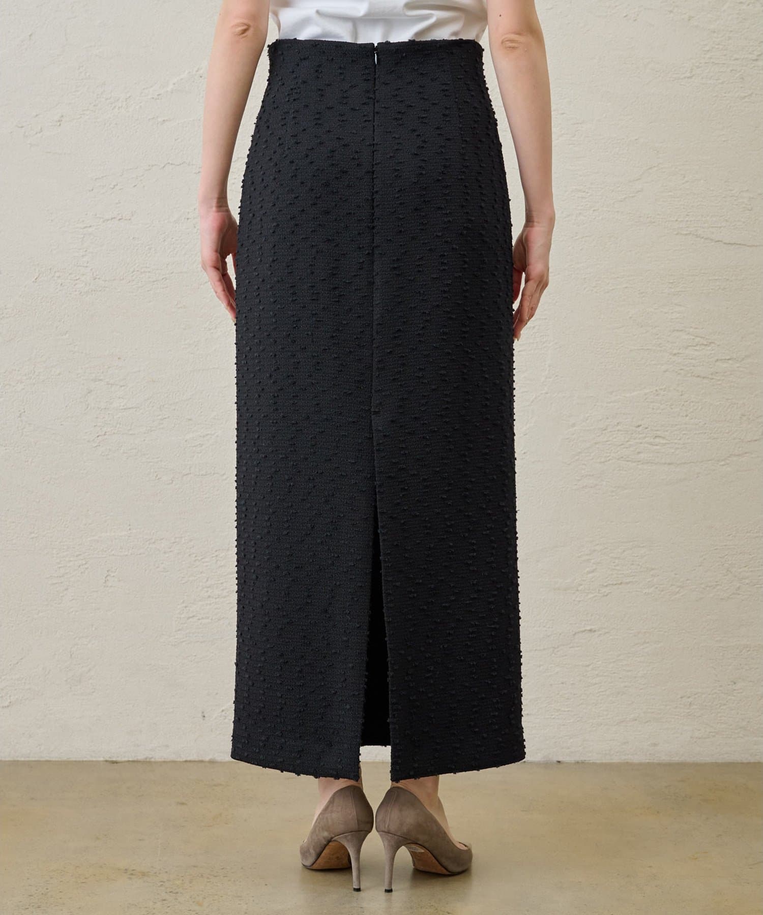 ■コットンベースのネップツイードで仕立てたアイラインスカート。