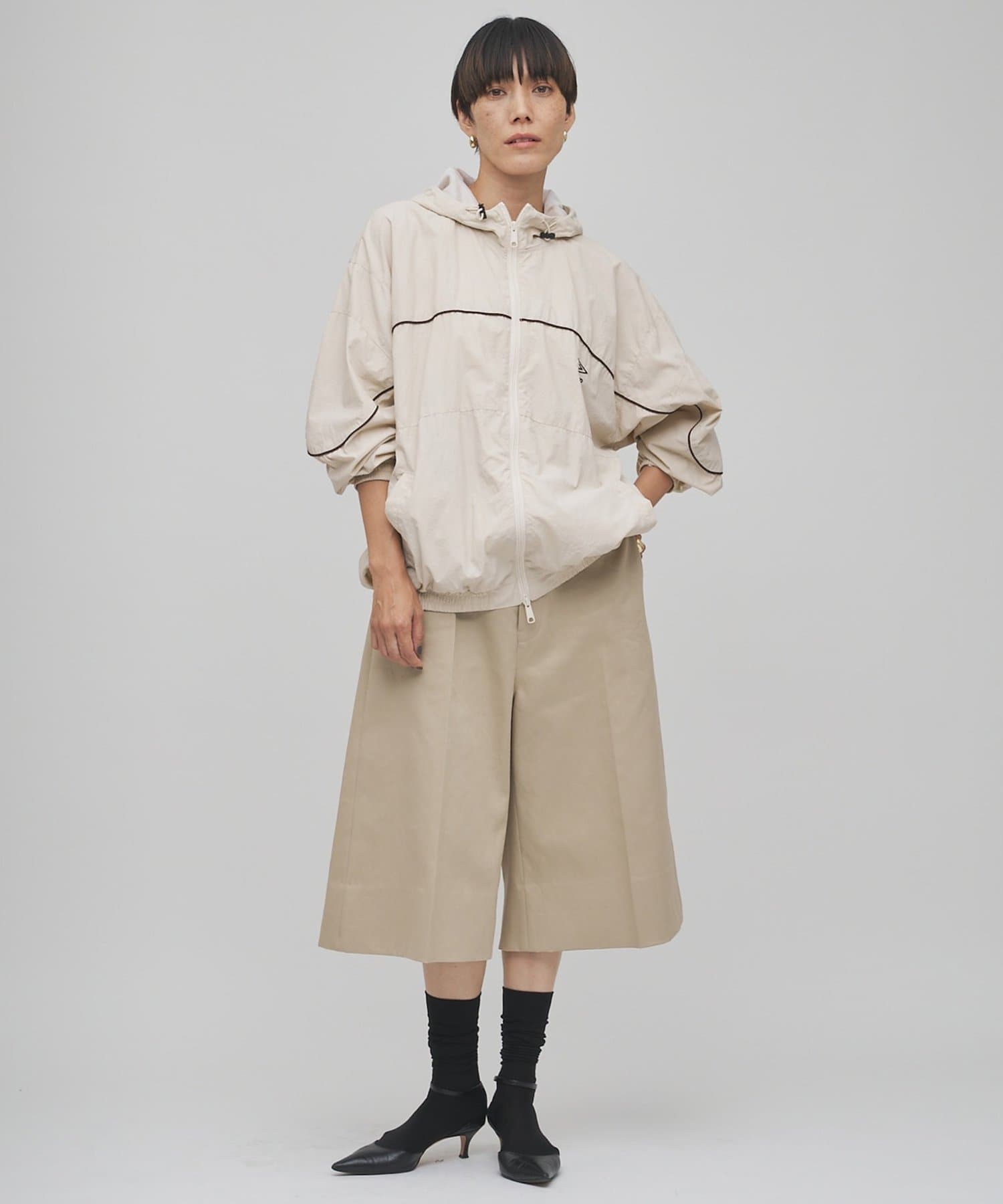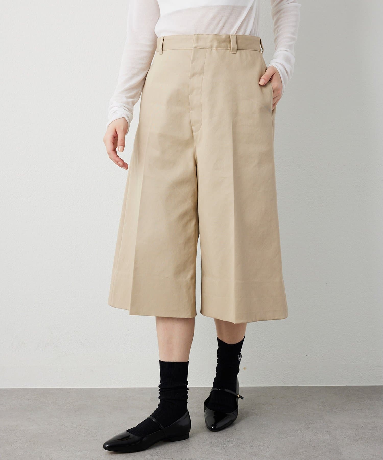 ■程よいハリと落ち感のあるツイル素材で仕立てたハーフパンツ。