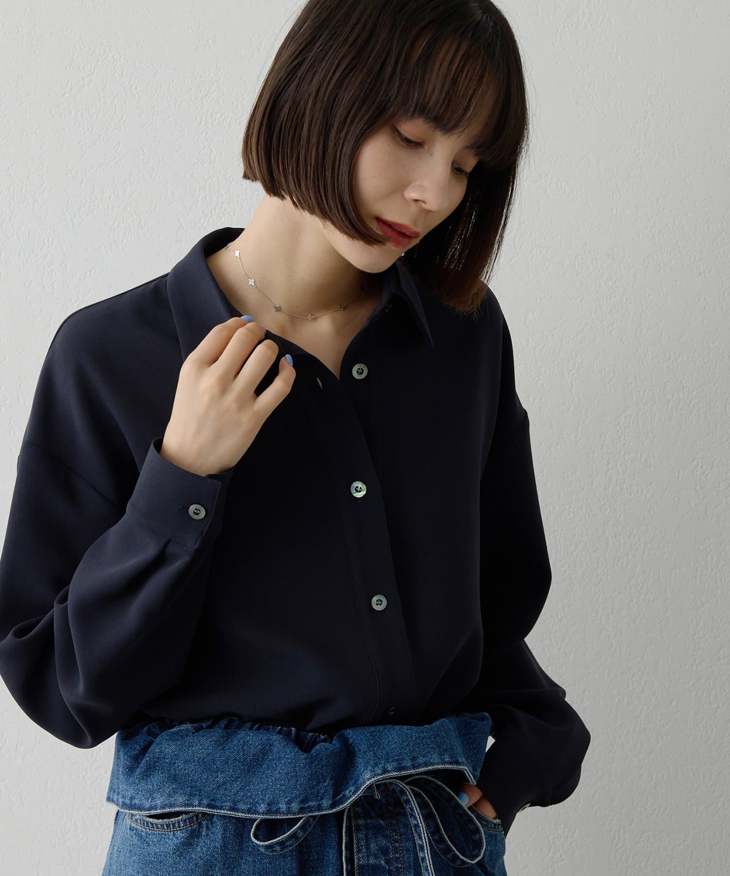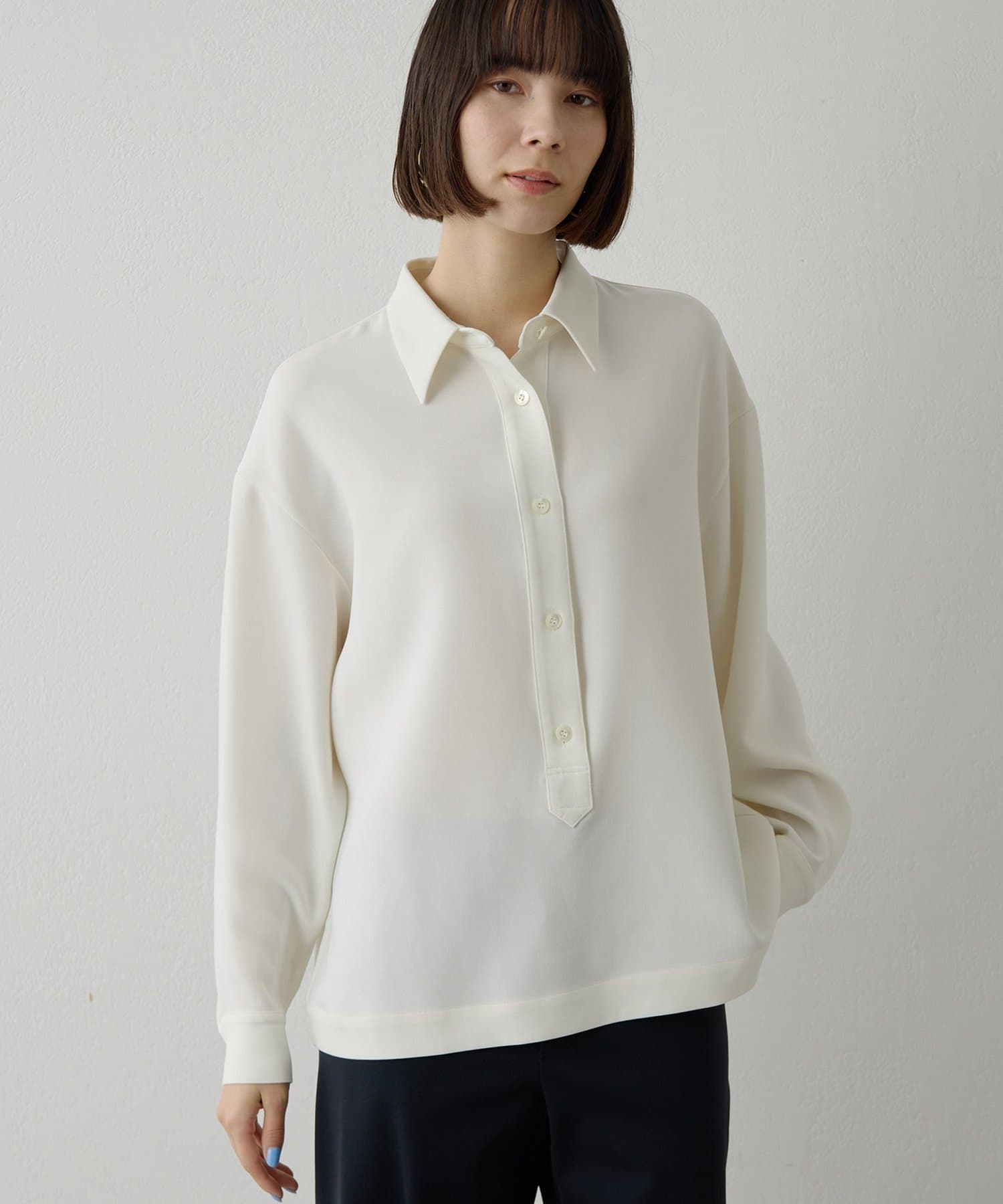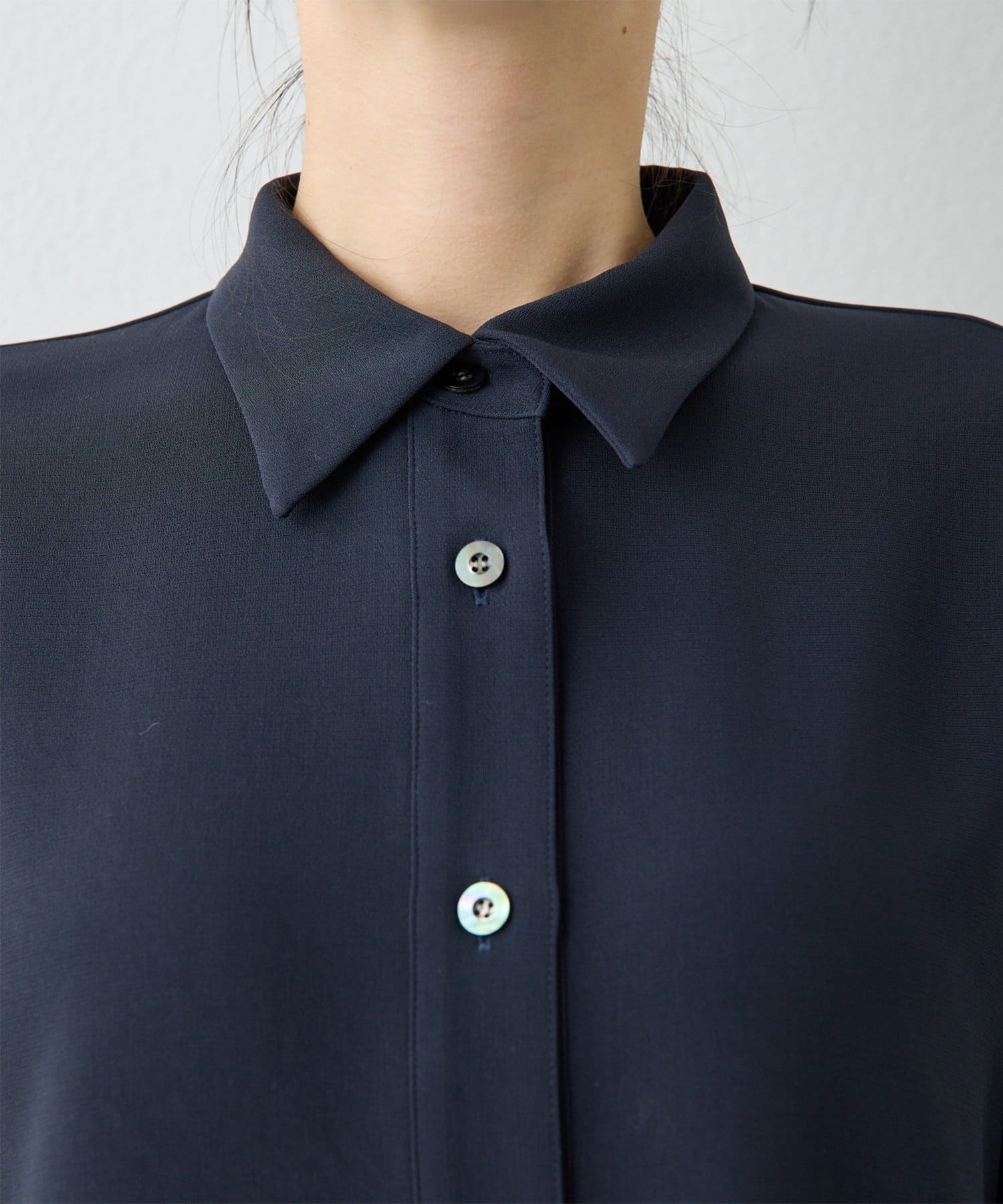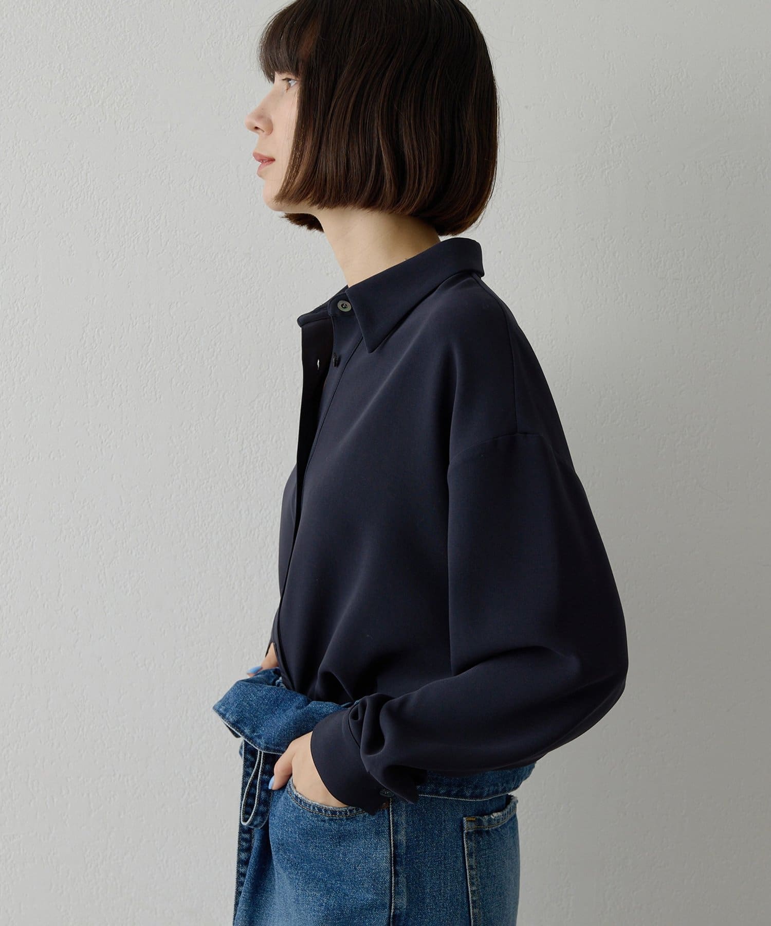 ■上品な落ち感と程よいハリを持つダブルクロス素材で仕立てたスキッパーシャツ。