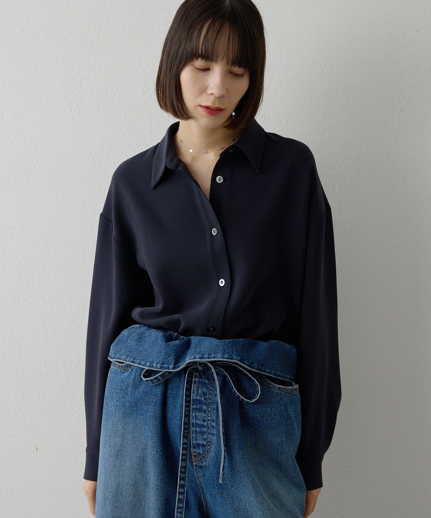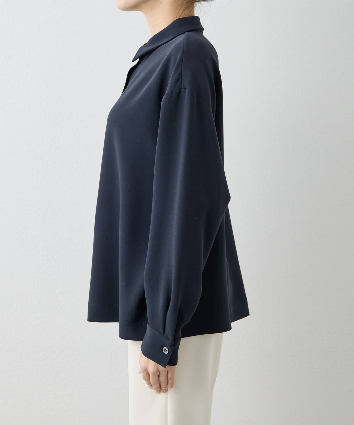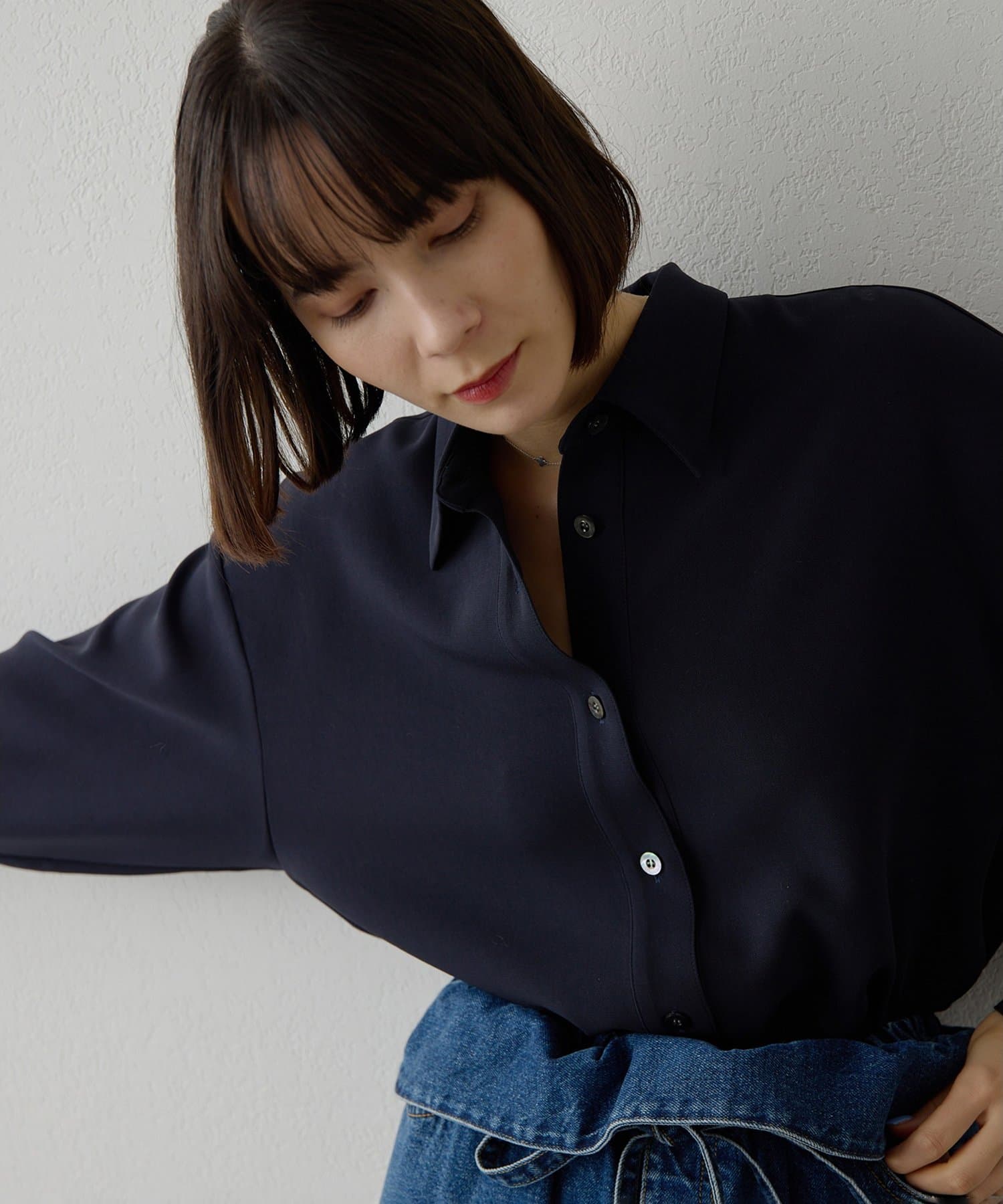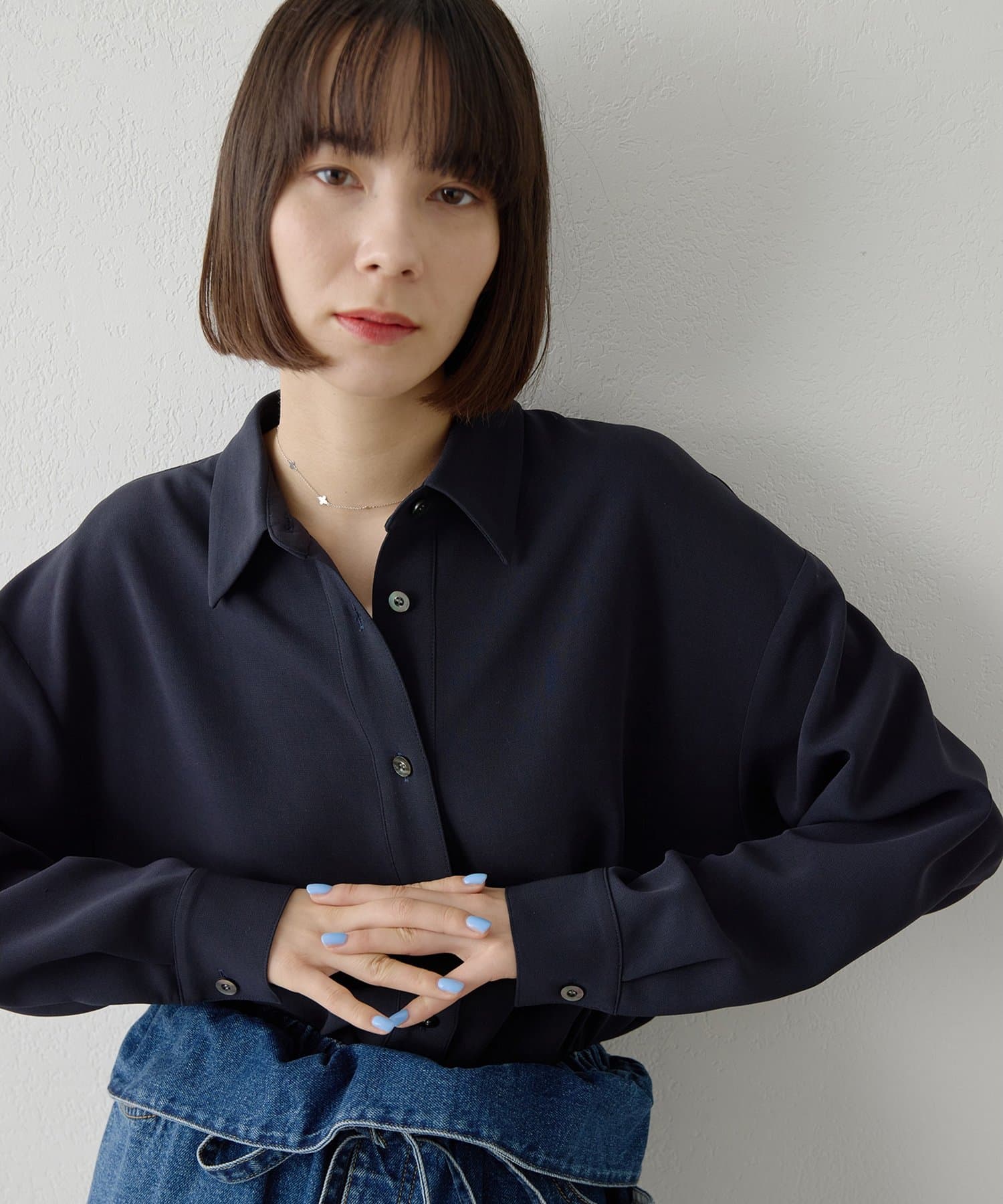 ■上品な落ち感と程よいハリを持つダブルクロス素材で仕立てたスキッパーシャツ。