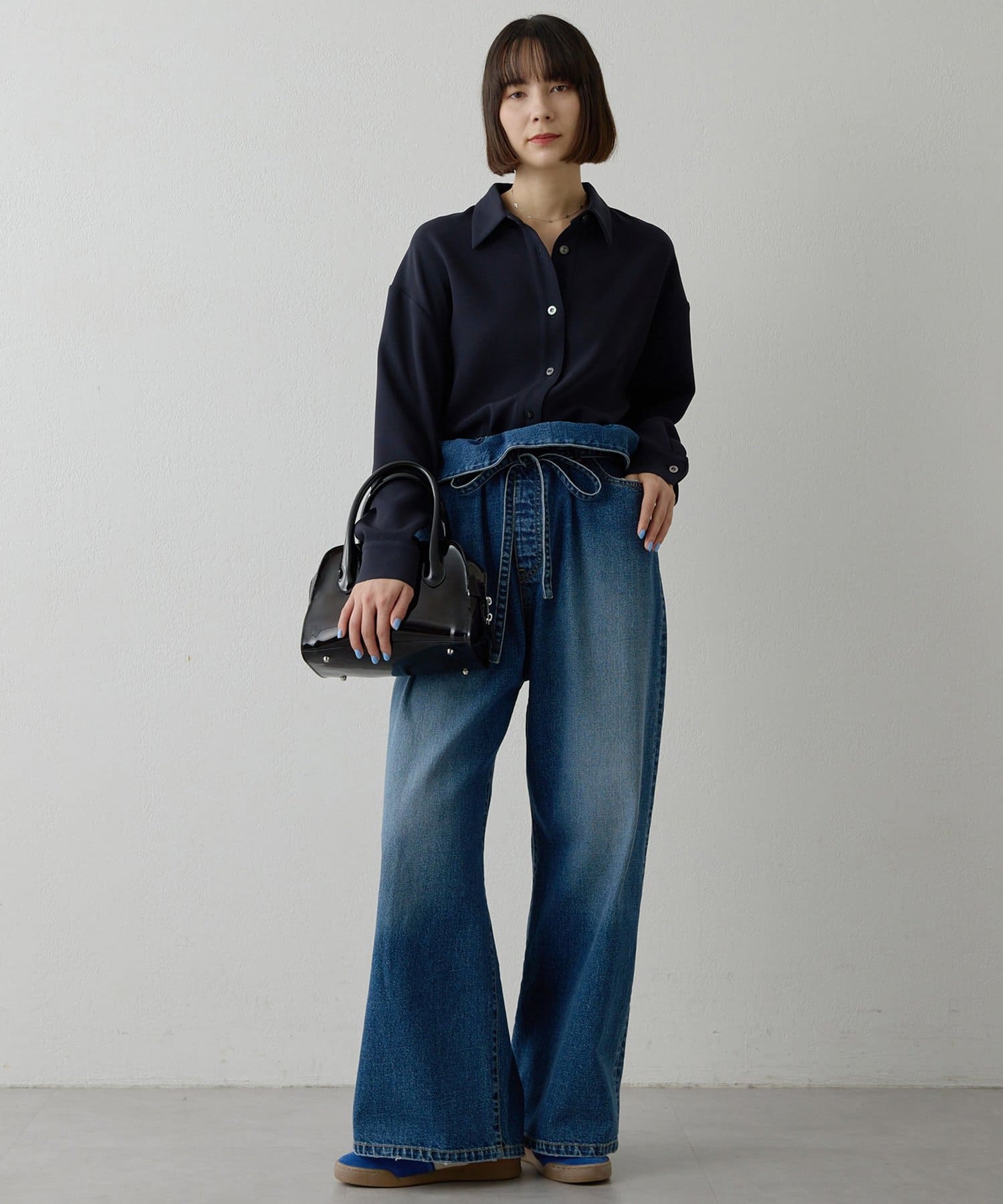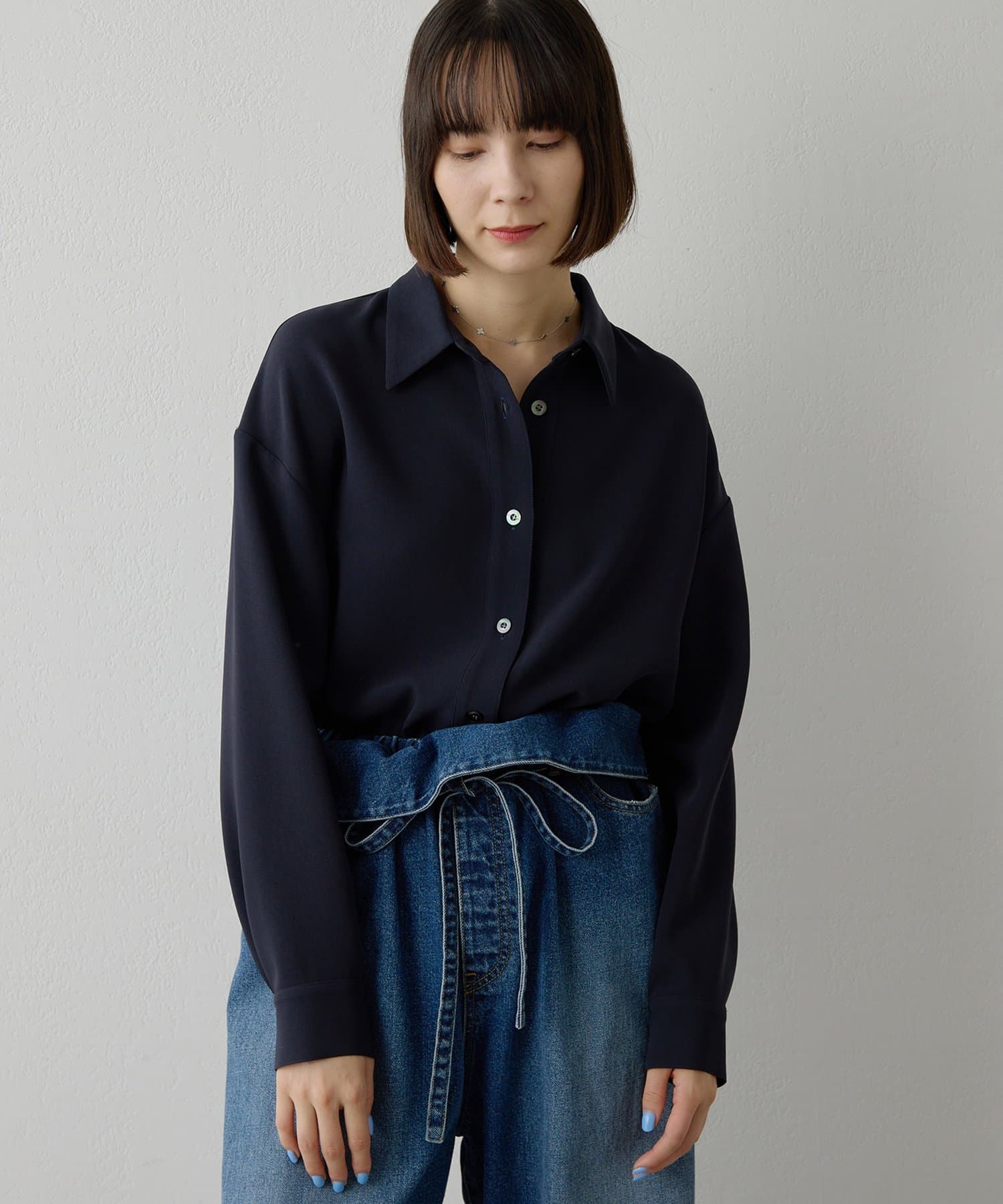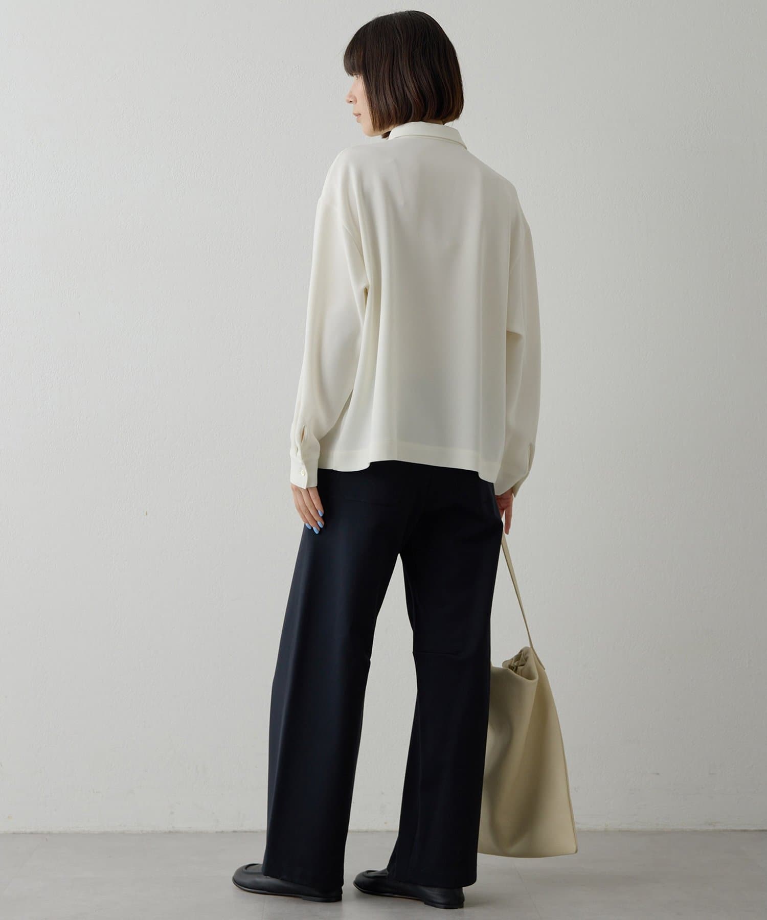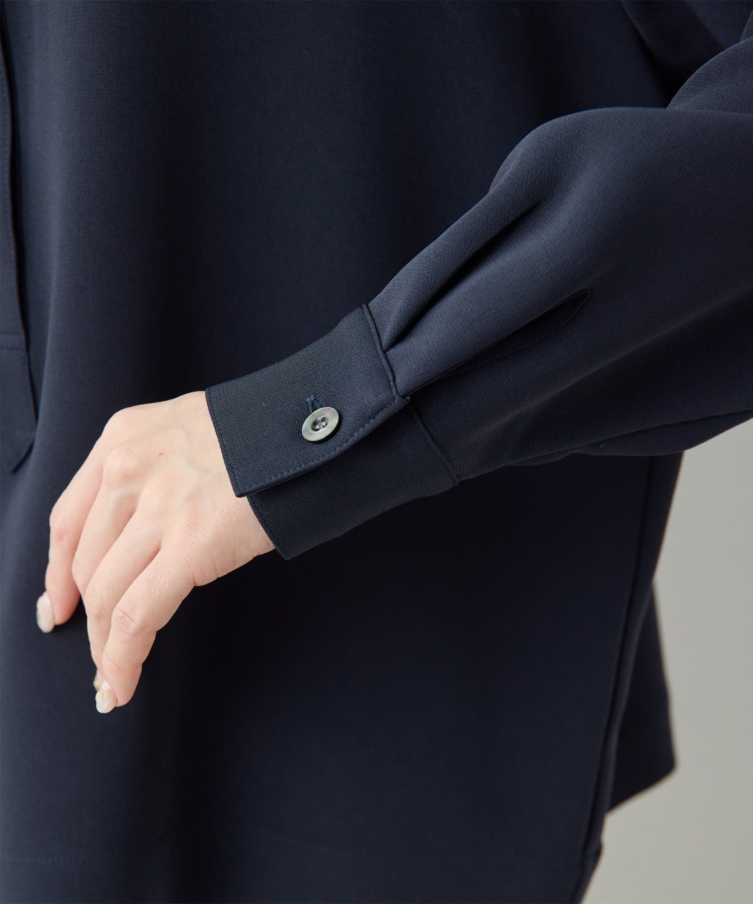 ■上品な落ち感と程よいハリを持つダブルクロス素材で仕立てたスキッパーシャツ。