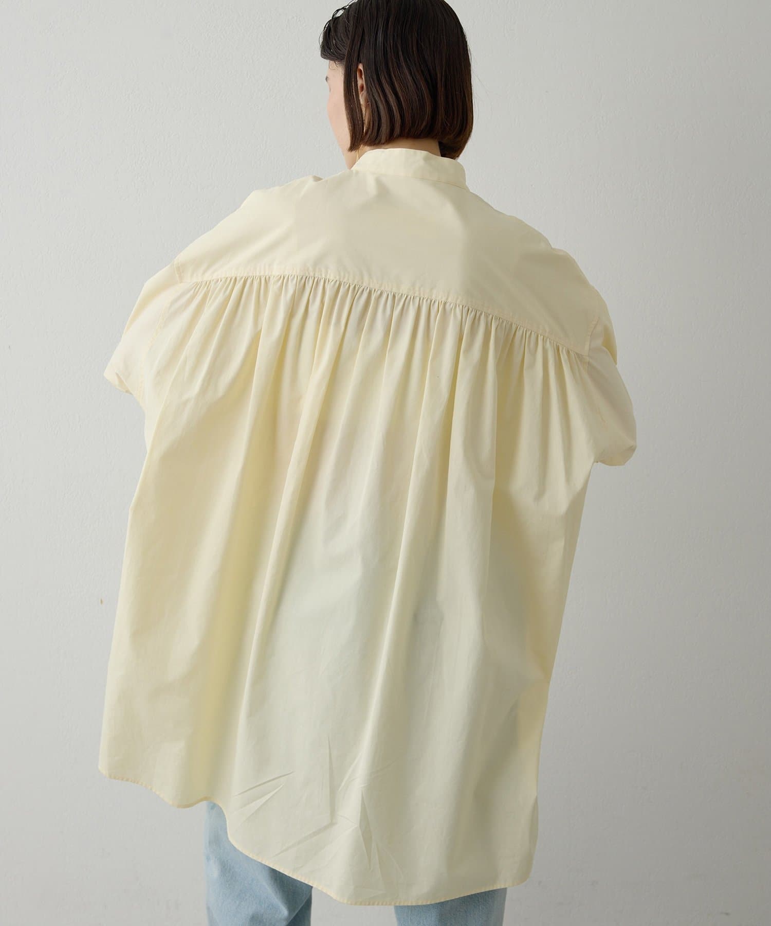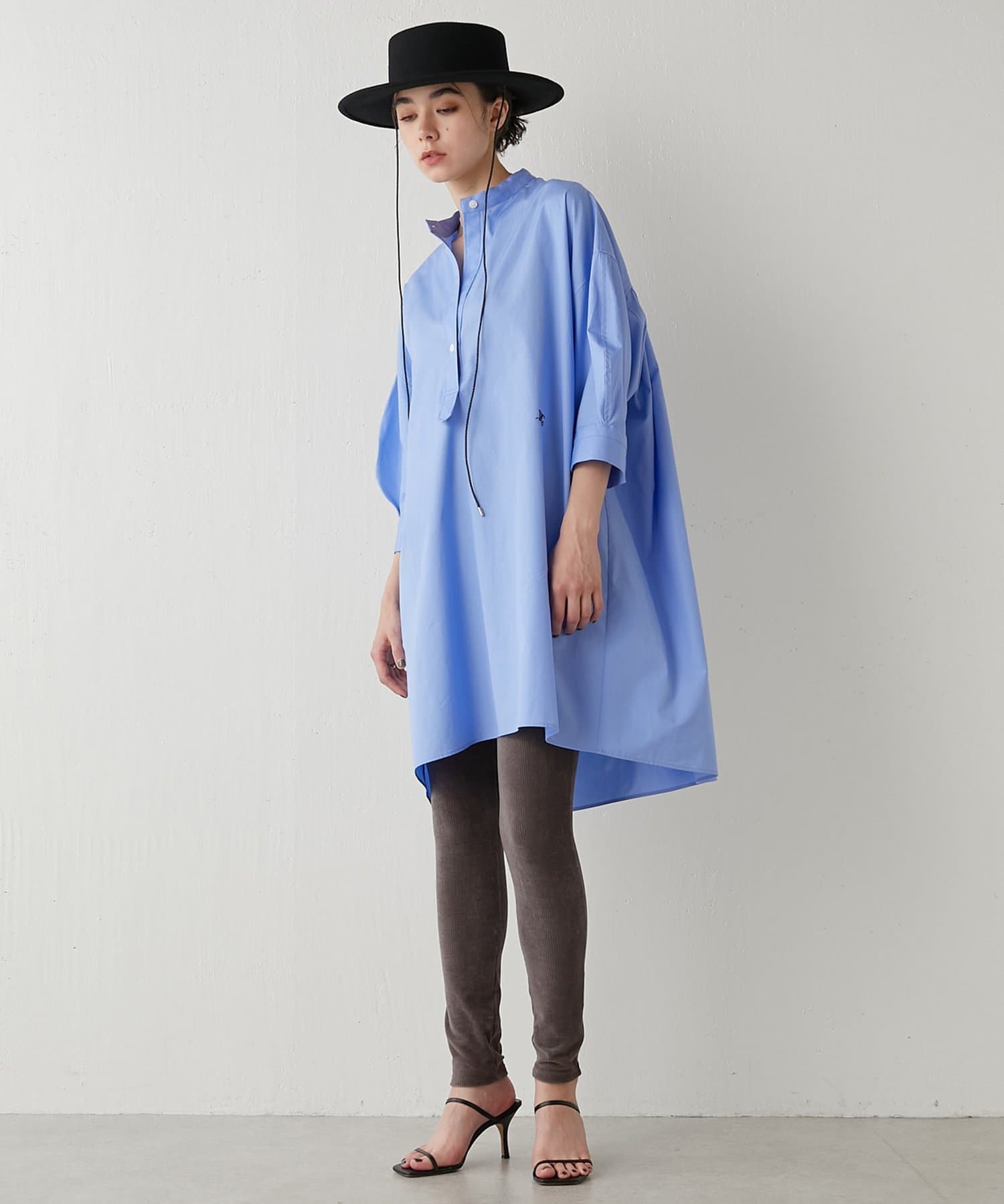 ■オーバーシルエットながら、ハリ感のある生地を使用しスタンドカラーですっきりとした印象に。
