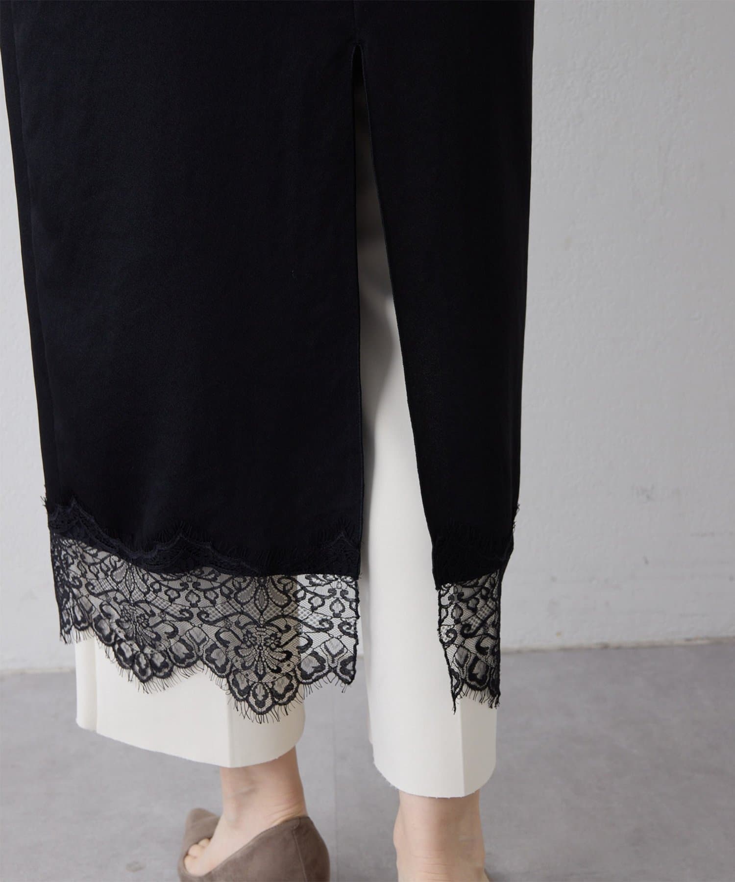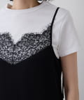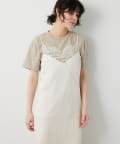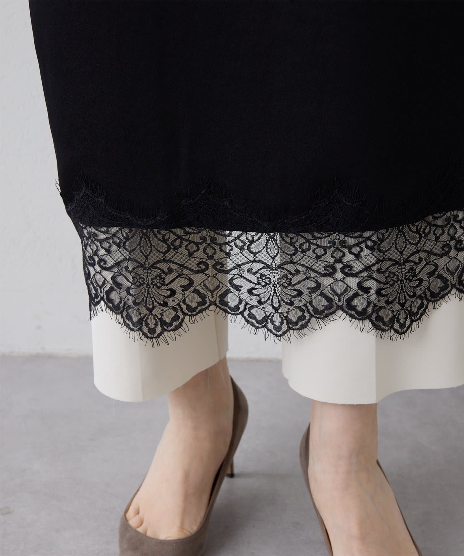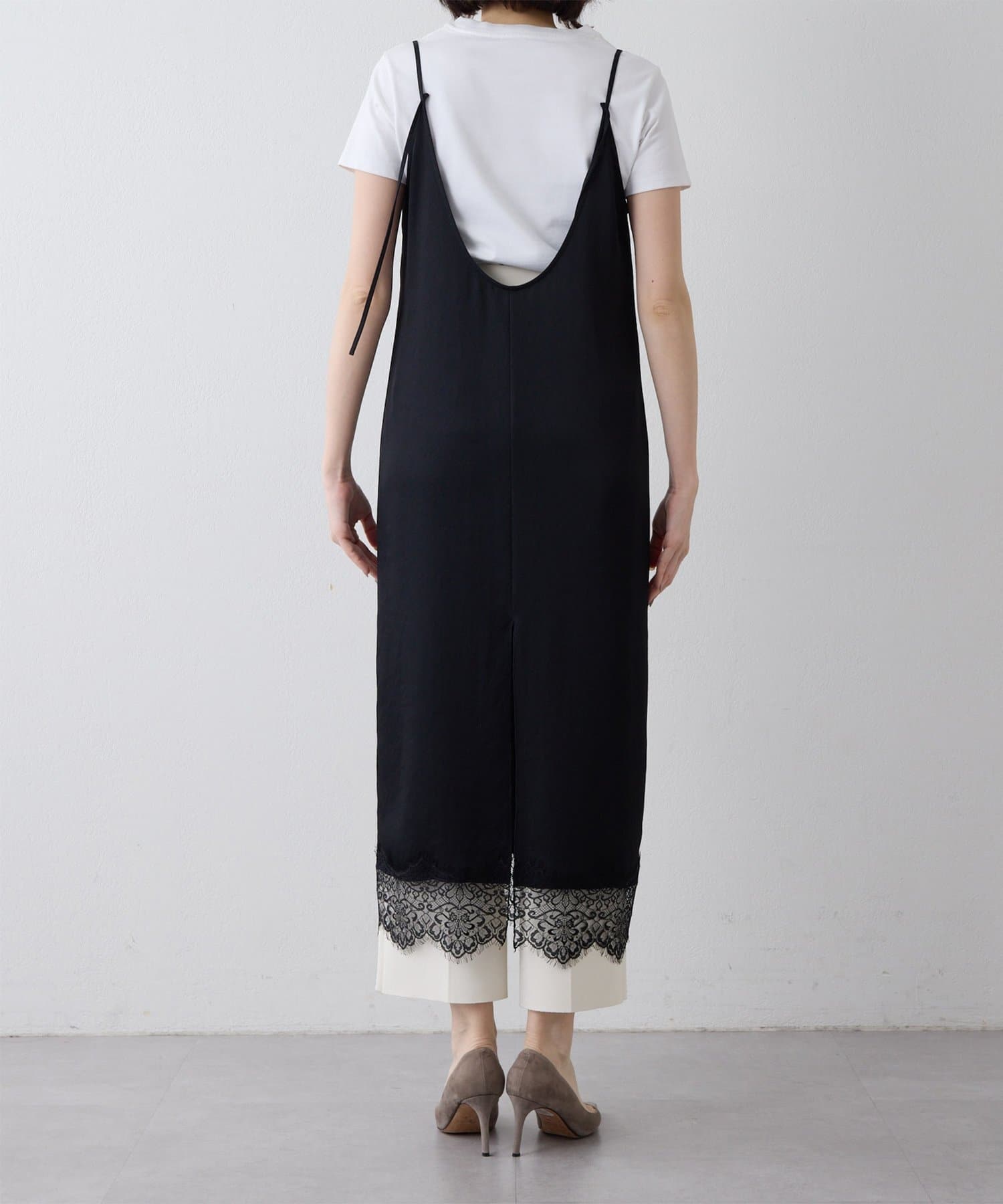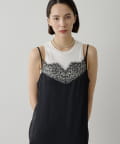 ■胸元と裾にあしらったレースがポイントのキャミワンピース。