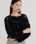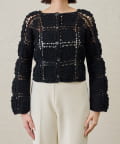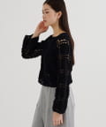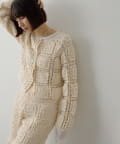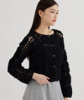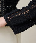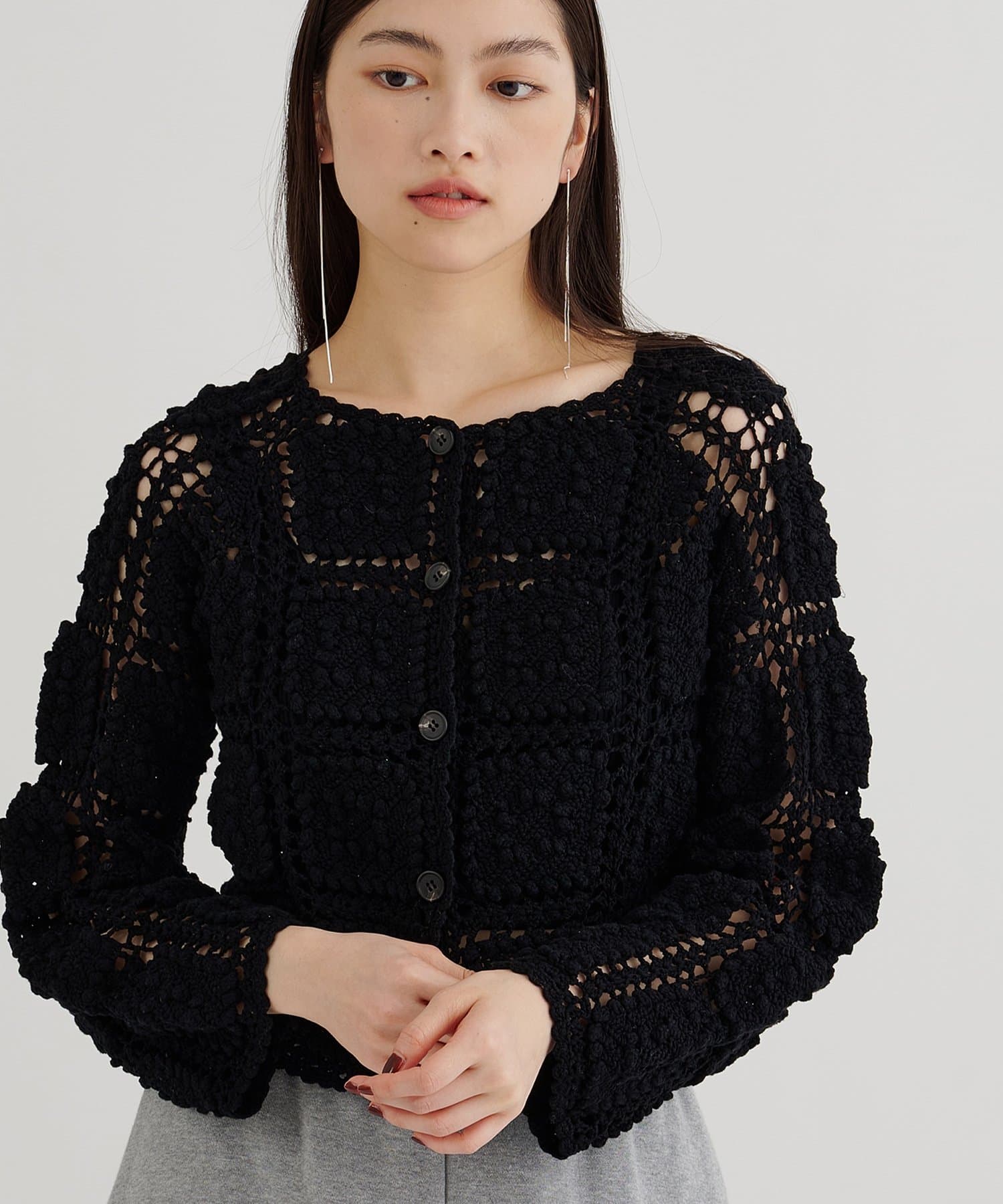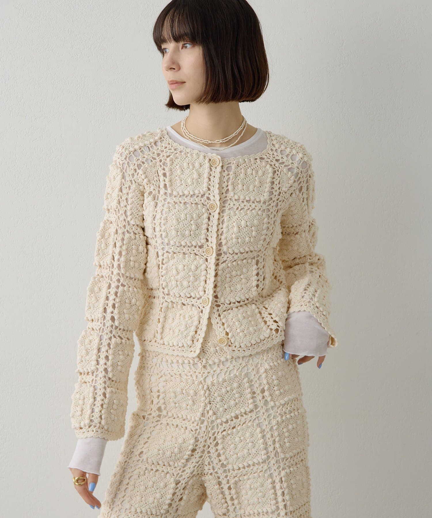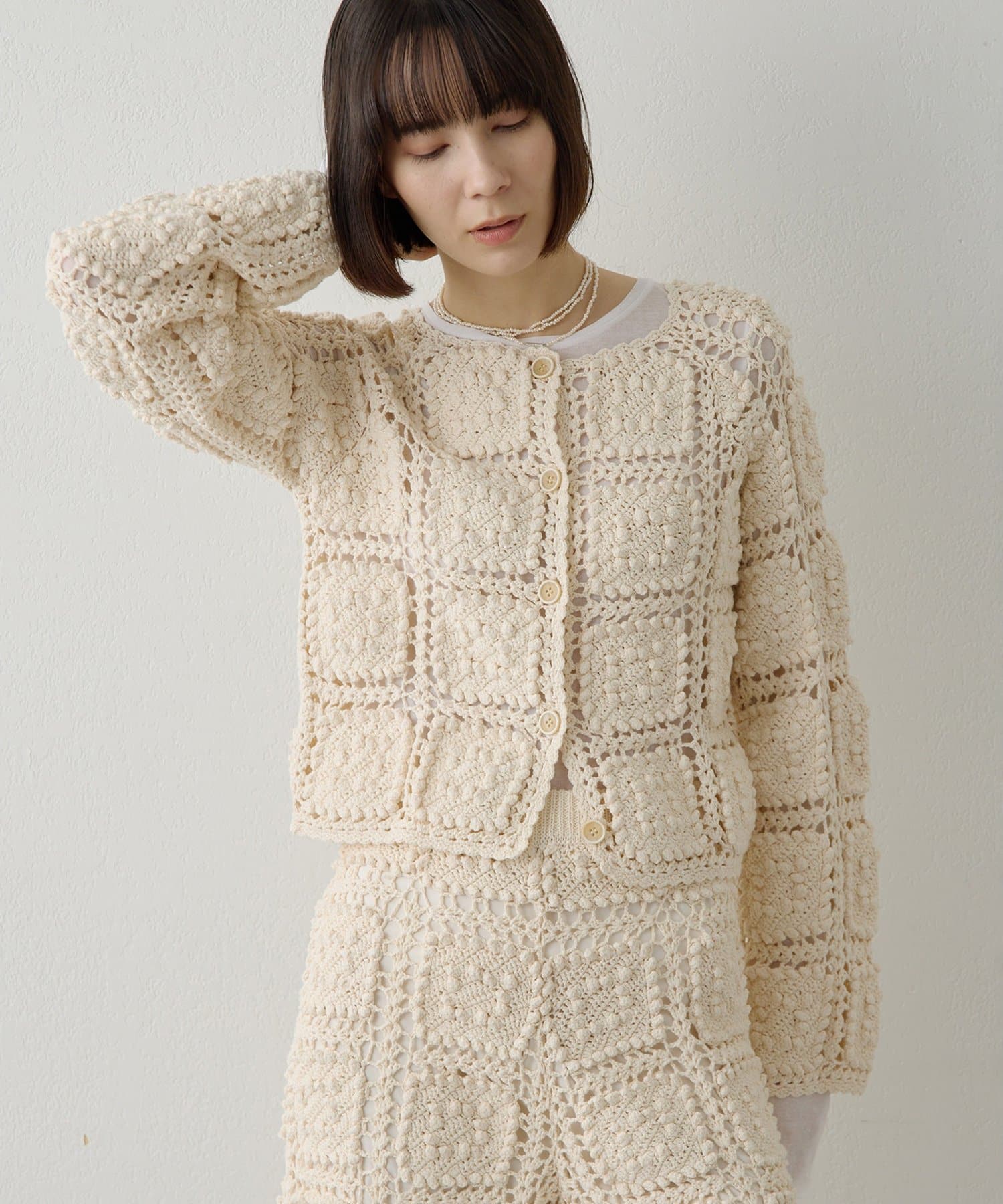 ■丁寧に編み上げたハンドクロシェの表情が魅力のカーディガン。