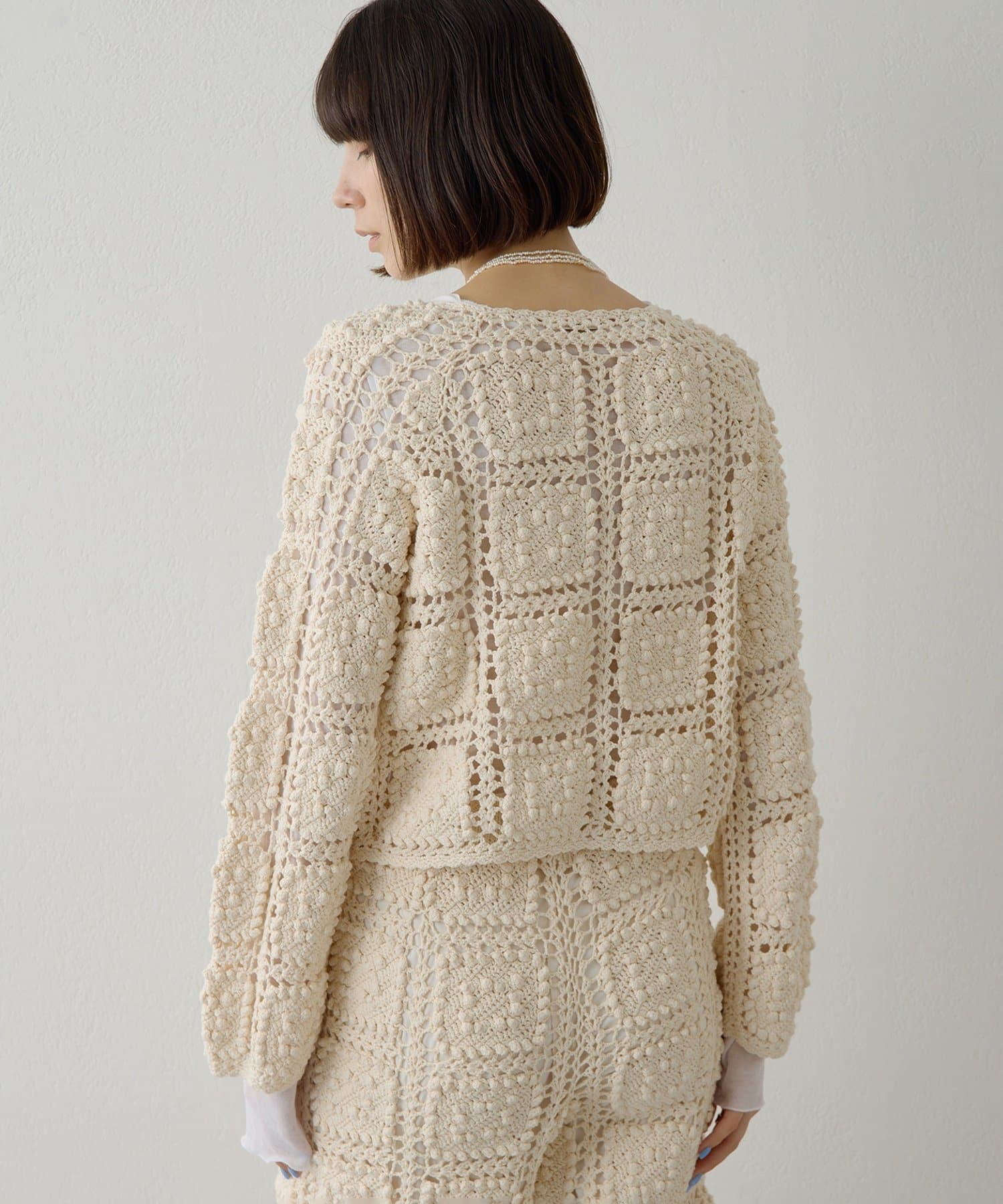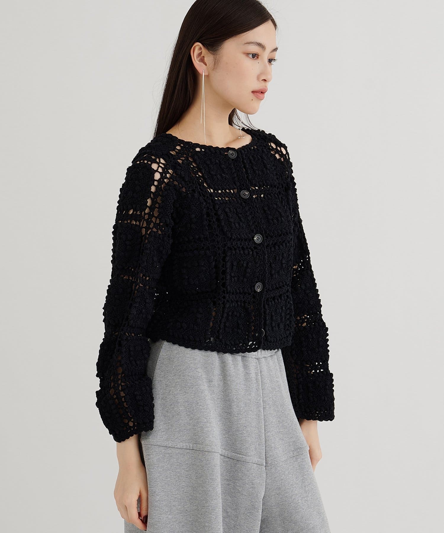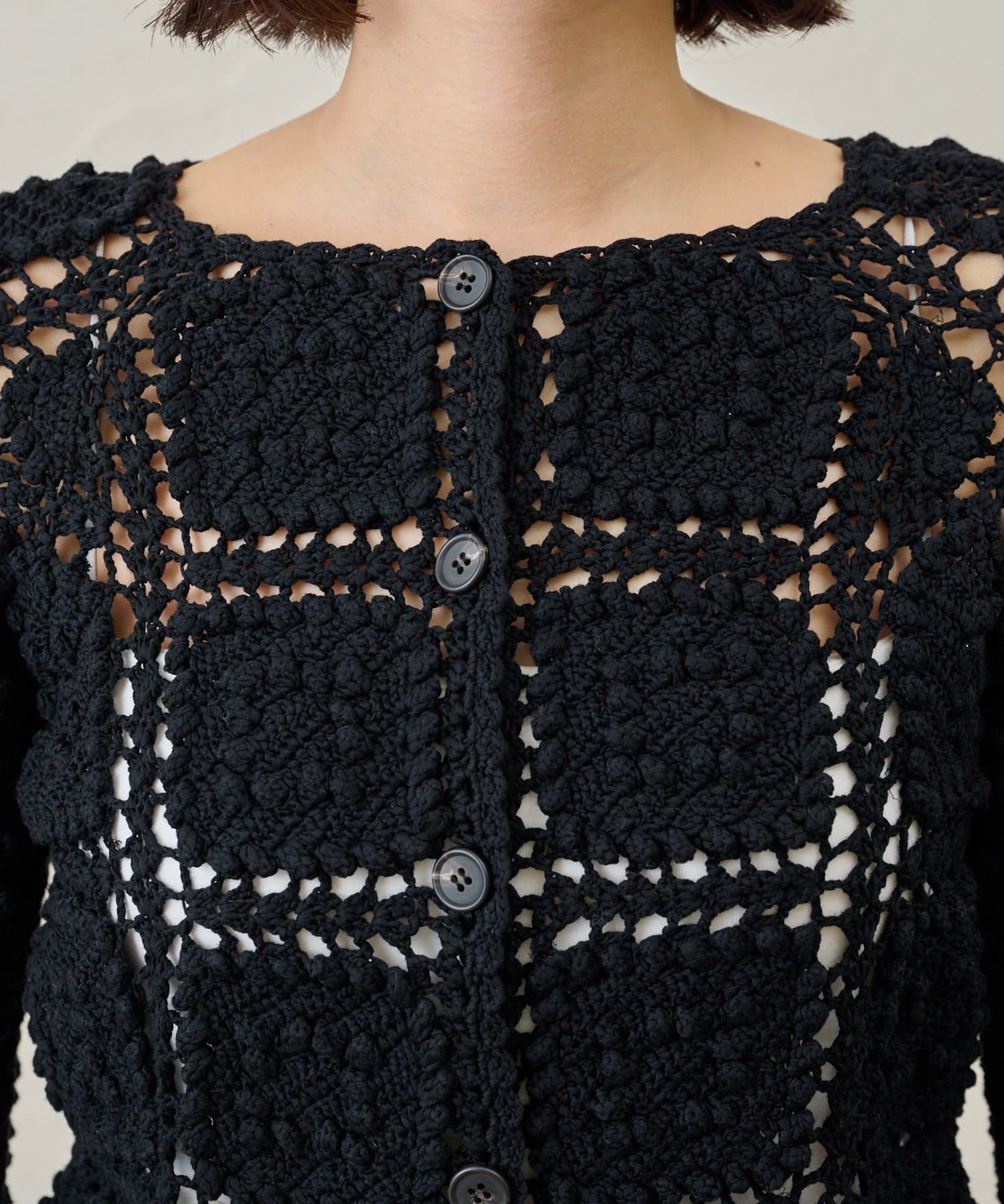 繊細なハンドクロシェで仕立てた、クラフト感あふれるカーディガン