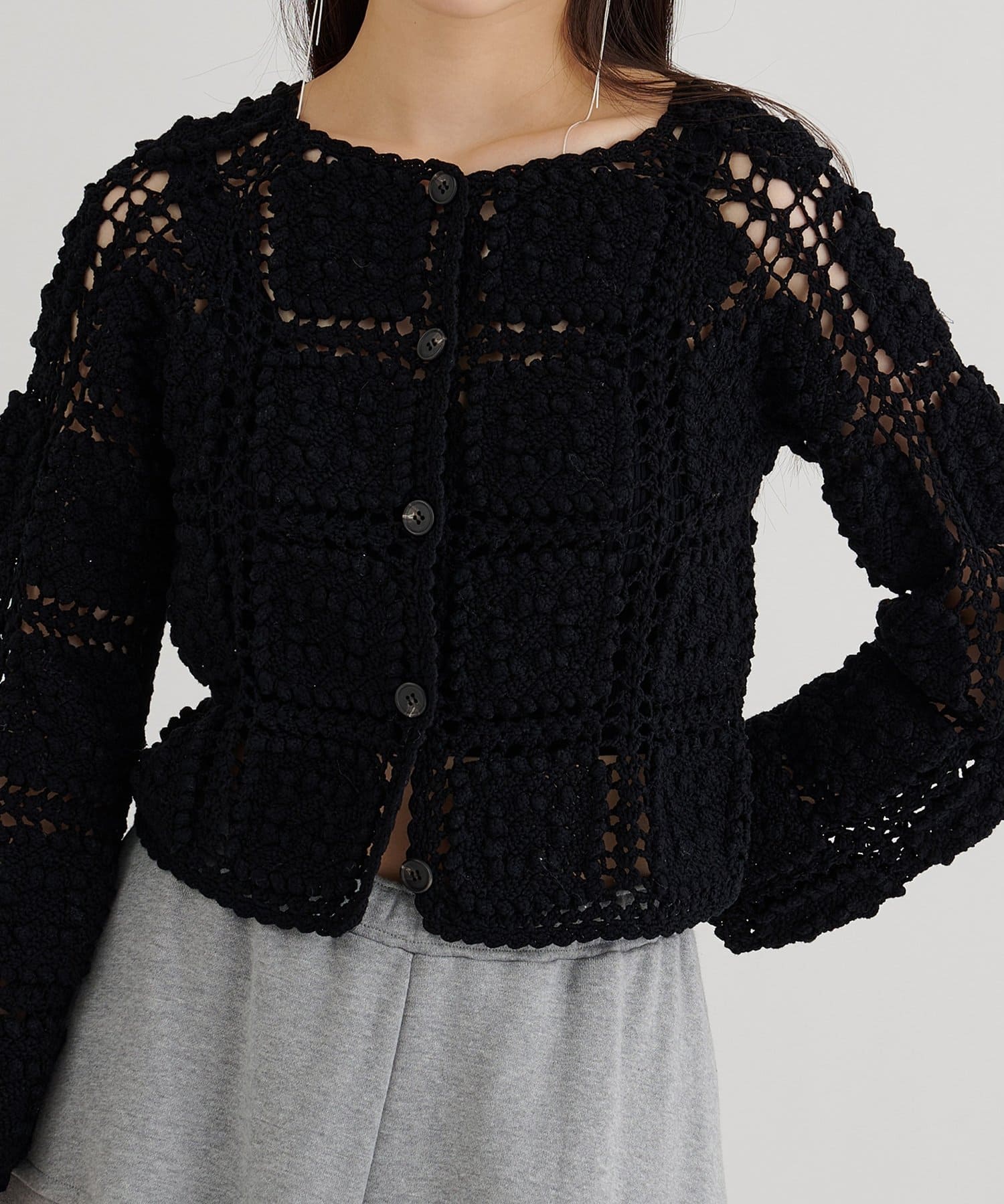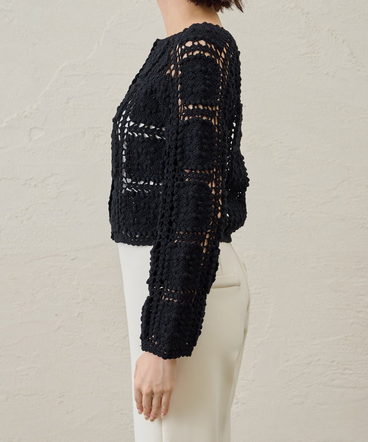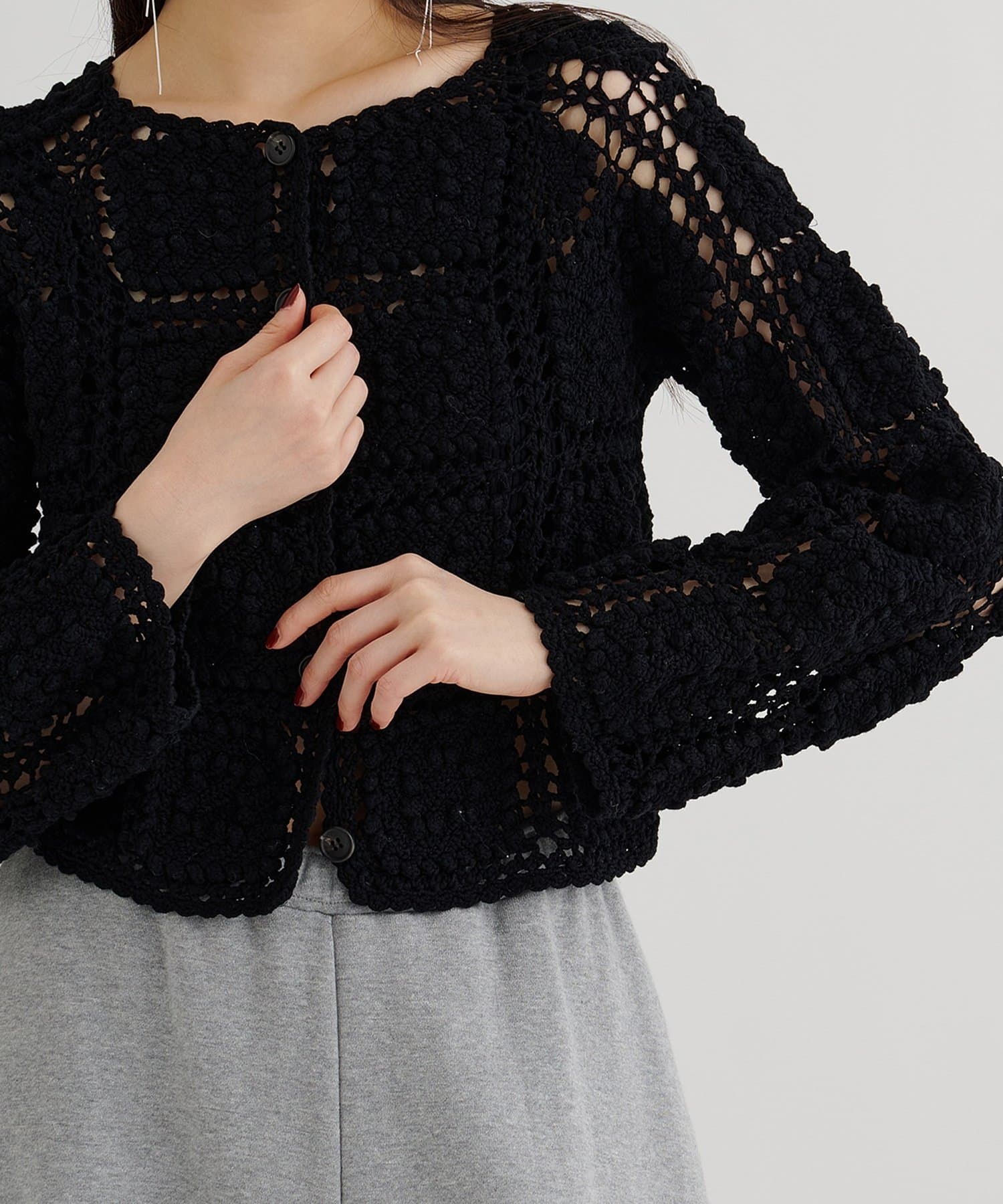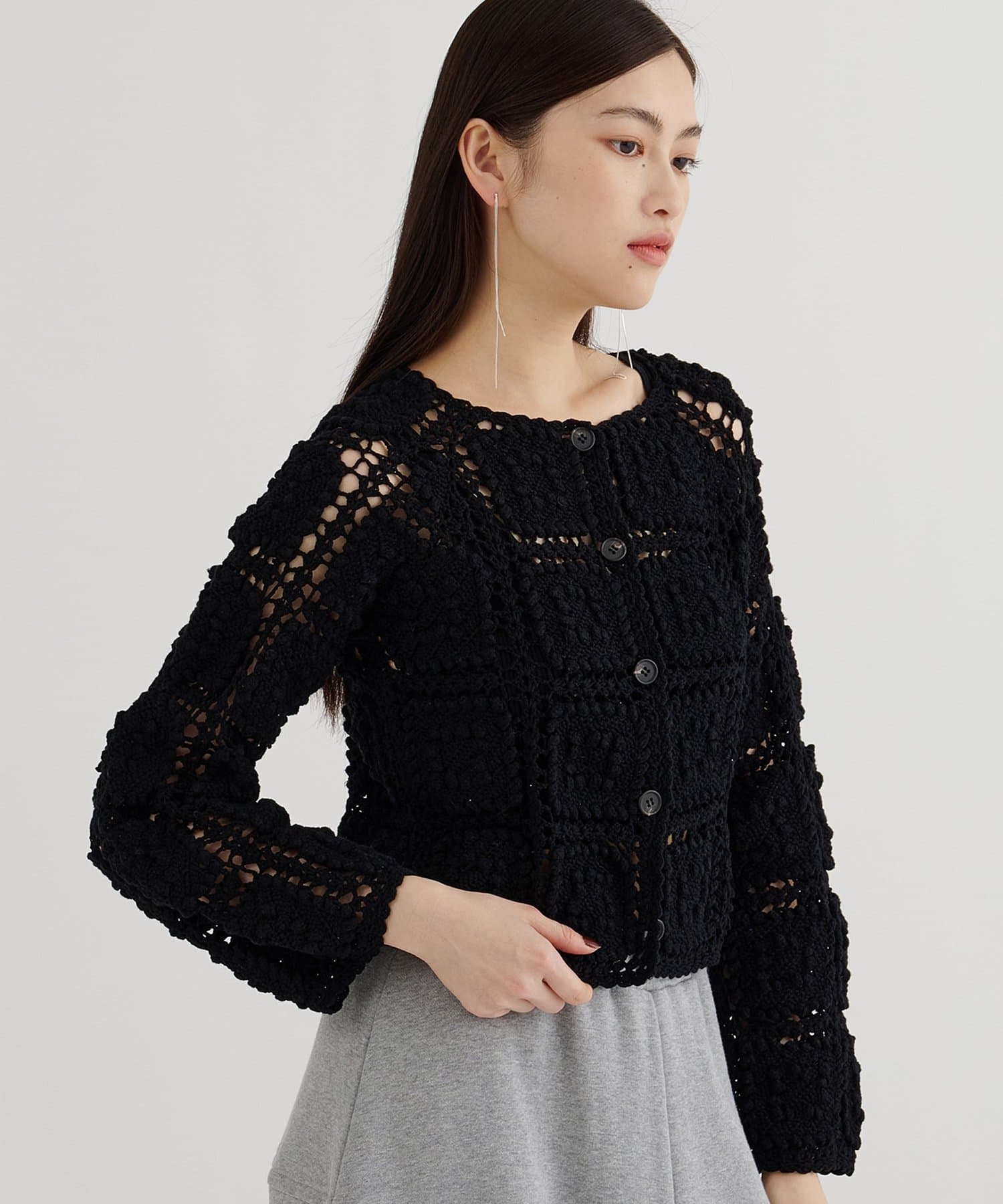 繊細なハンドクロシェで仕立てた、クラフト感あふれるカーディガン