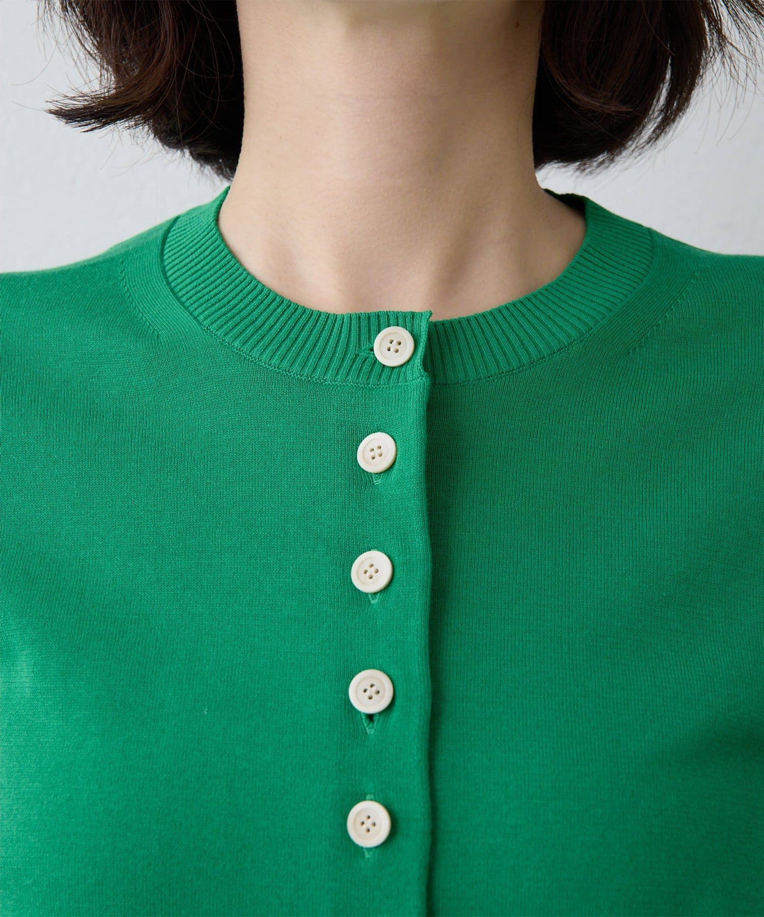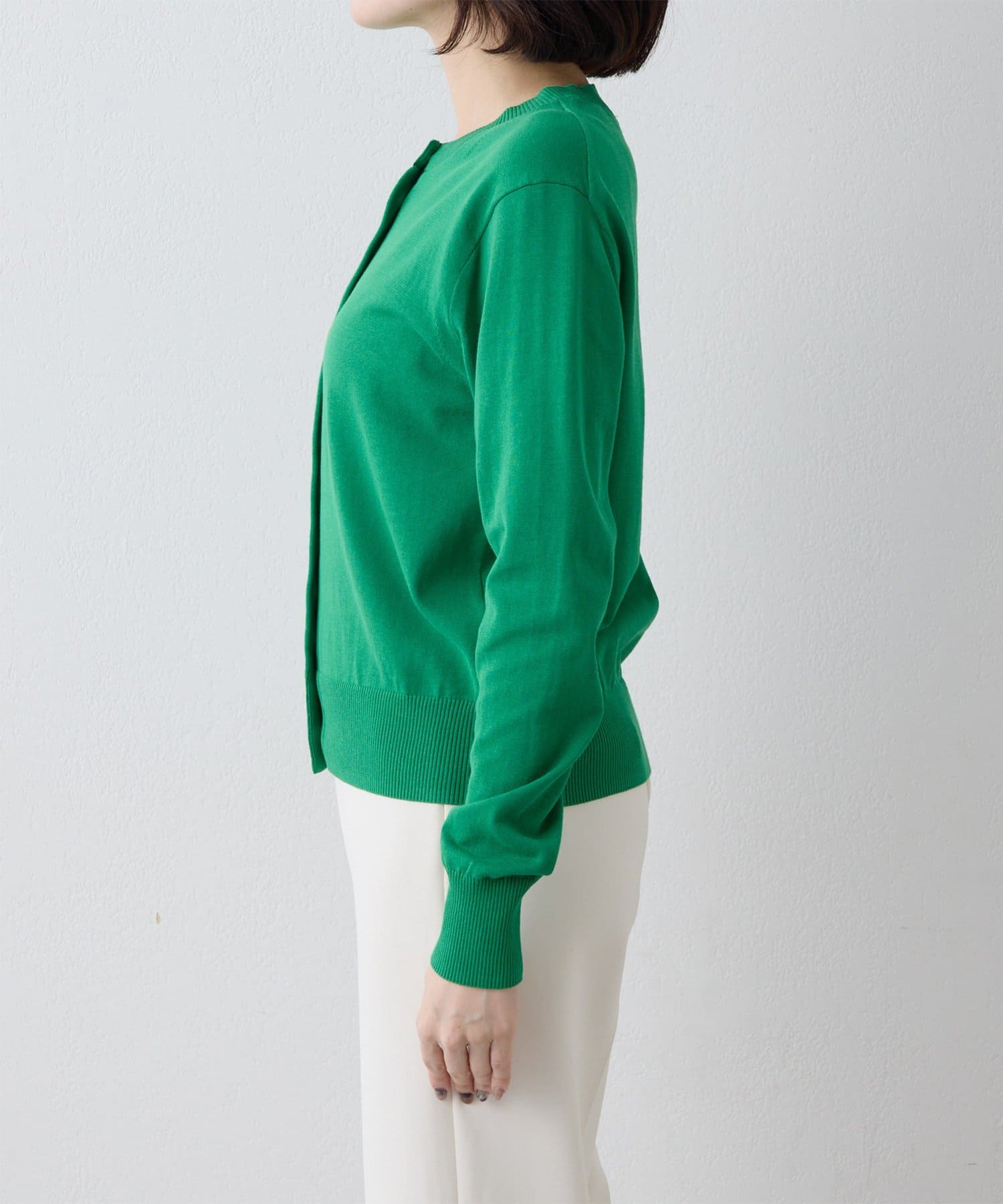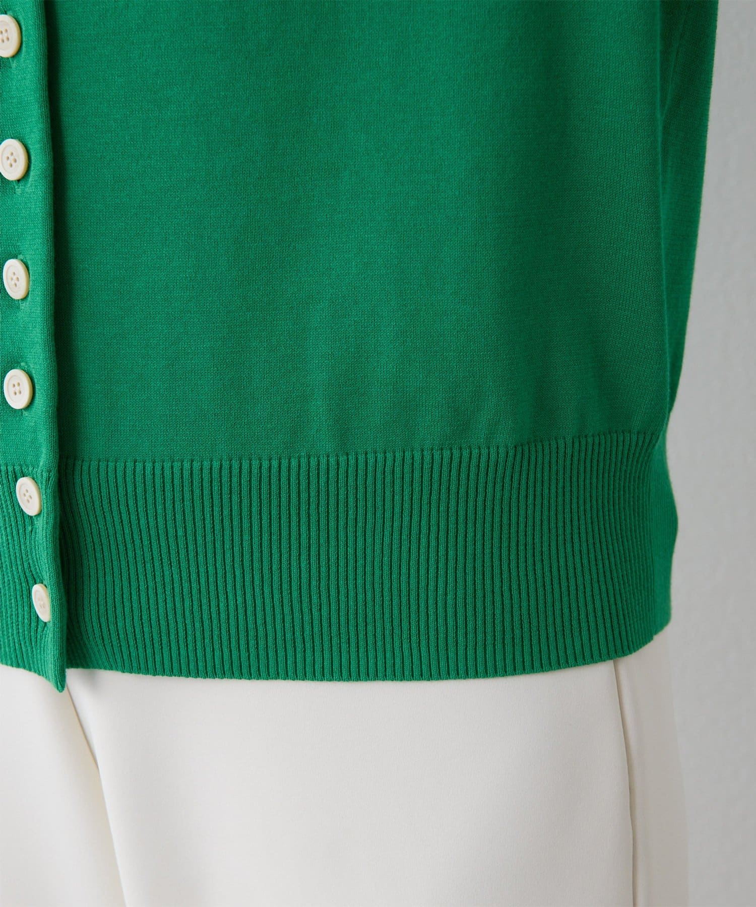 ■細やかな16ゲージで編み立てた上質なコットン天竺のニットカーディガン。