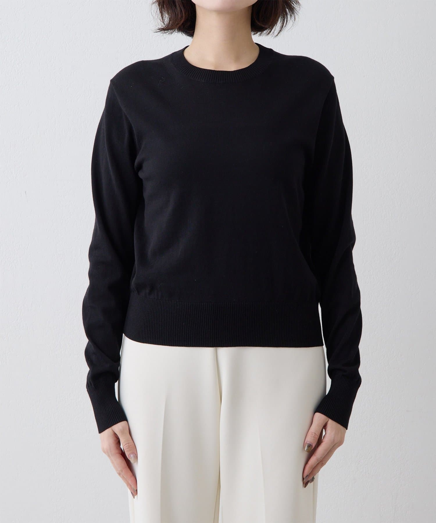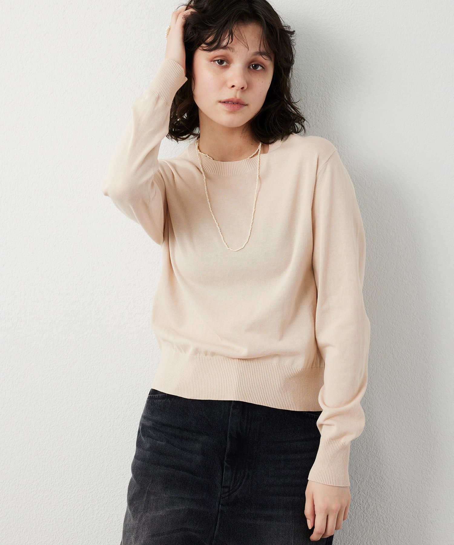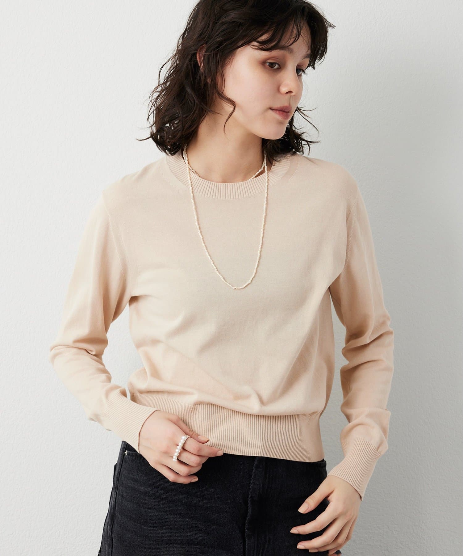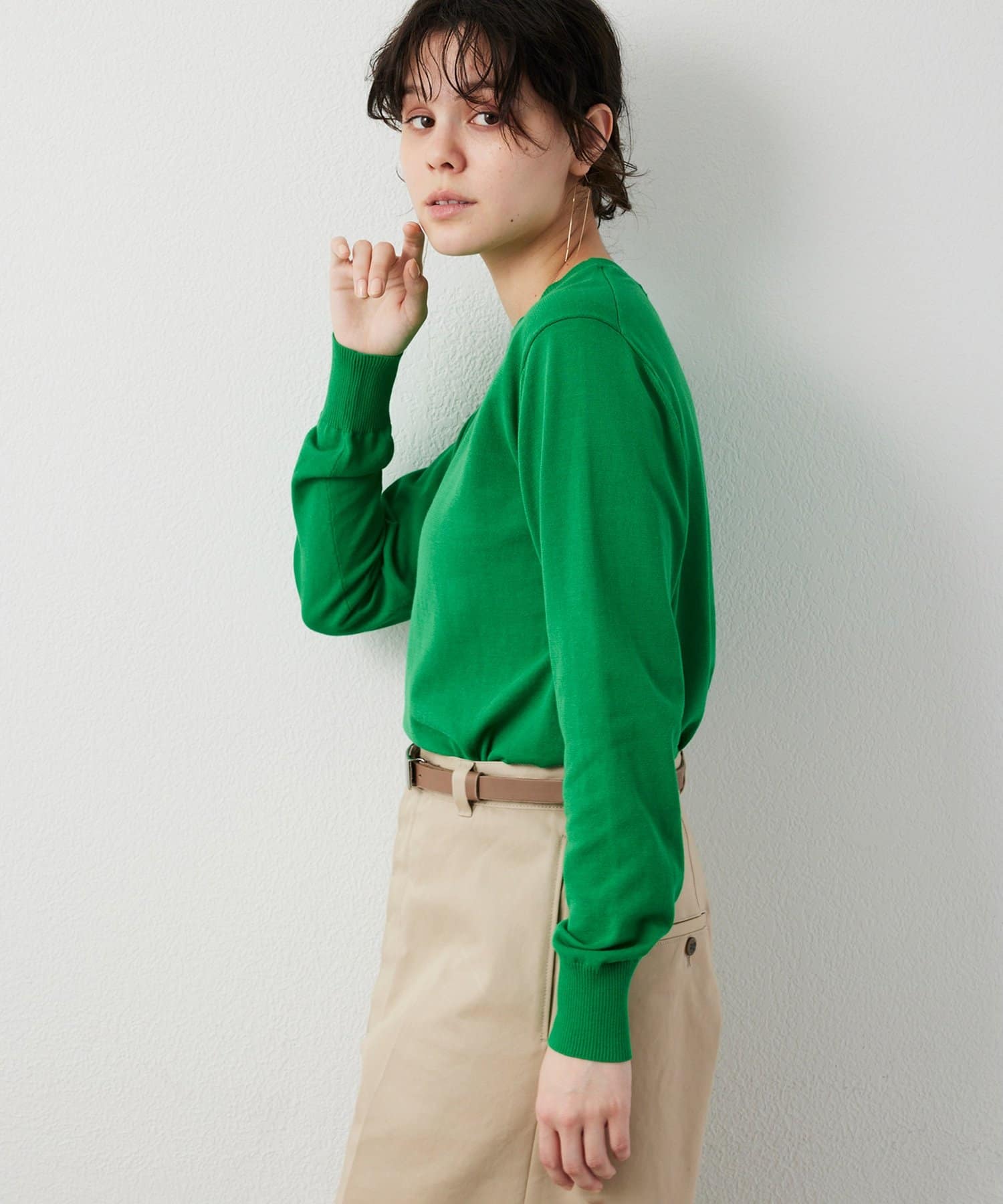 ■細やかな16ゲージで編み立てた上質なコットン天竺のニットプルオーバー。