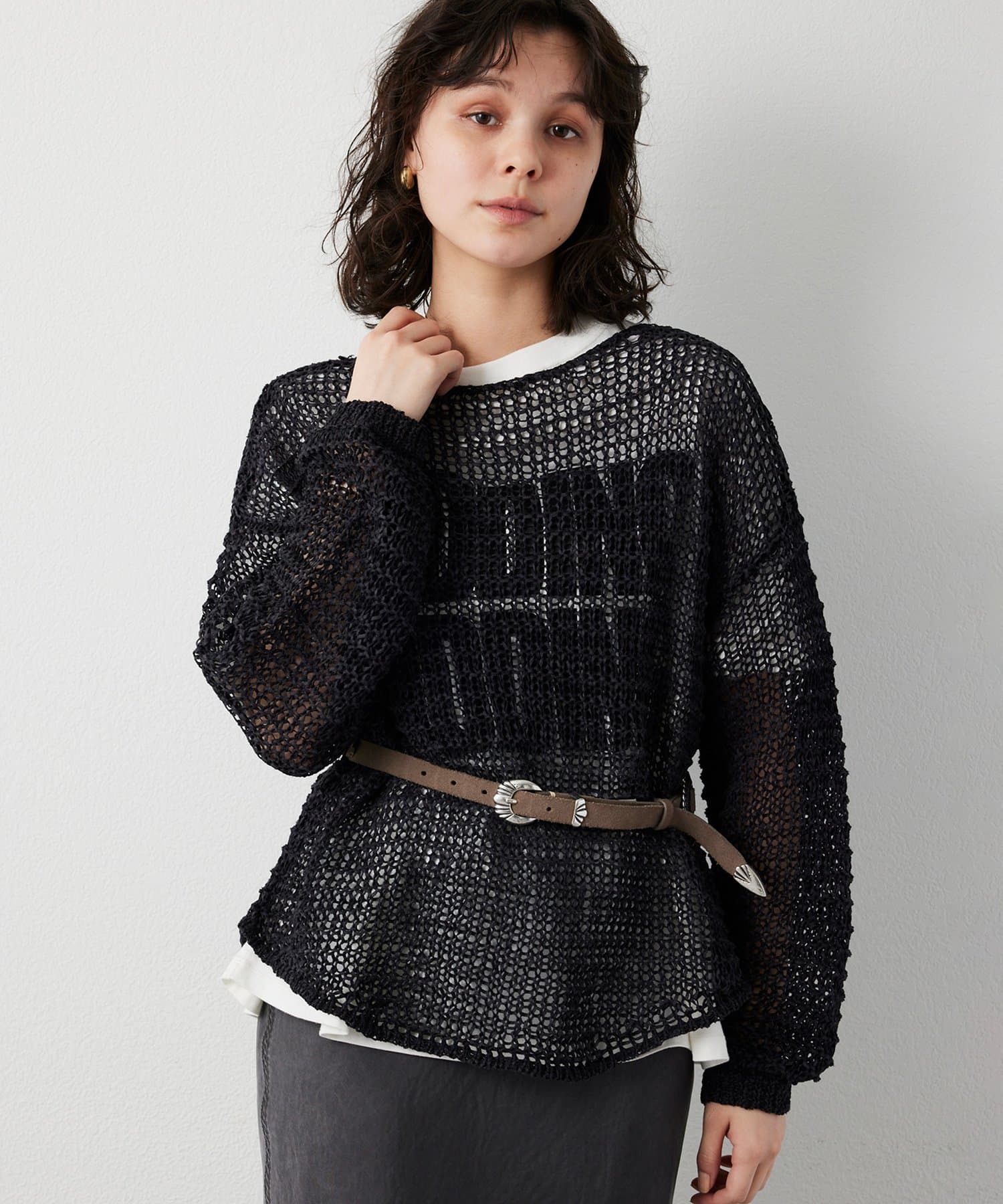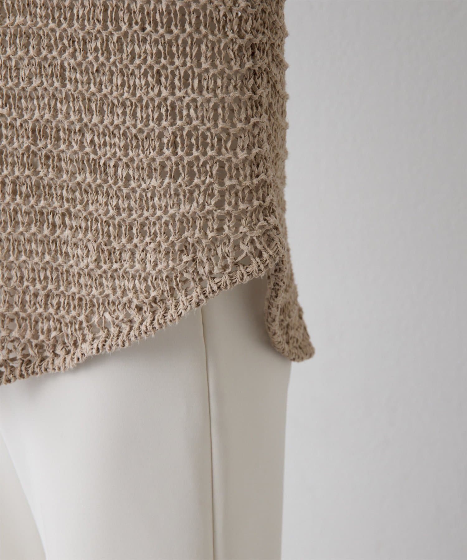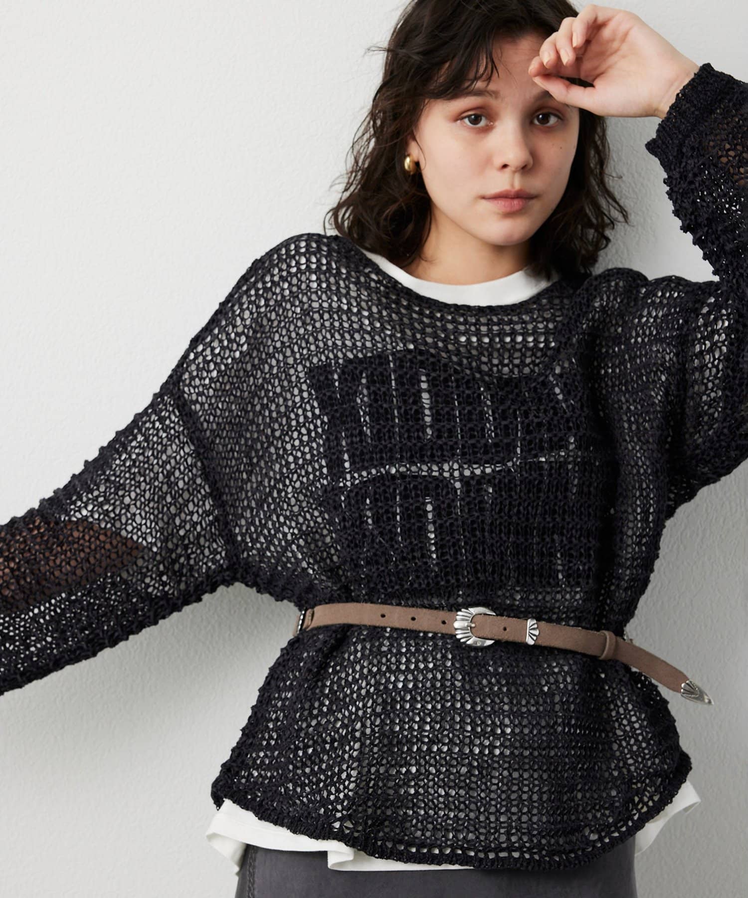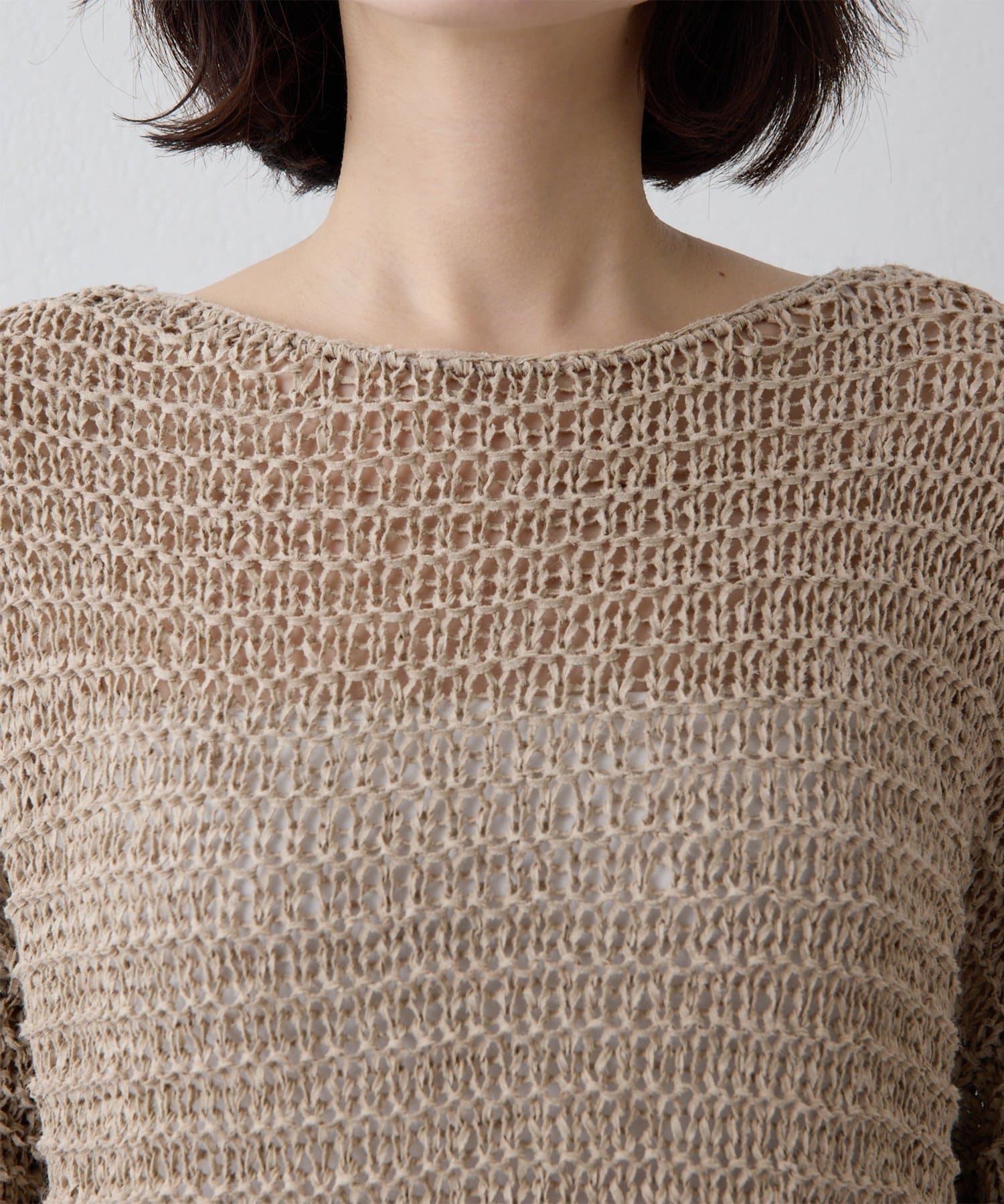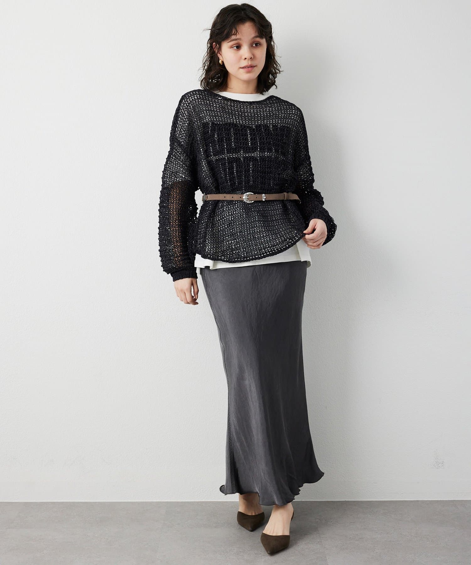 ■肌が透けるくらいの緩い編地は、インナーのアレンジ次第でロングシーズン楽しめるのもうれしいポイント。