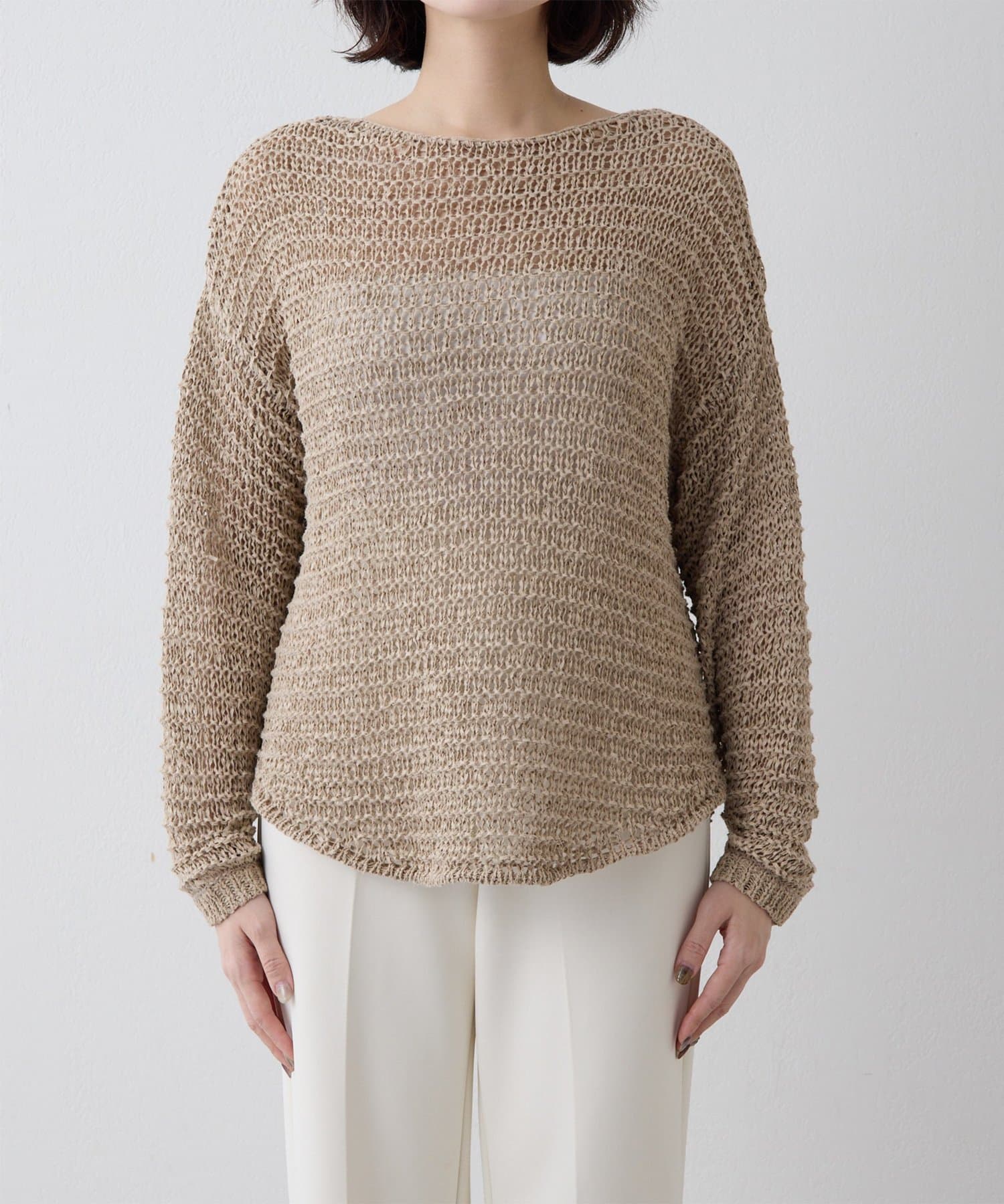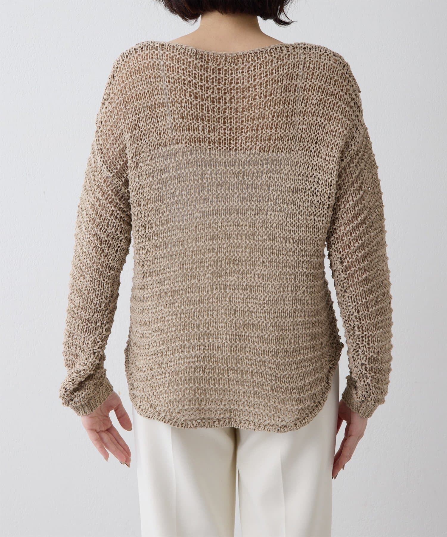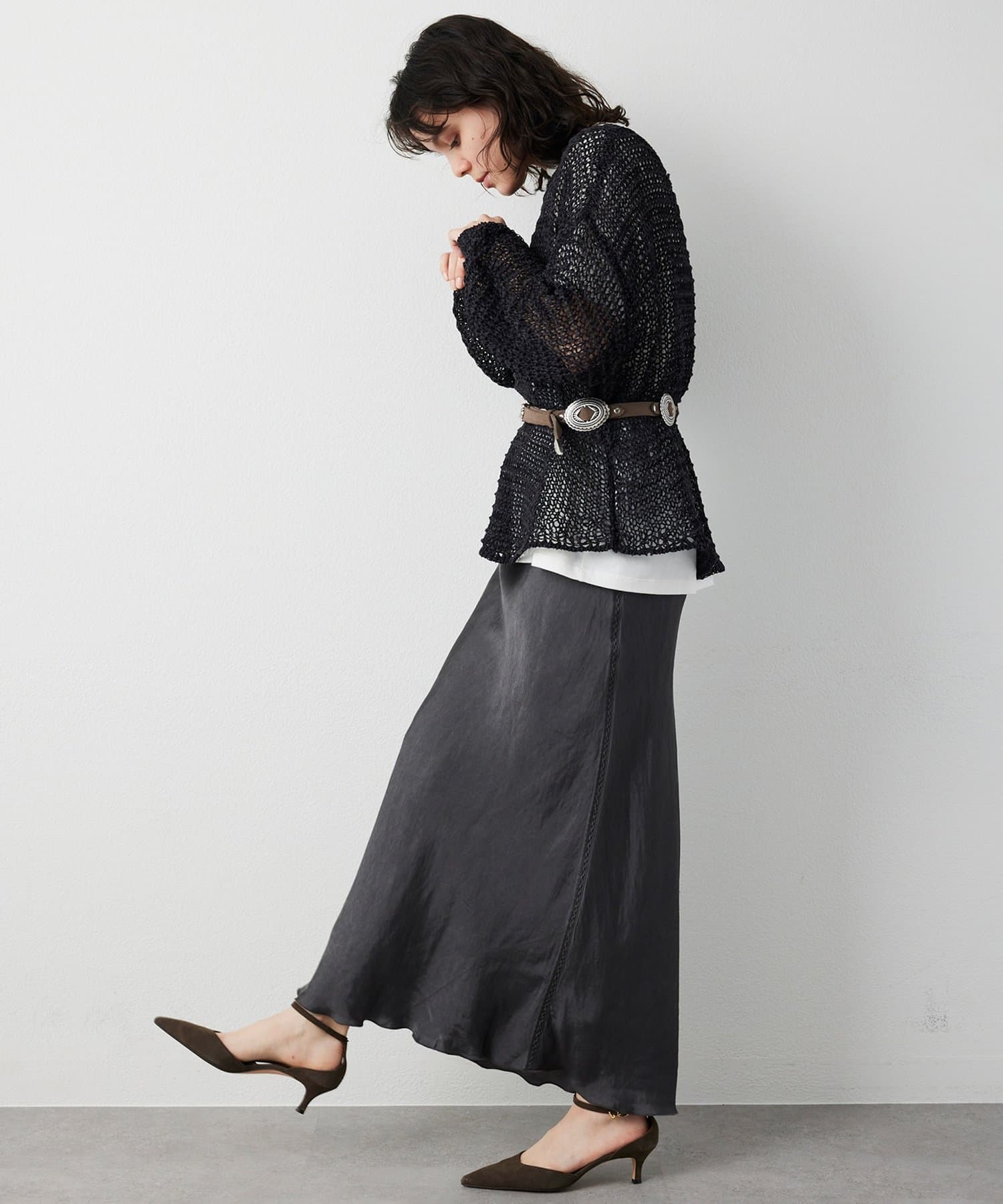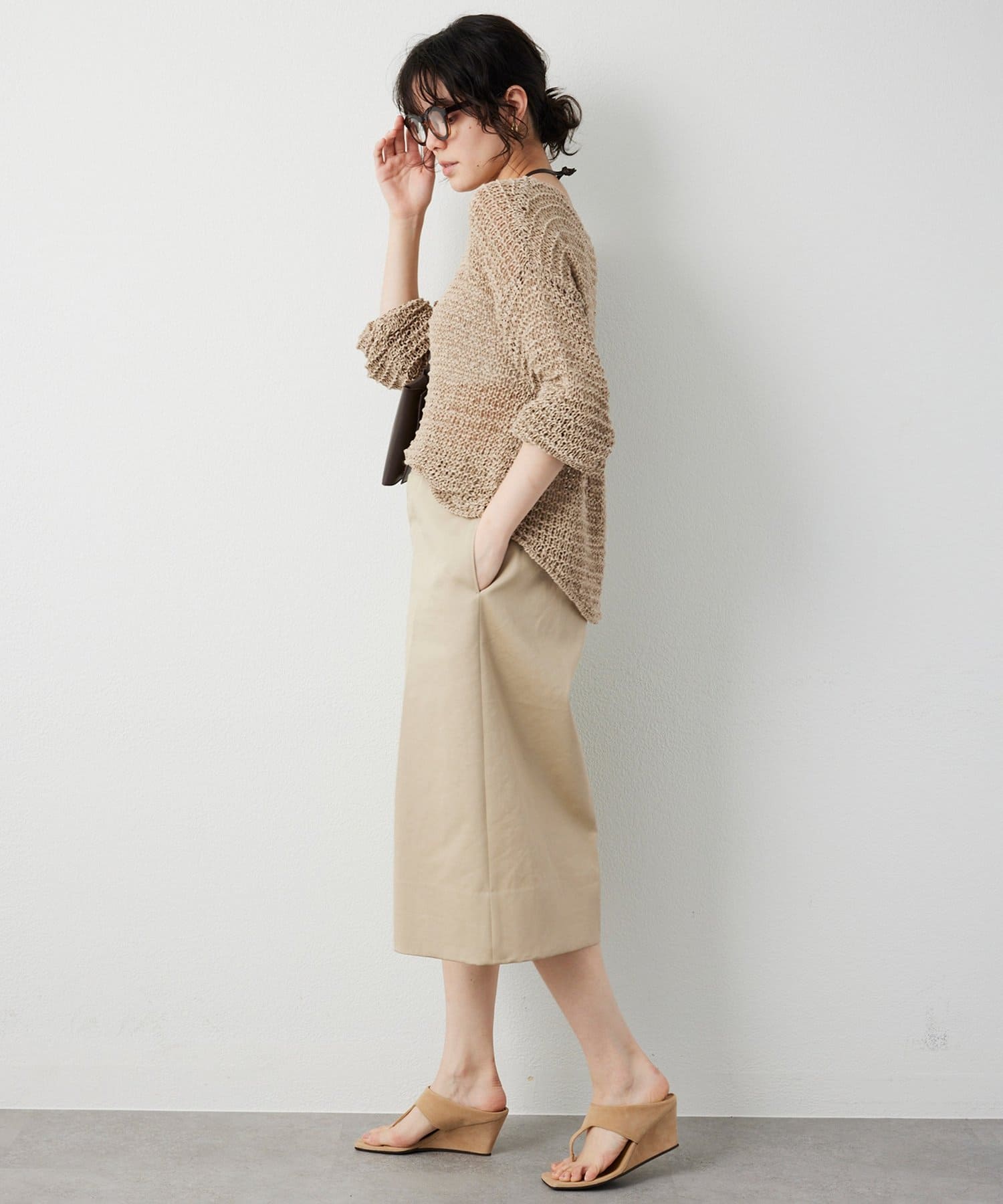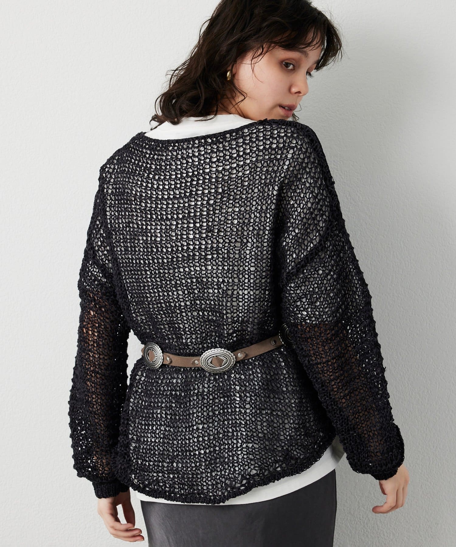 ■肌が透けるくらいの緩い編地は、インナーのアレンジ次第でロングシーズン楽しめるのもうれしいポイント。