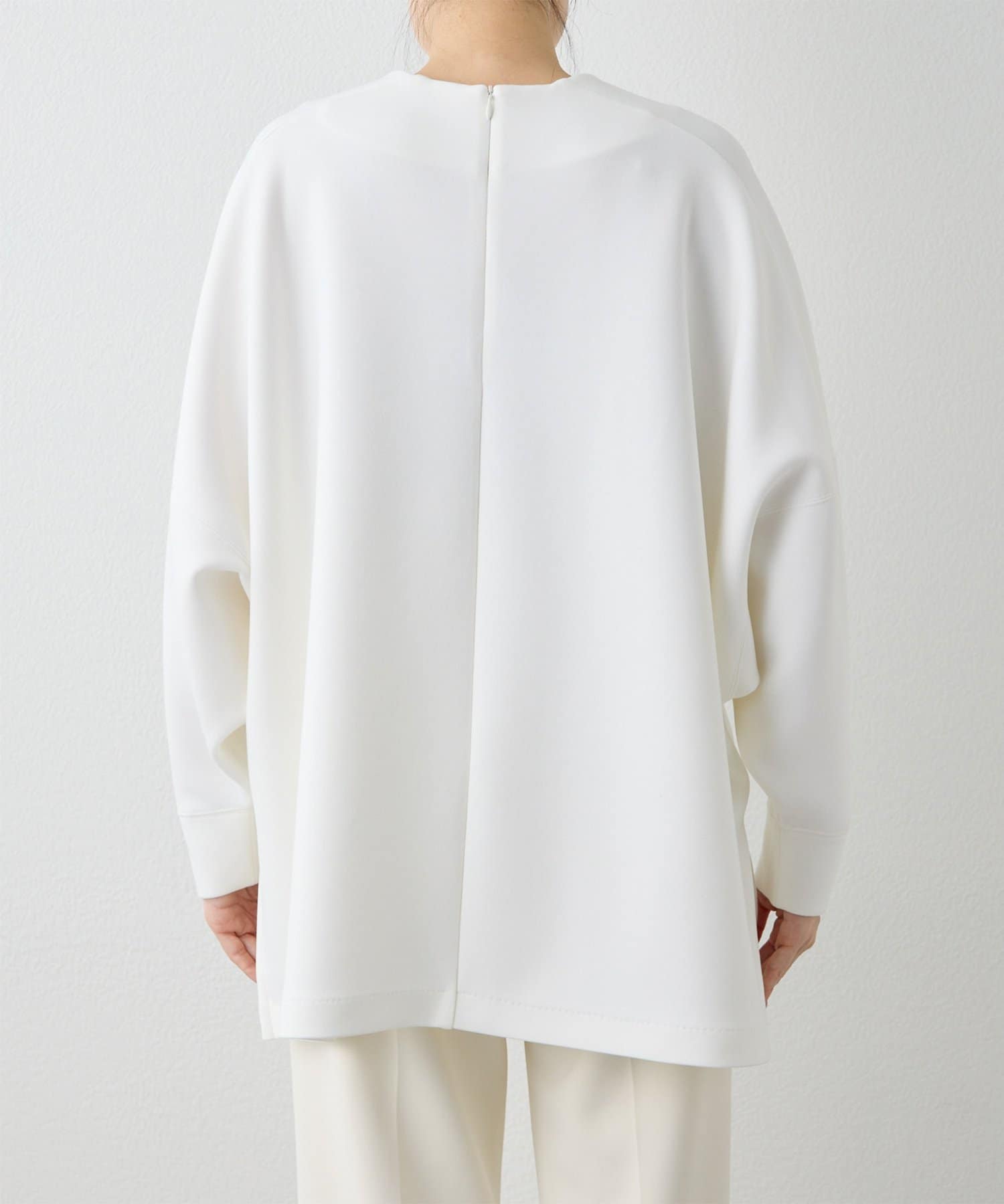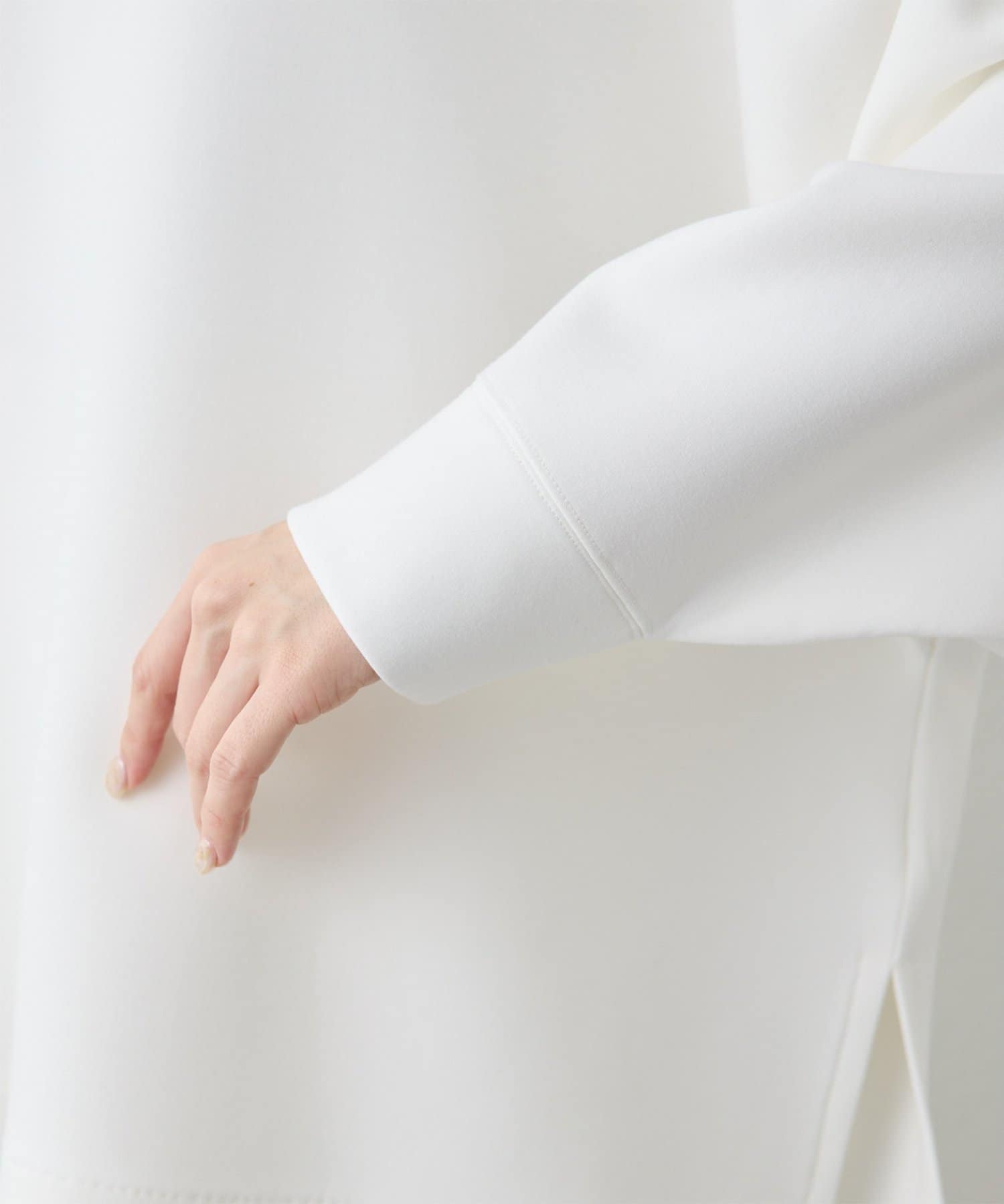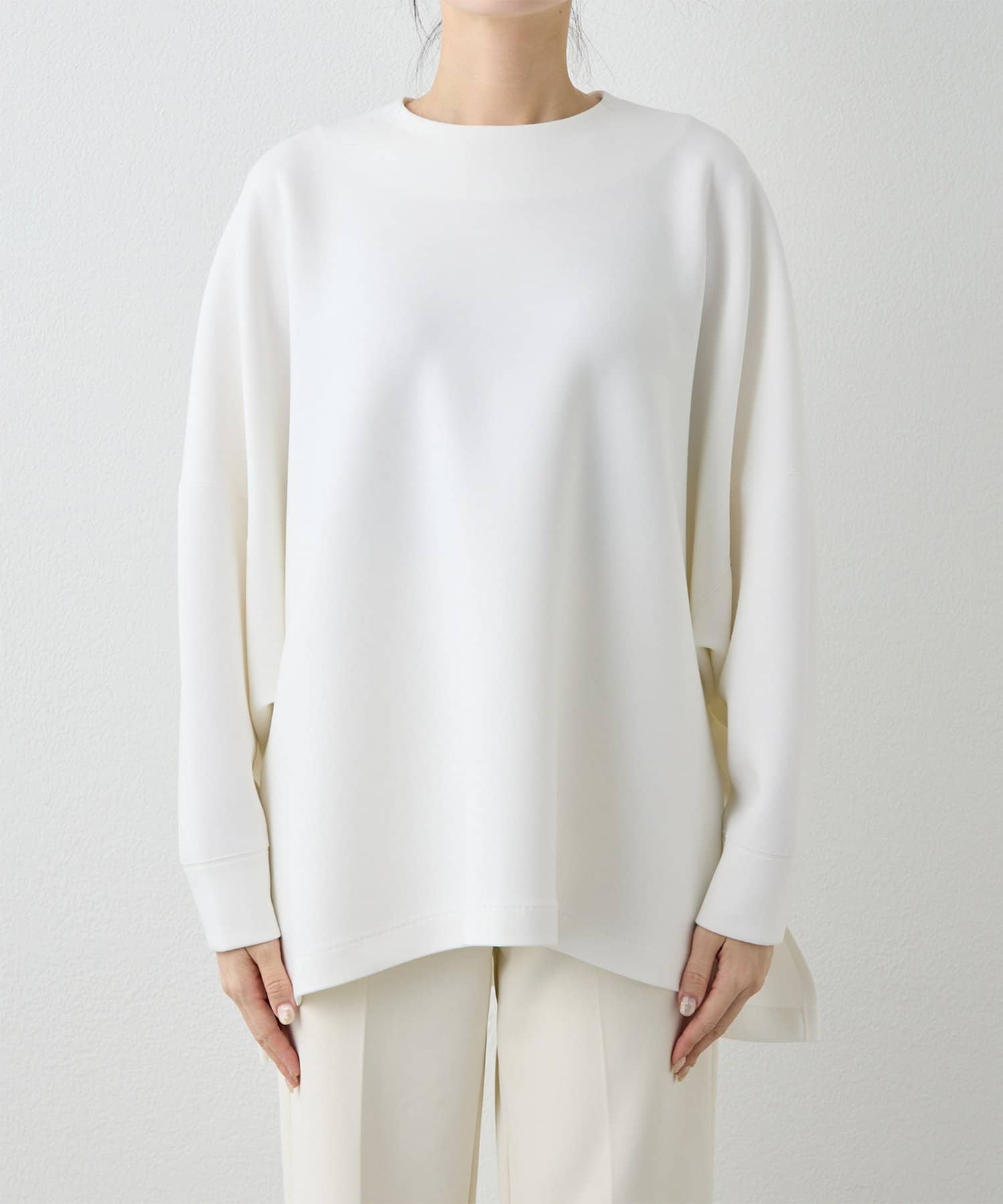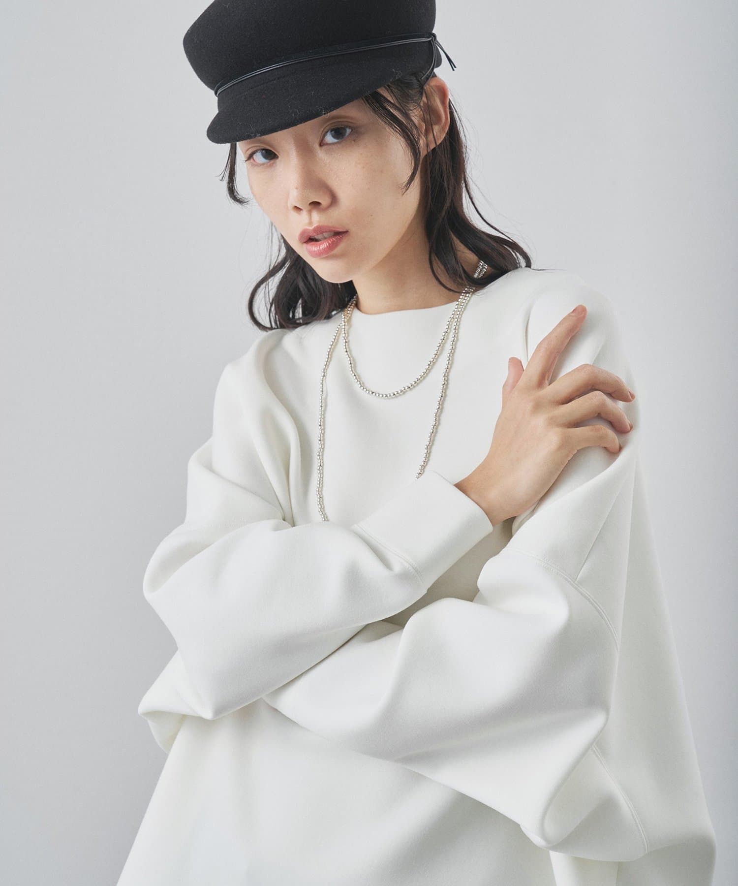 ■クルーネックのシンプルなデザインながら、ワイドな身幅と脇スリットで抜け感のあるシルエットを実現。