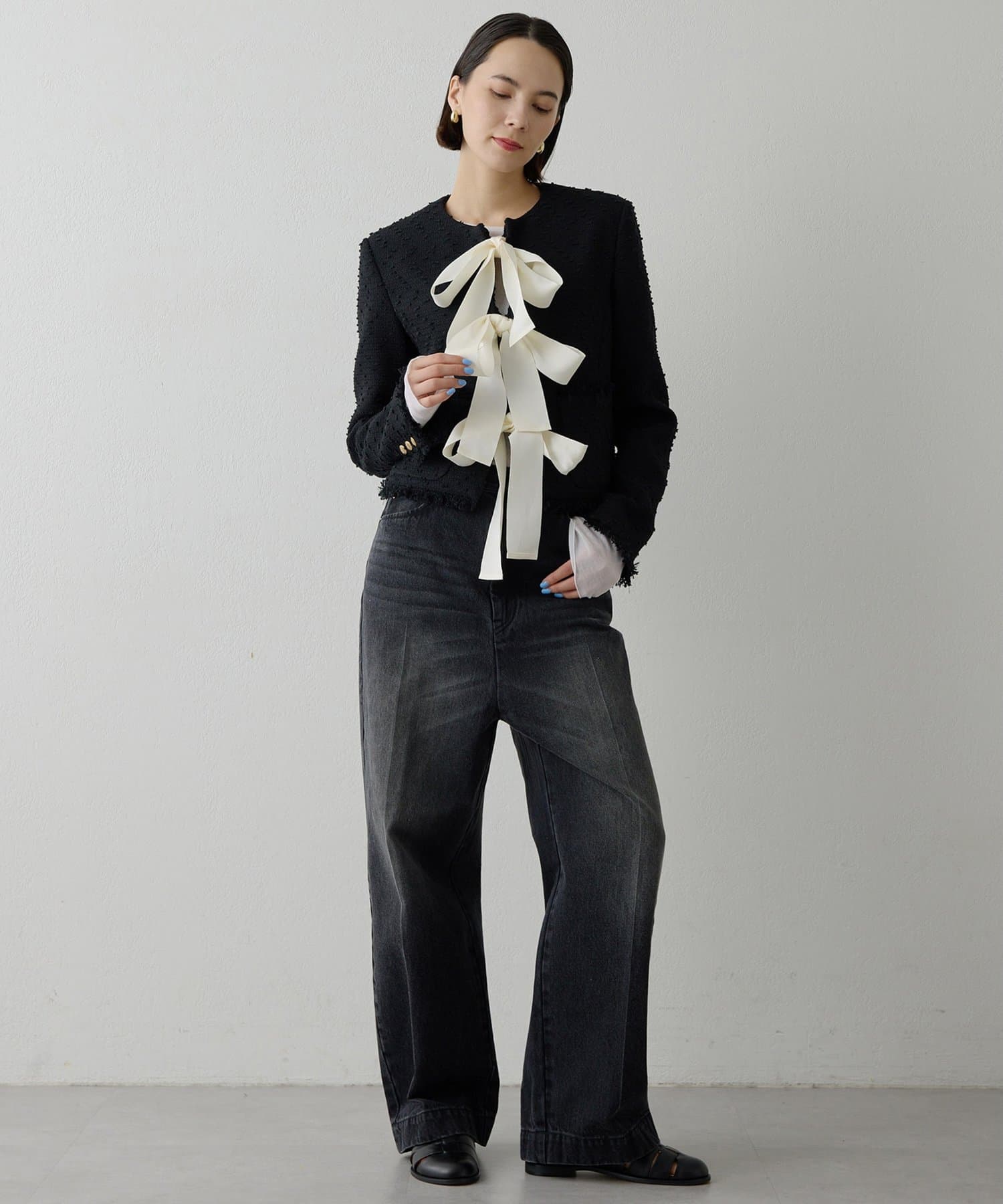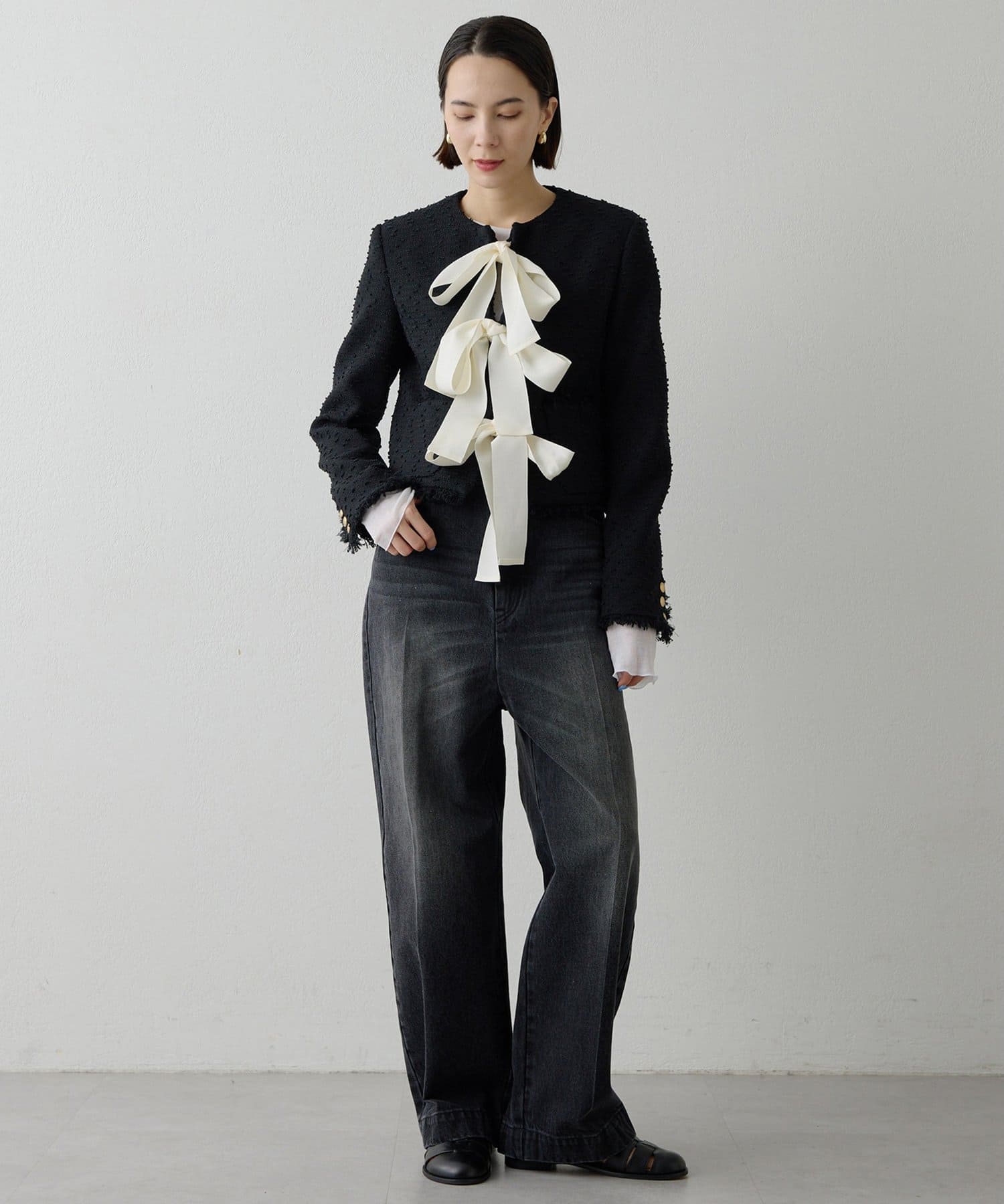 • Whim Gazette(ウィム ガゼット) ネップツイードリボンジャケット