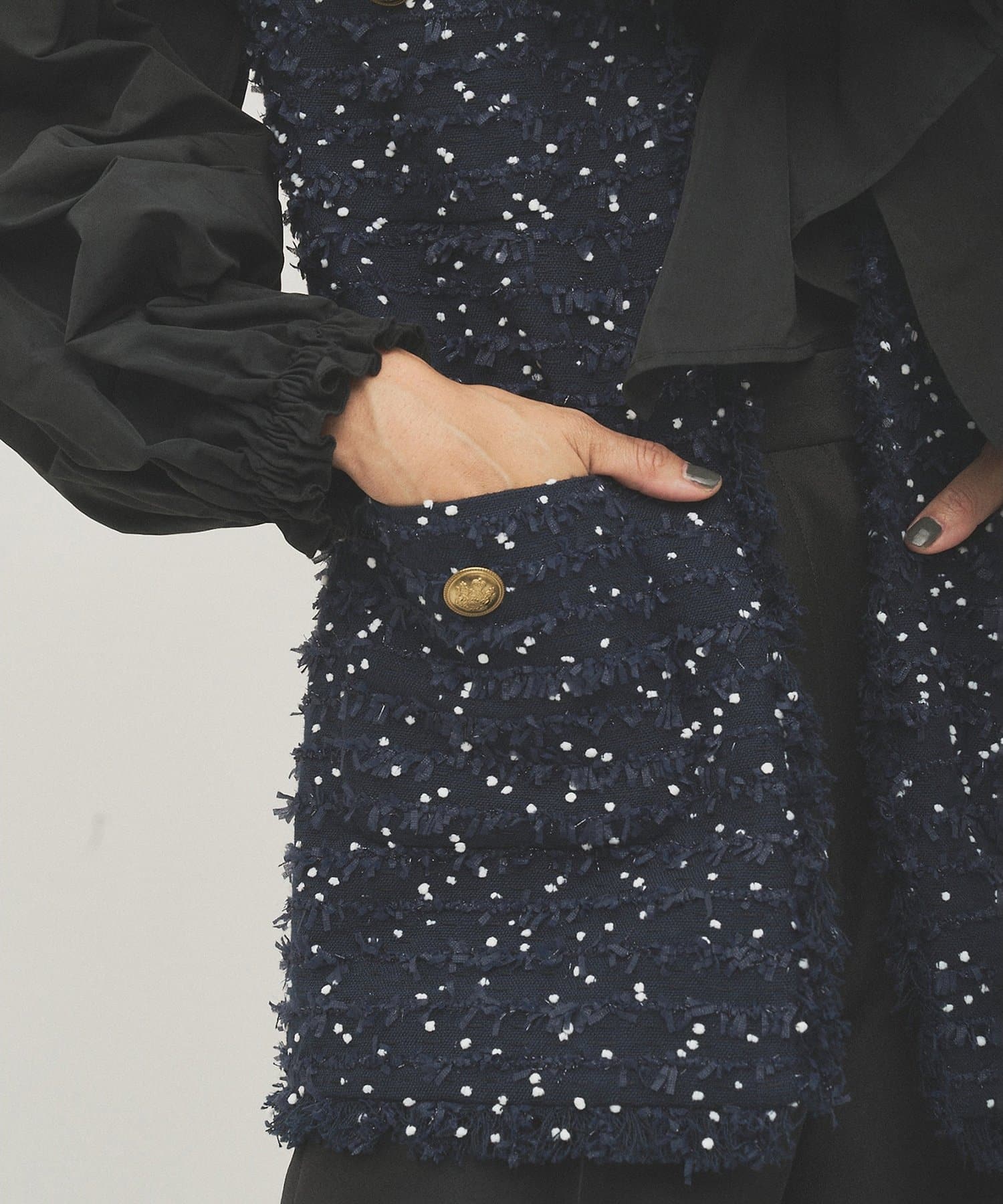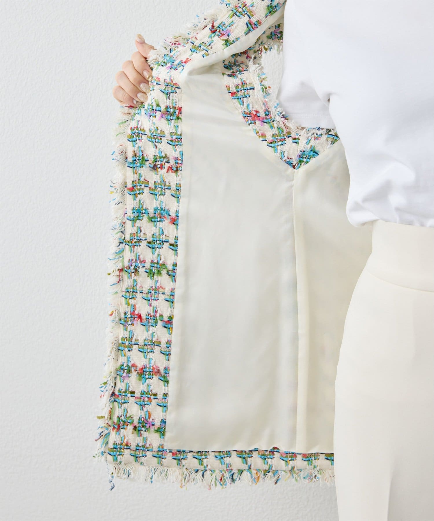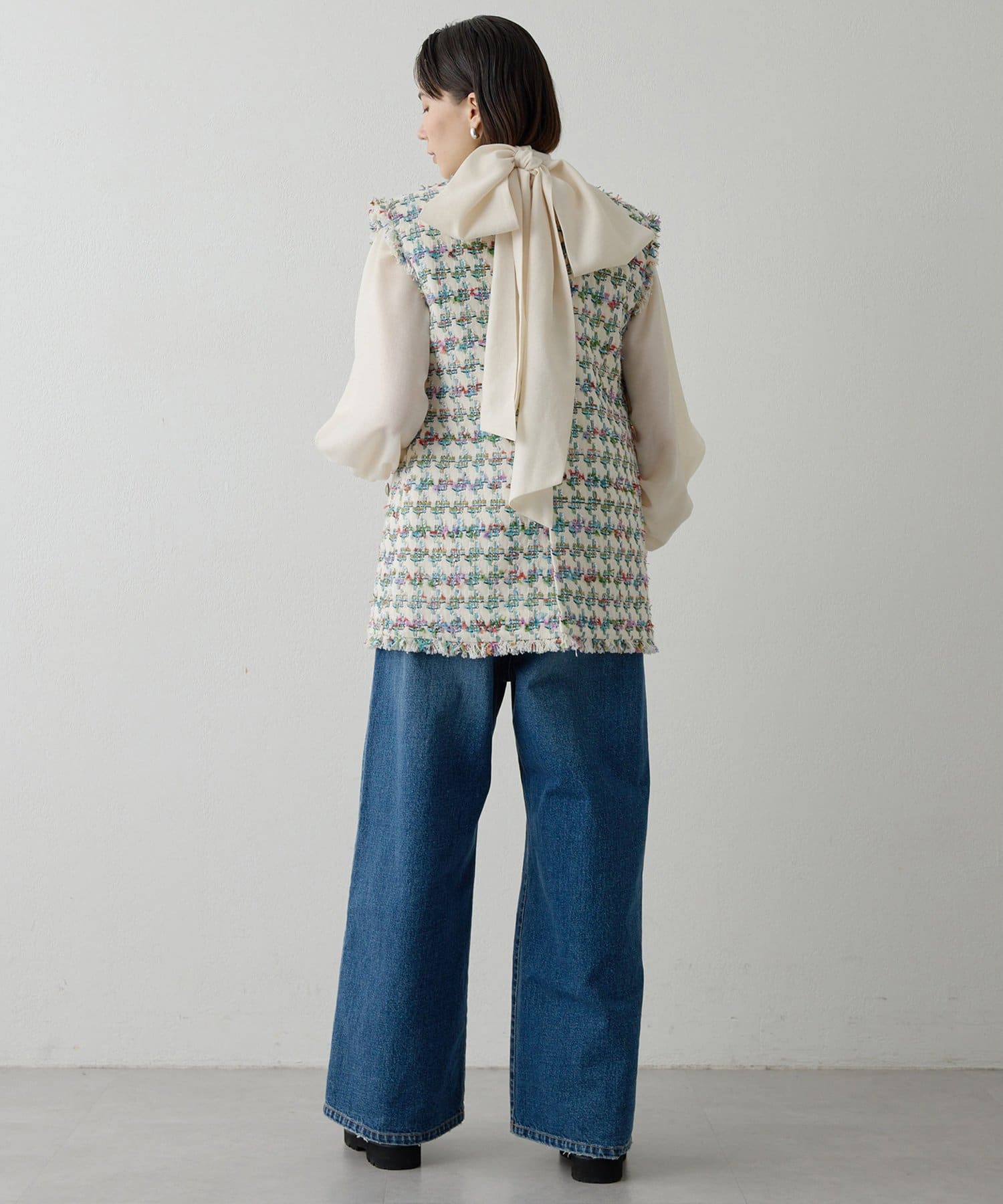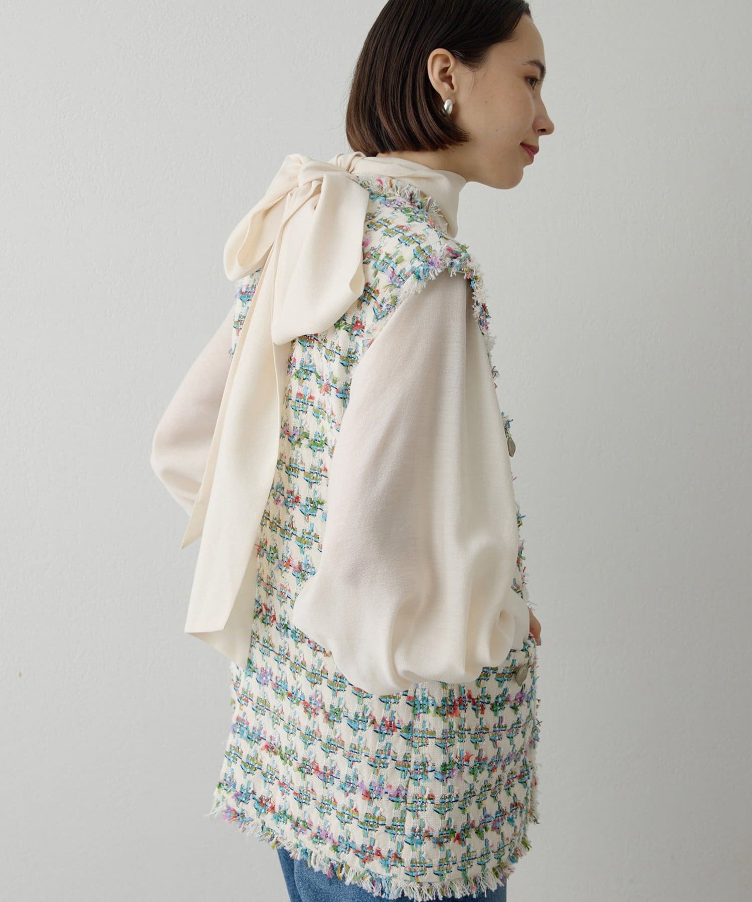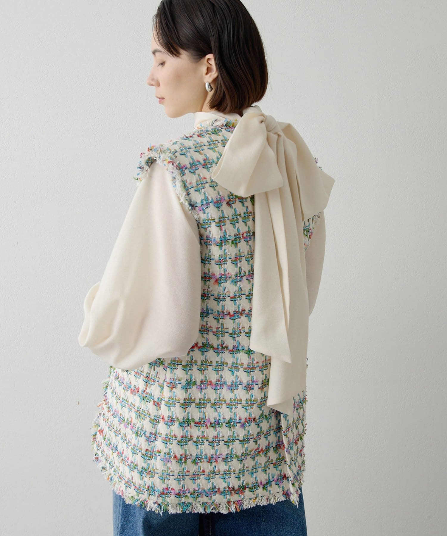 ■イギリスの老舗LINTON社の高品質なファンシーツイードでデザインされたジレ。