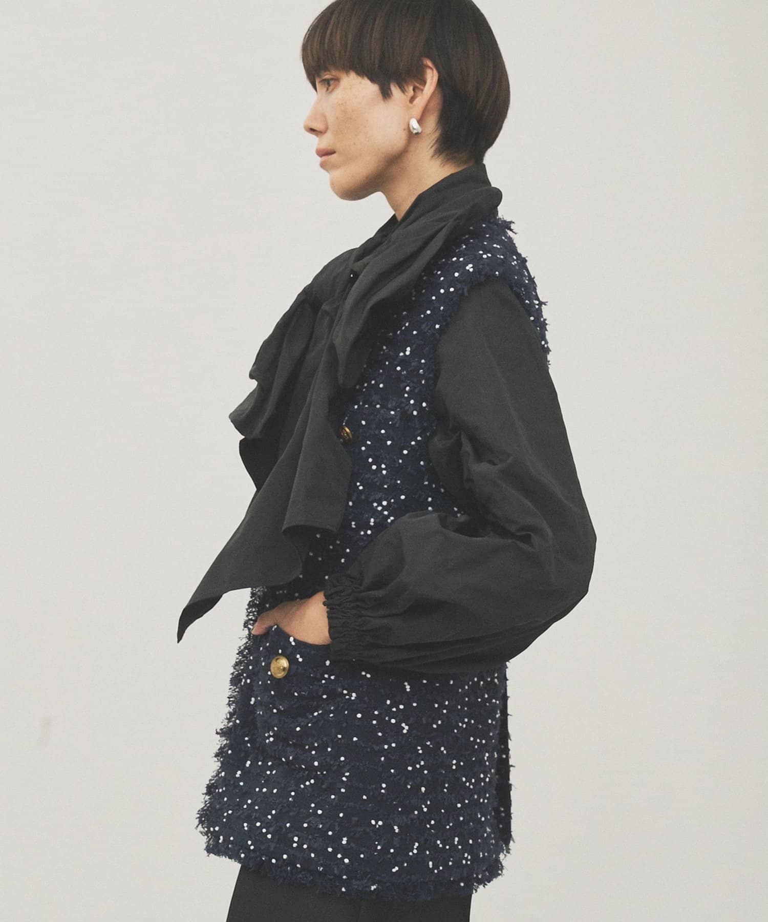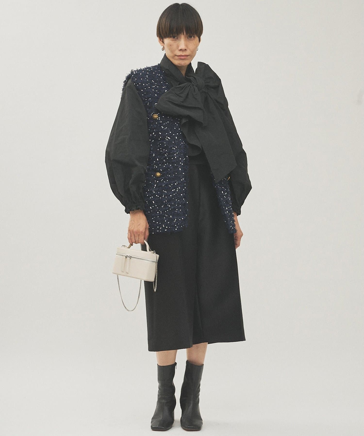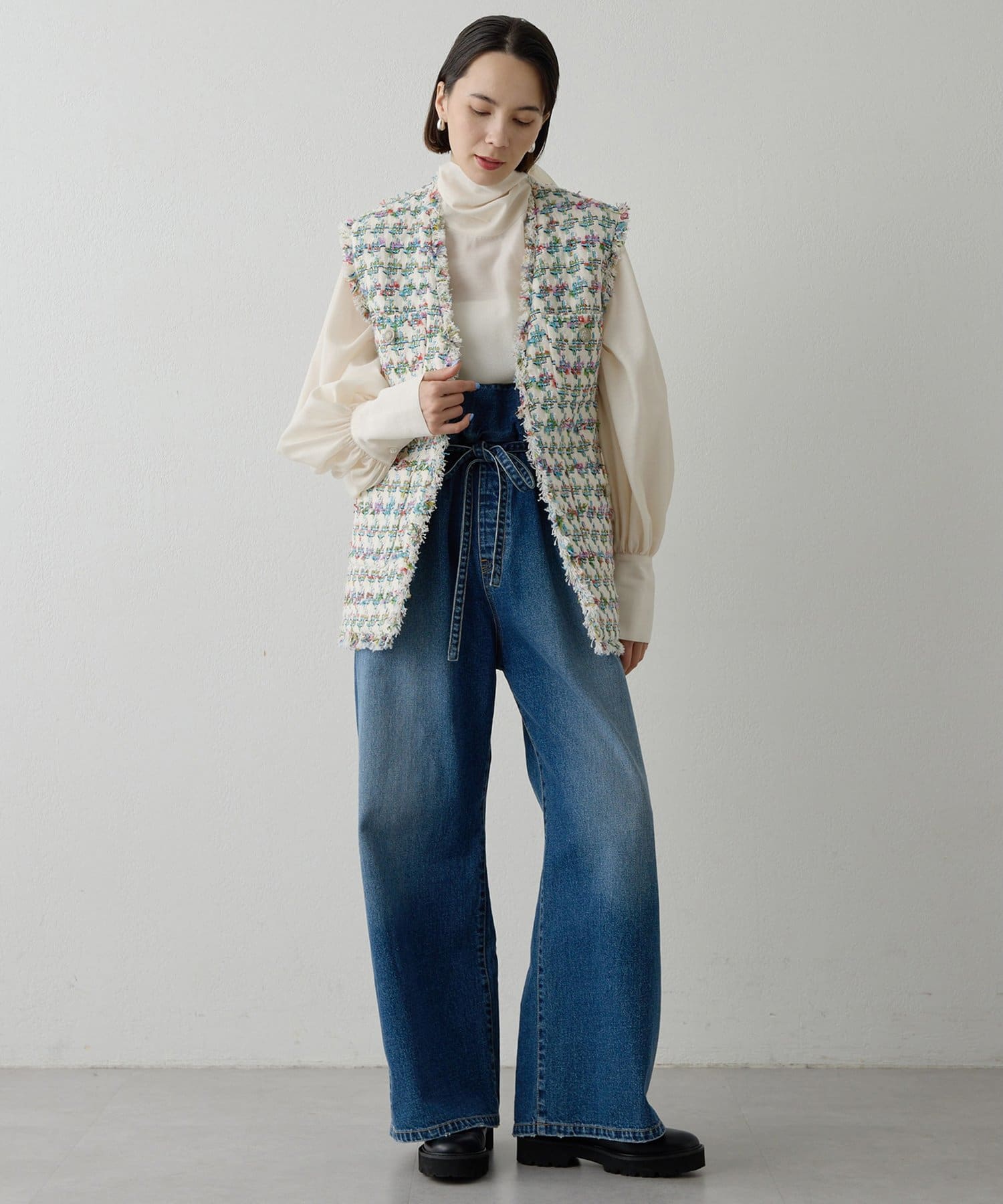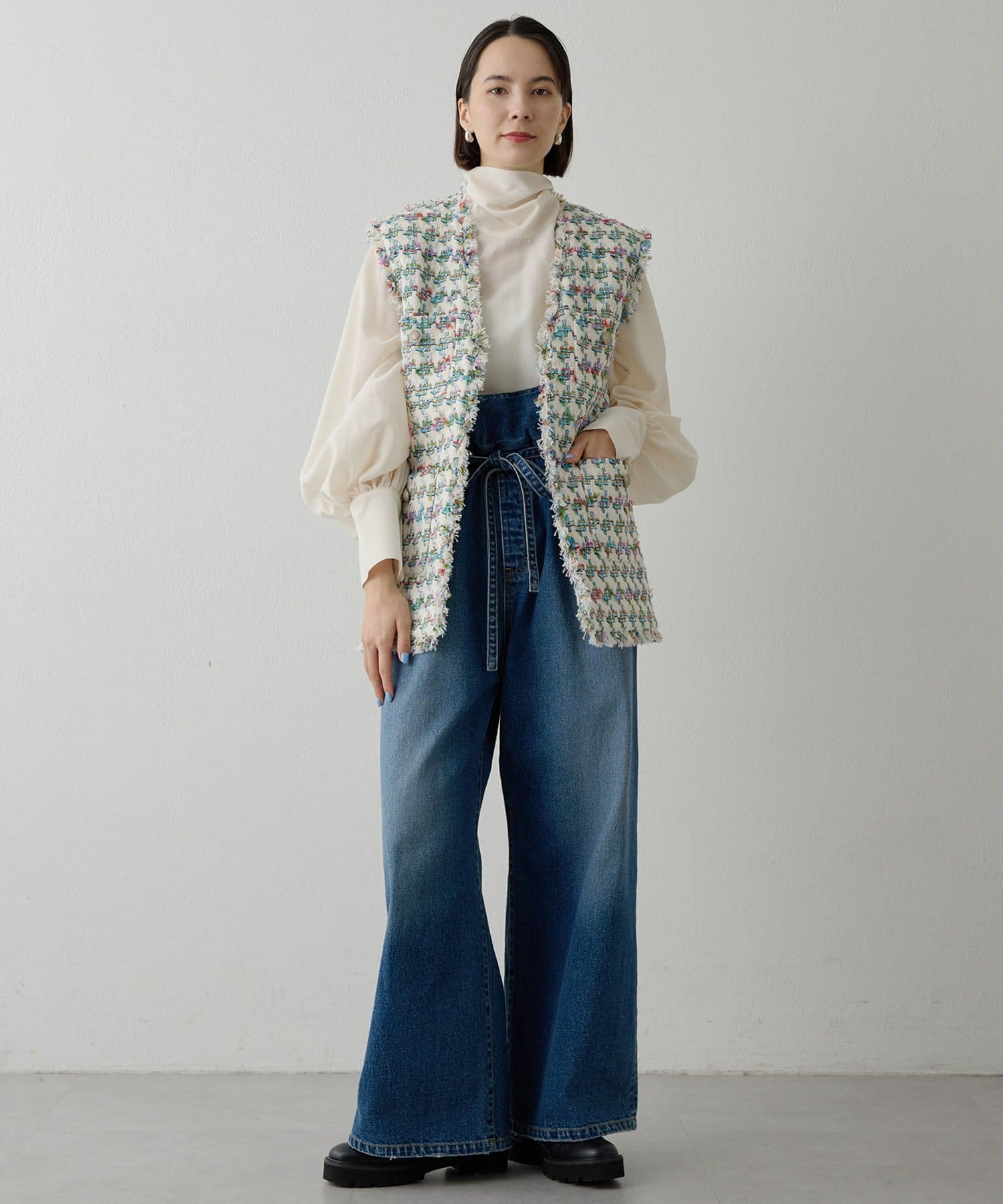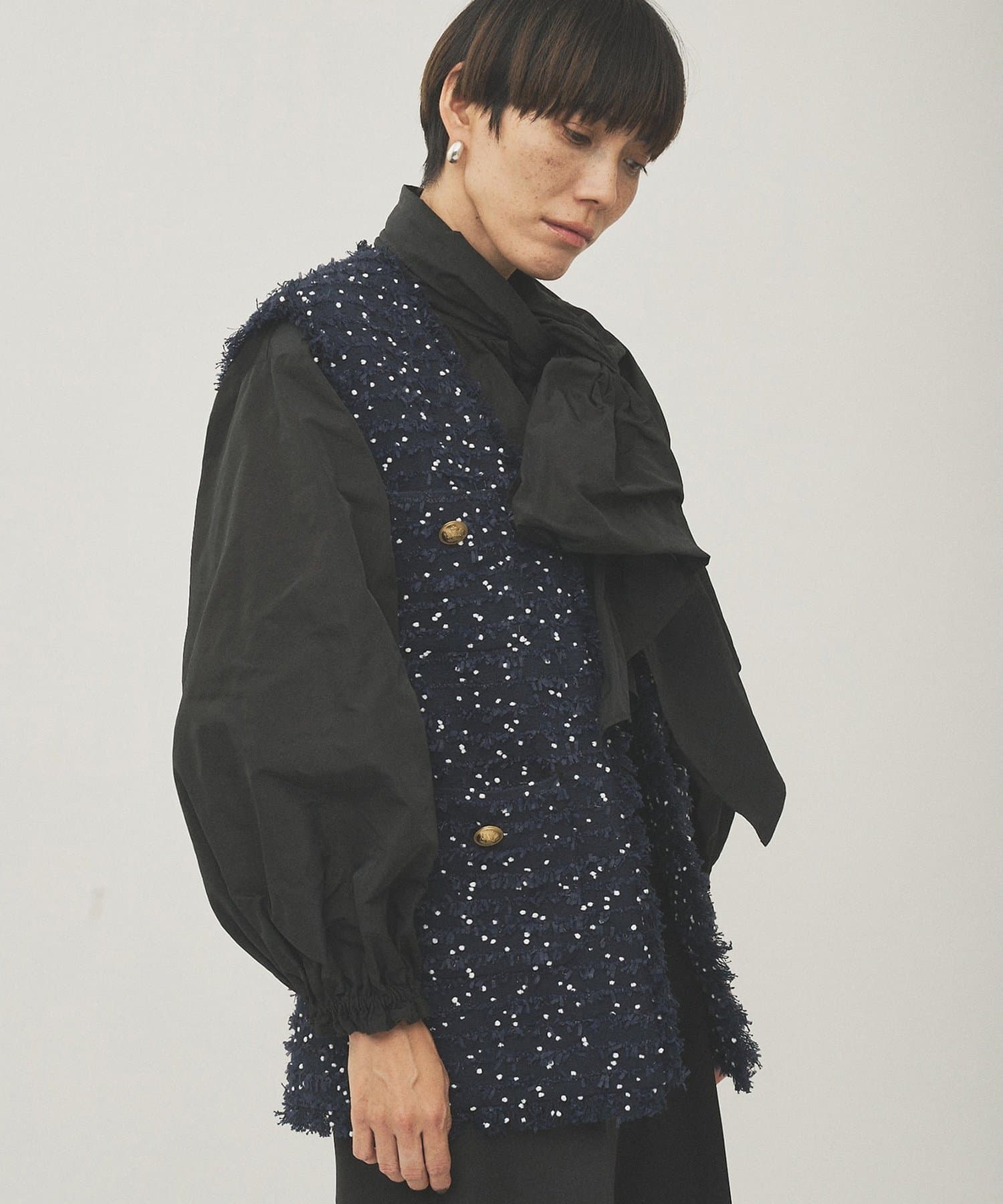 ■イギリスの老舗LINTON社の高品質なファンシーツイードでデザインされたジレ。