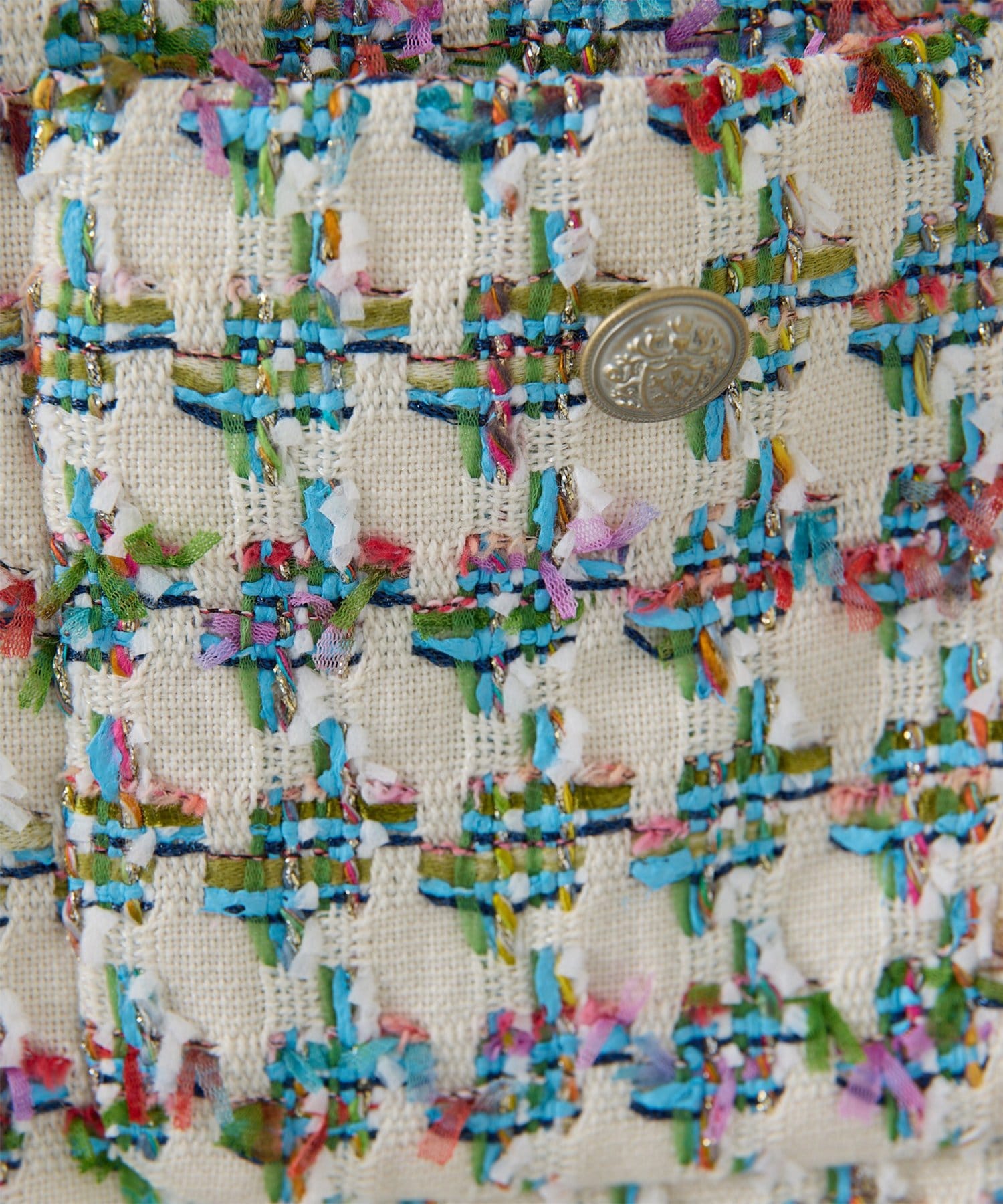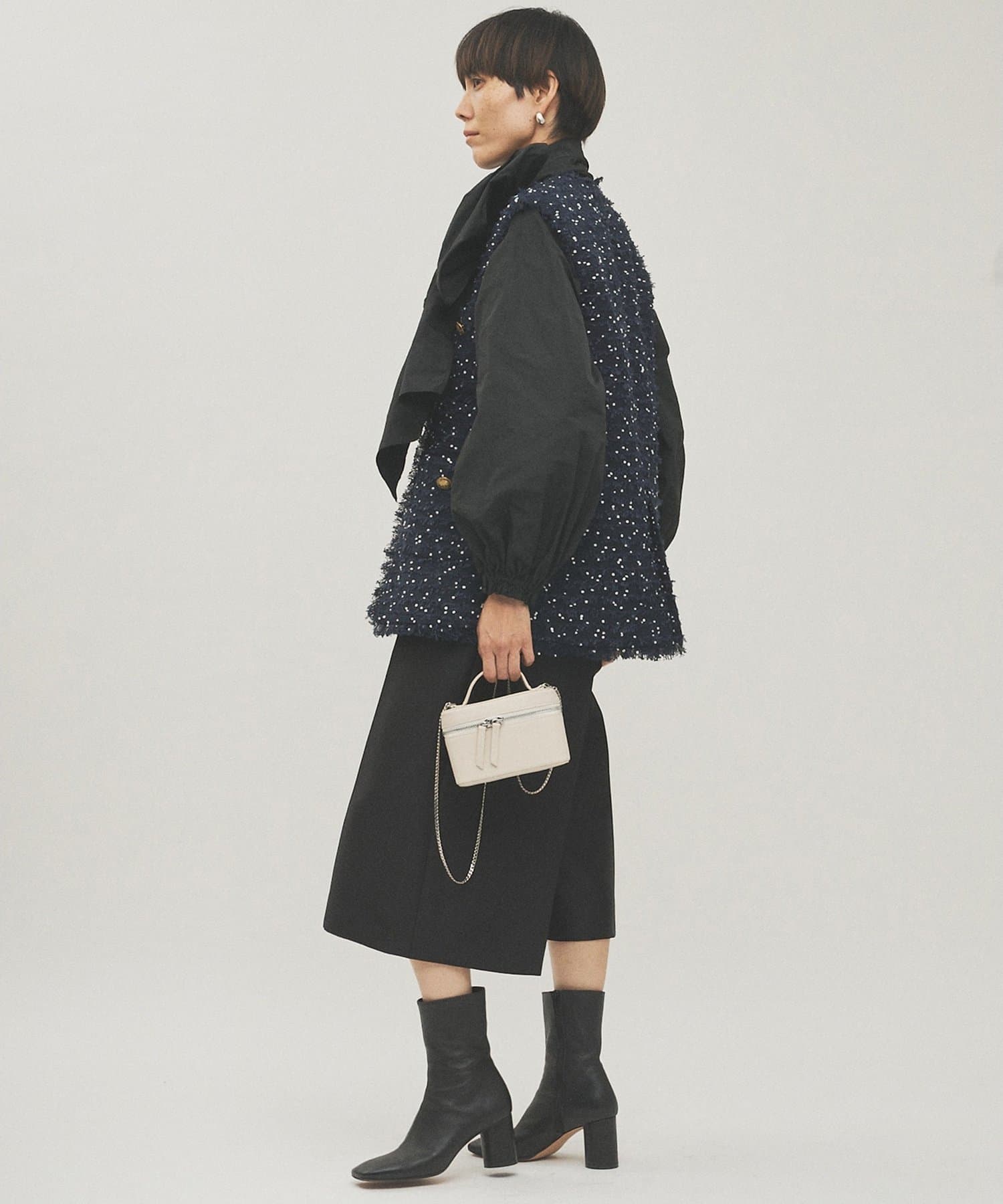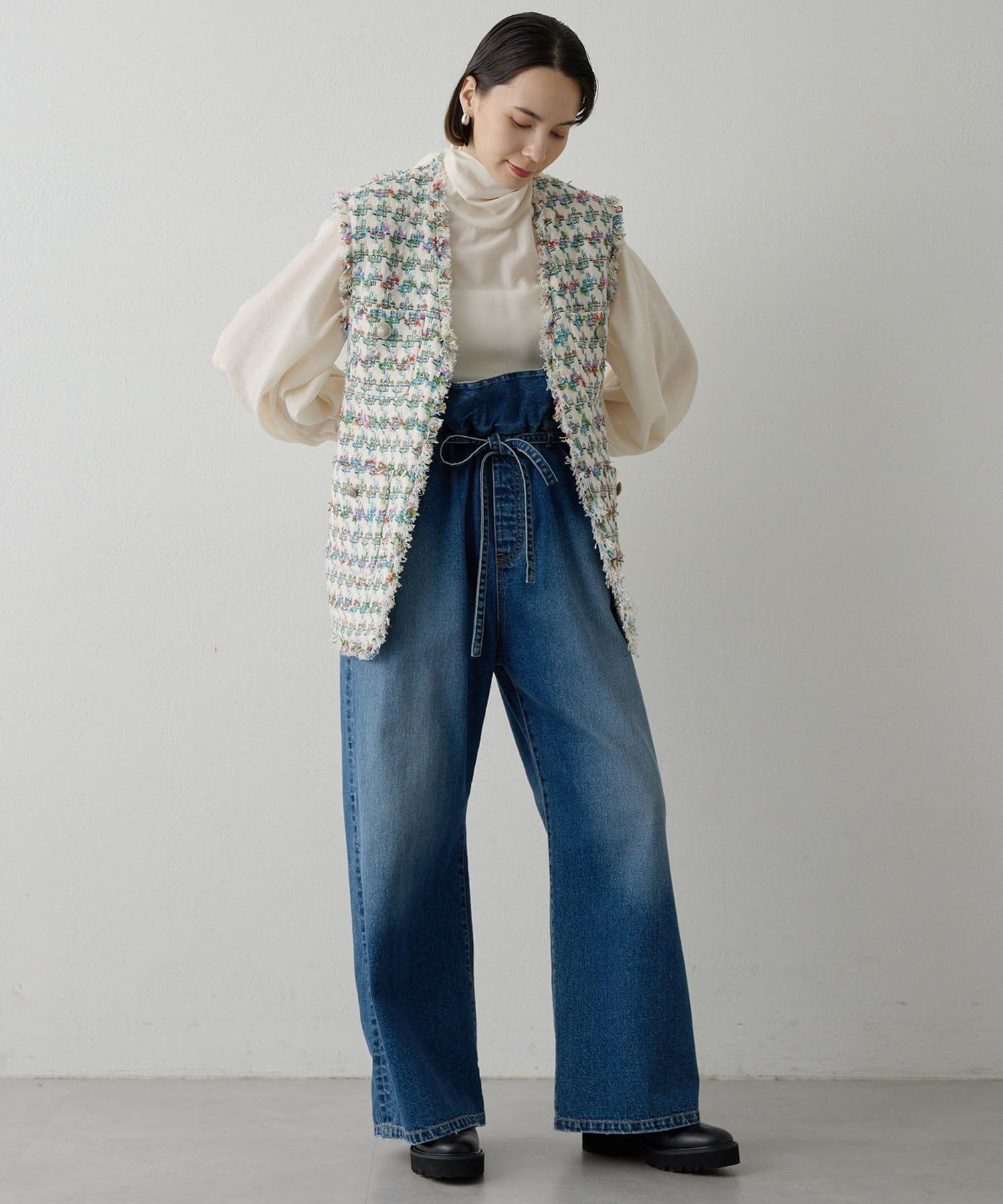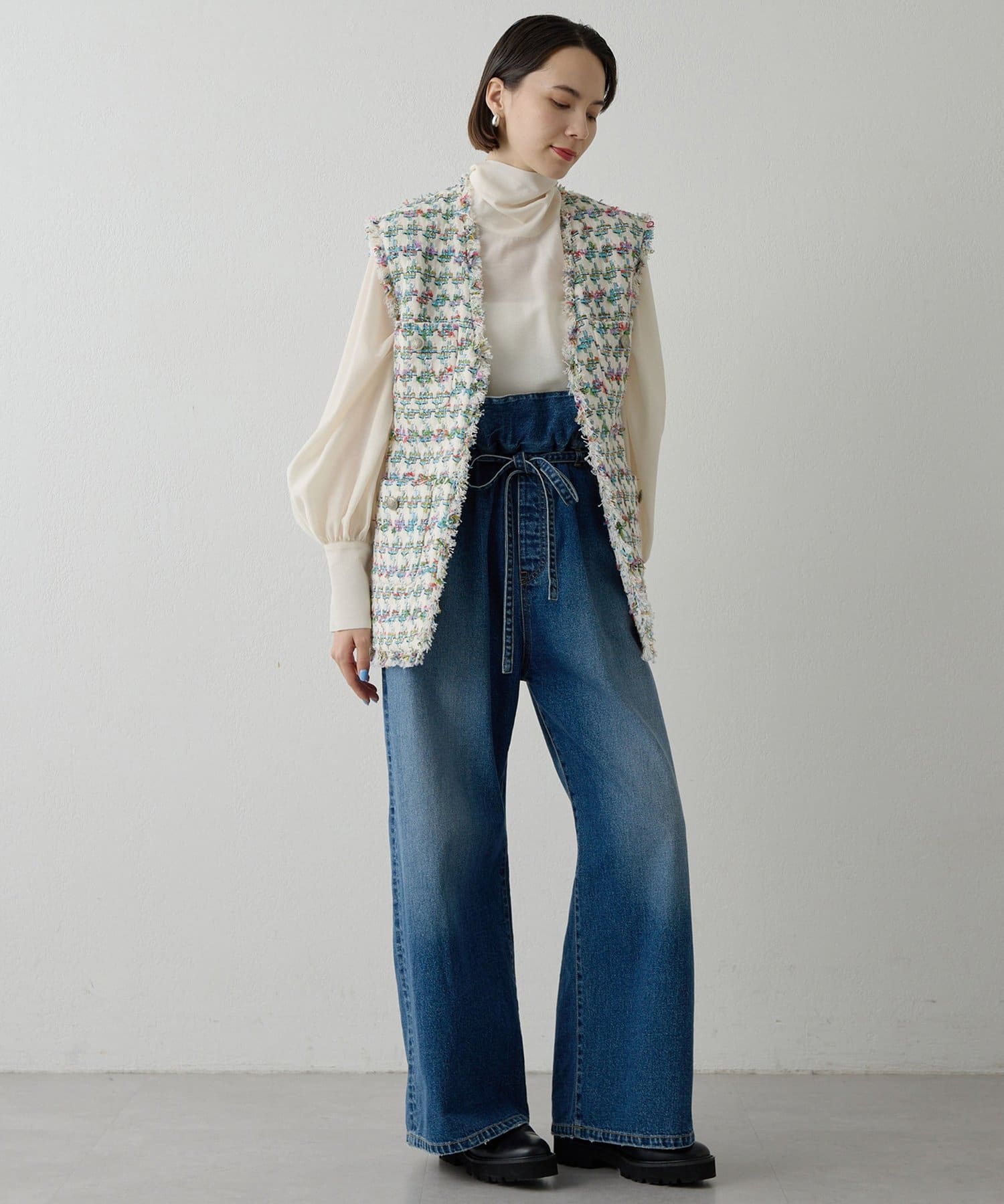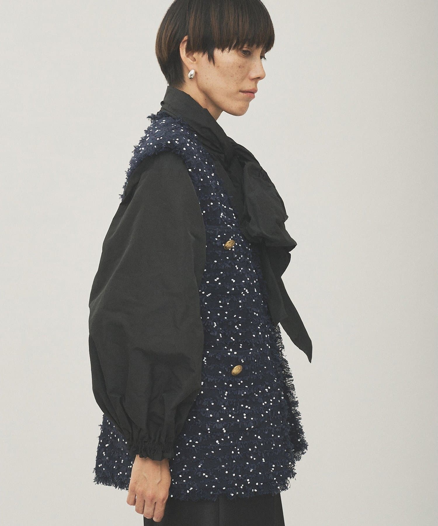■イギリスの老舗LINTON社の高品質なファンシーツイードでデザインされたジレ。