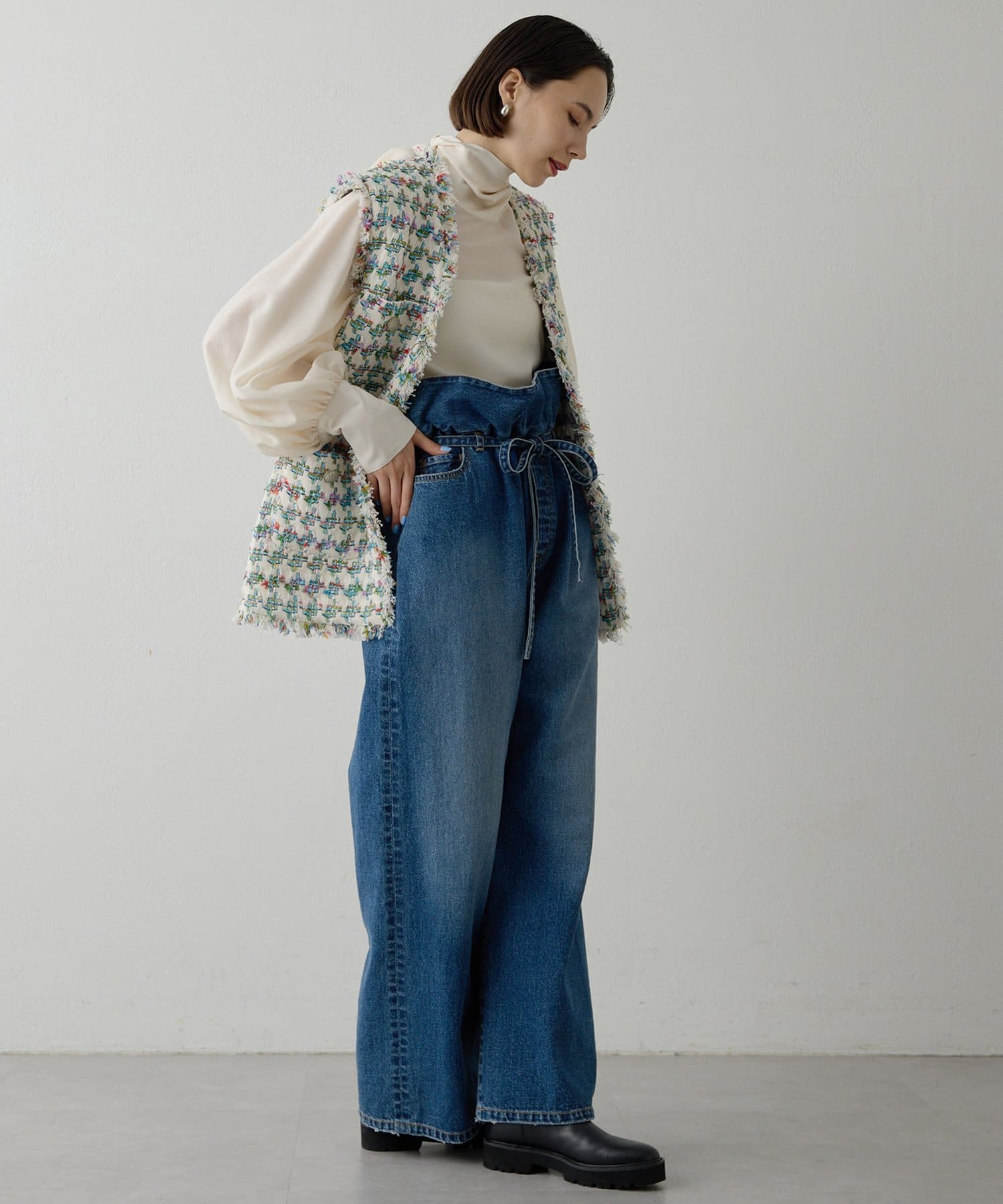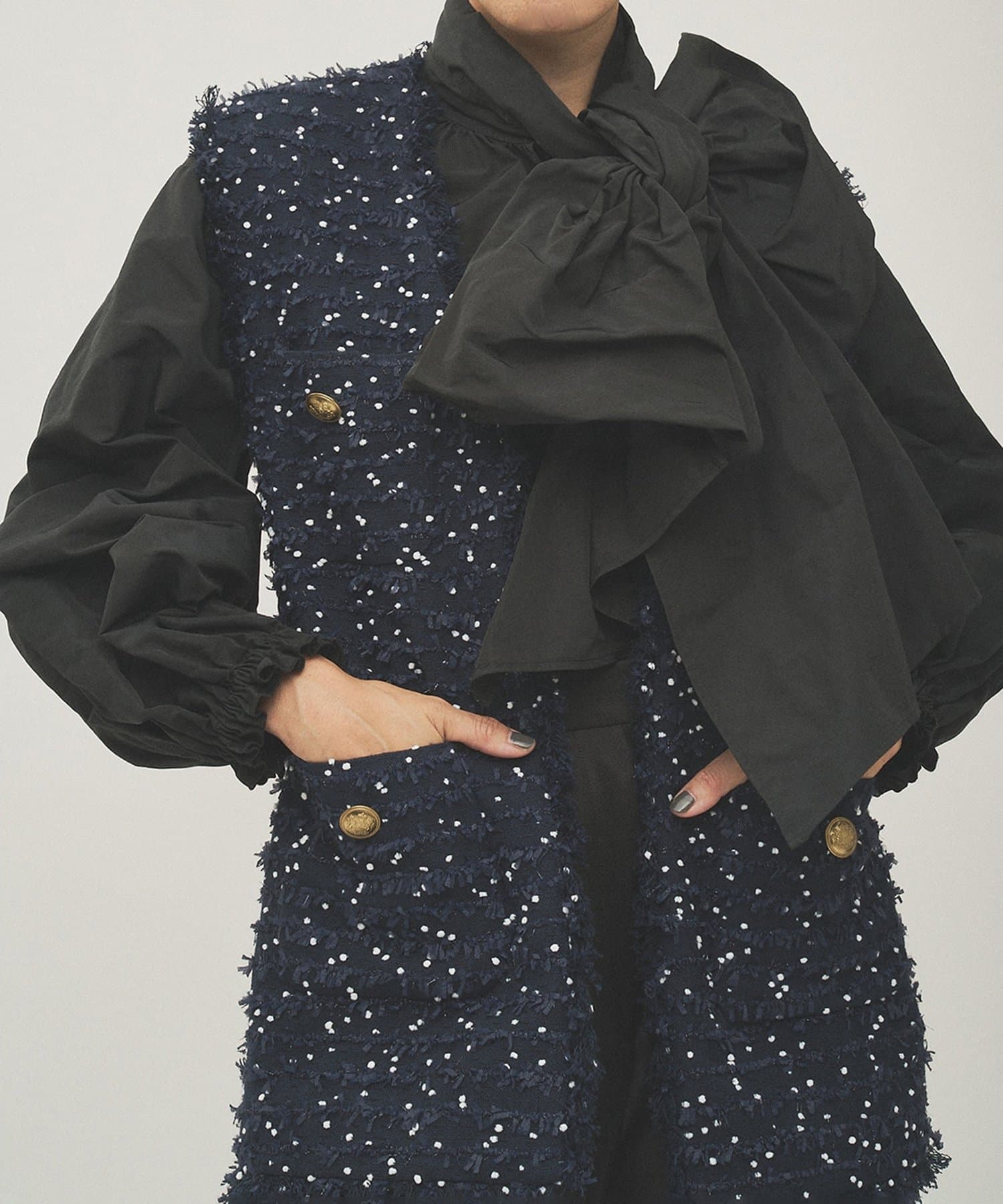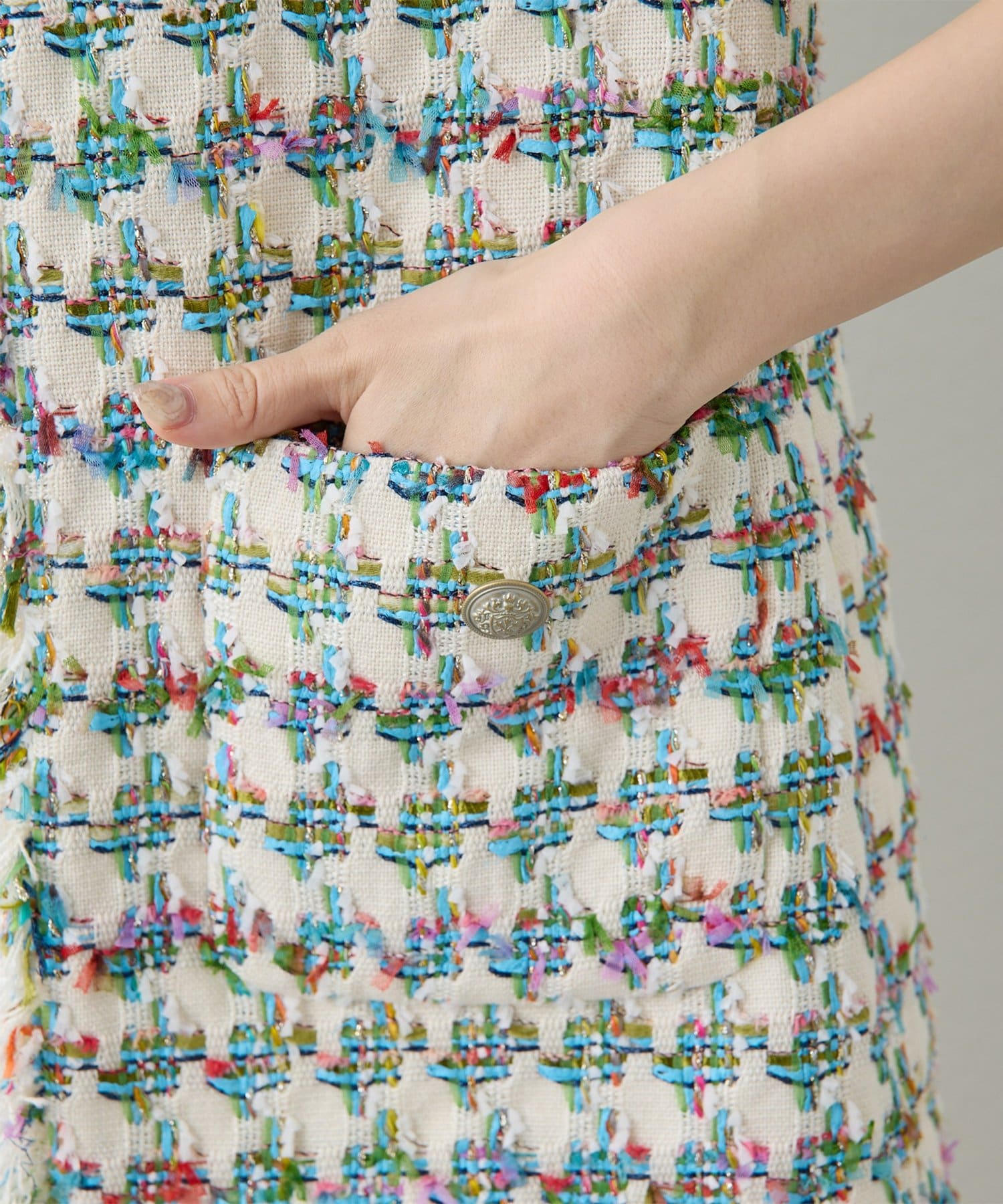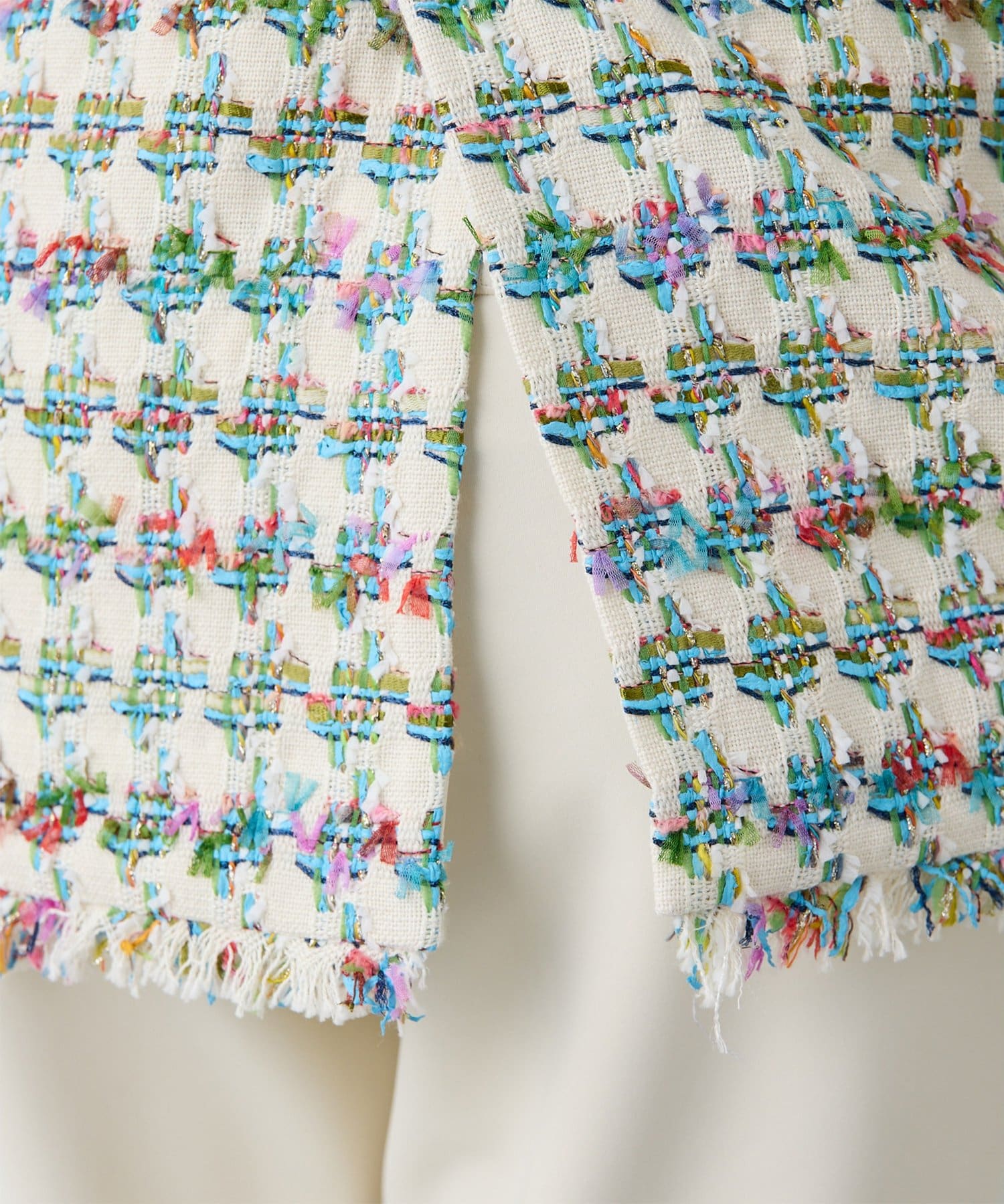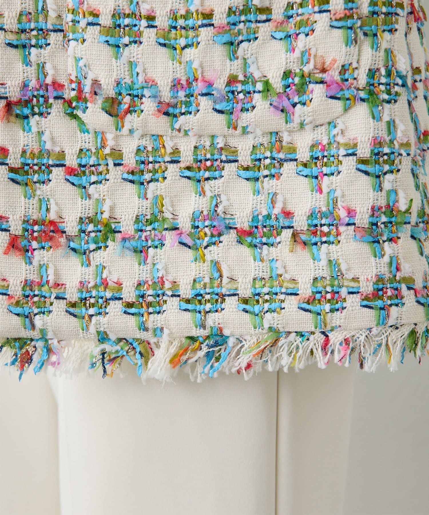 ■イギリスの老舗LINTON社の高品質なファンシーツイードでデザインされたジレ。