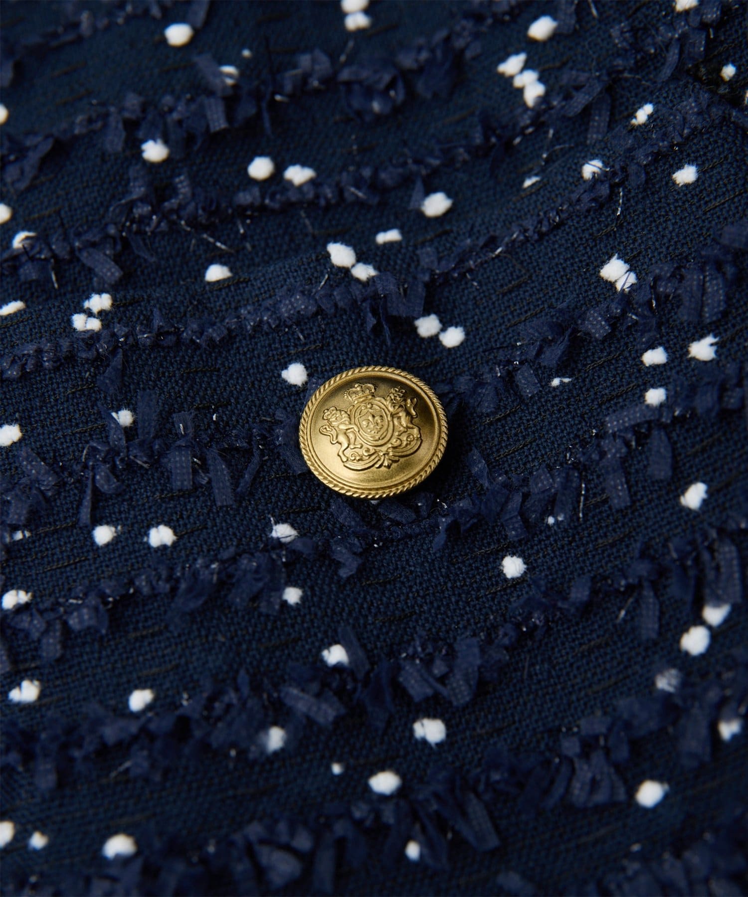 ■それぞれのカラーに合わせた金ボタンをアクセントに、前立て~裾のフリンジが柔らかな動きを演出。