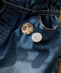 ■遊び心のあるロゴとオリジナルのレオパード柄を使用した缶バッジ。