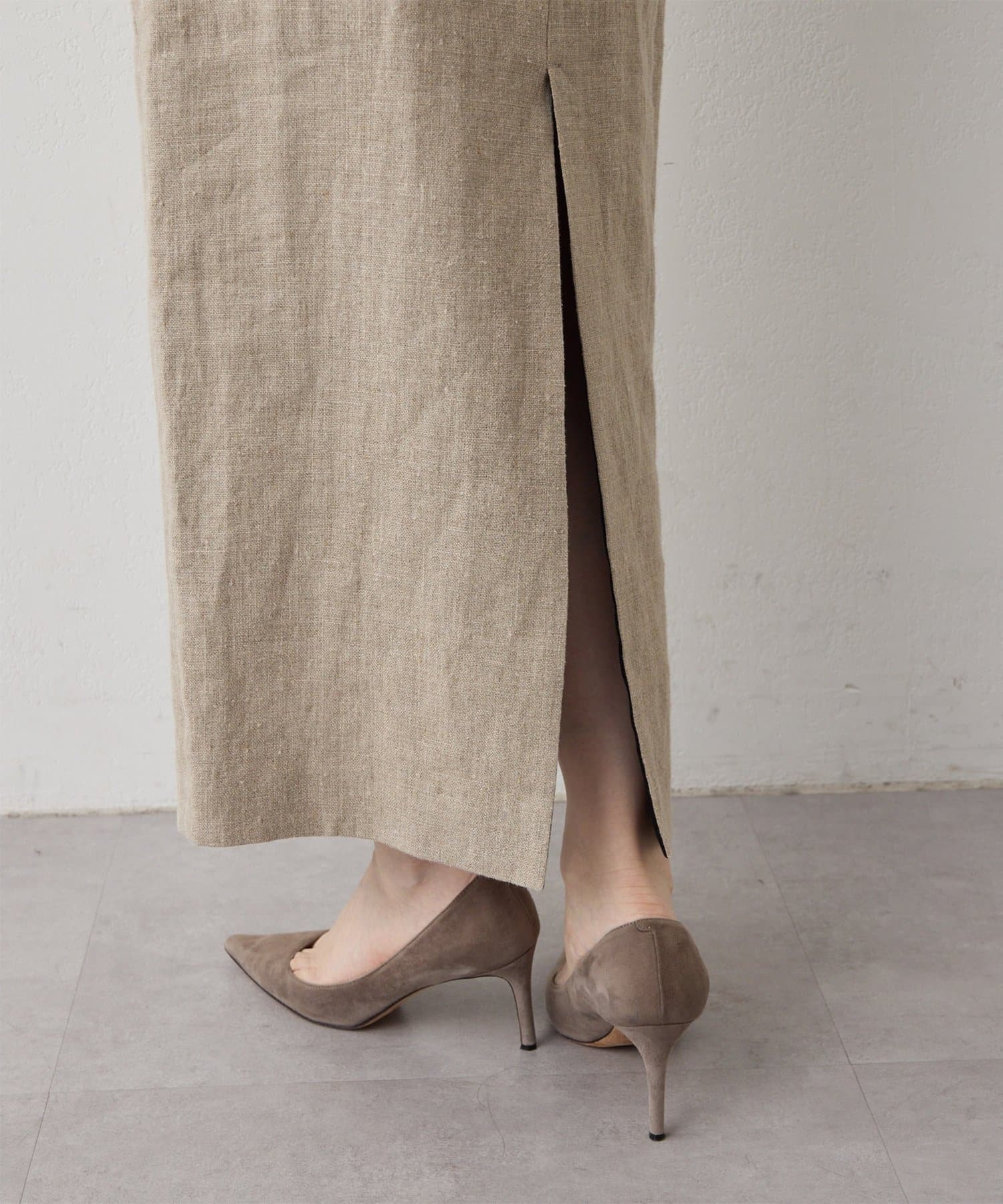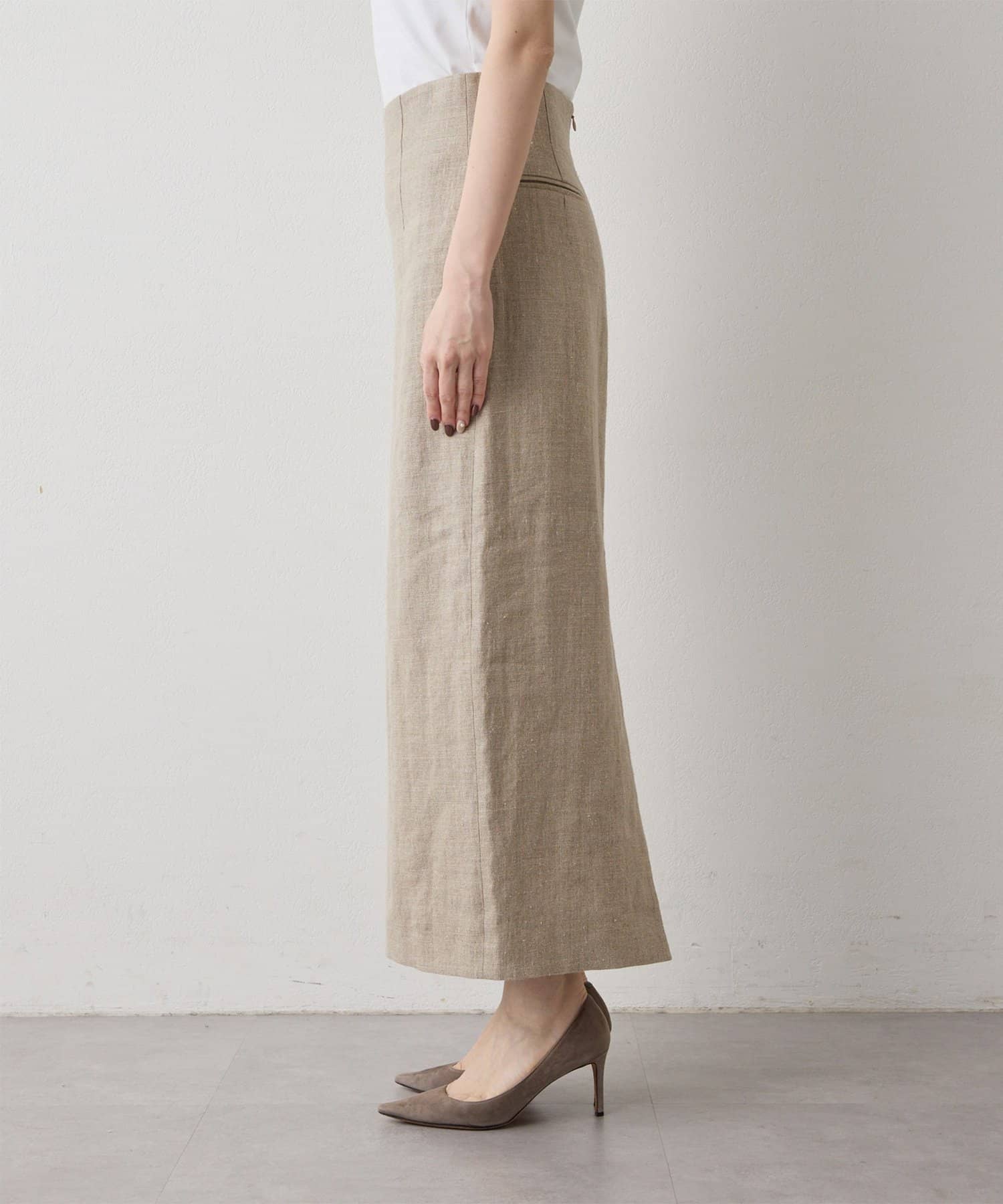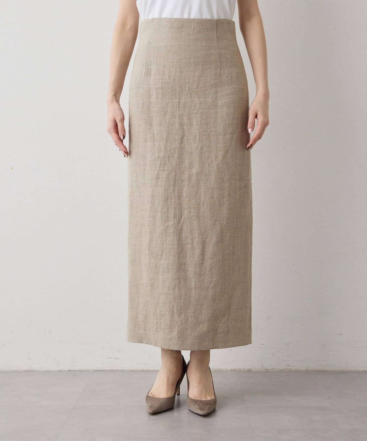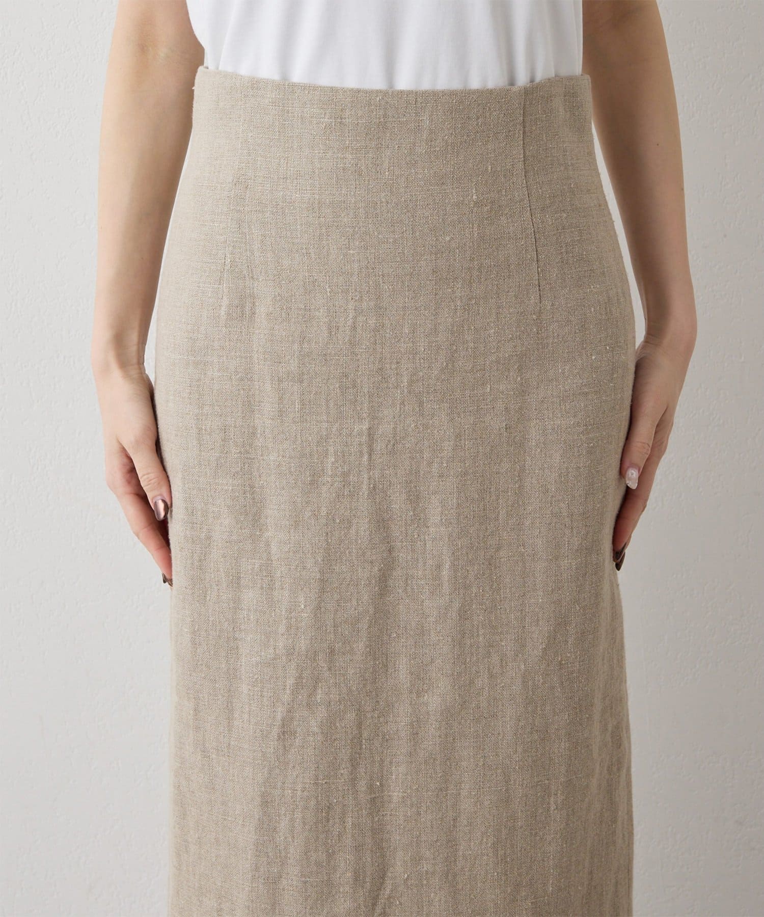 ■リネン素材ならではの清涼感とナチュラルな表情が魅力のタイトスカート。