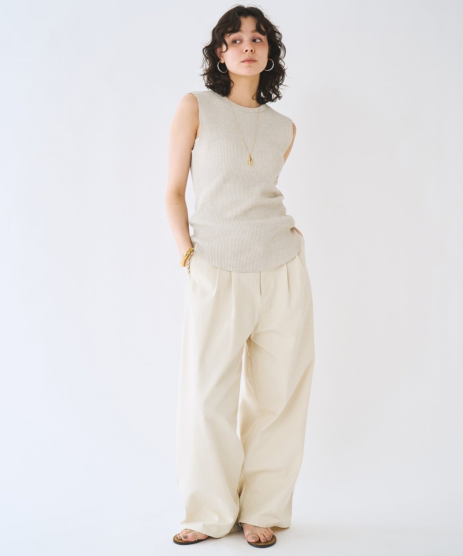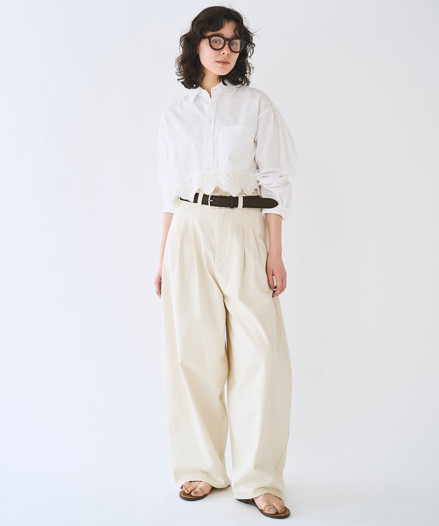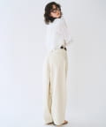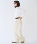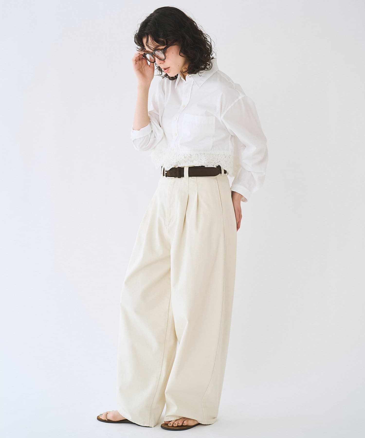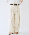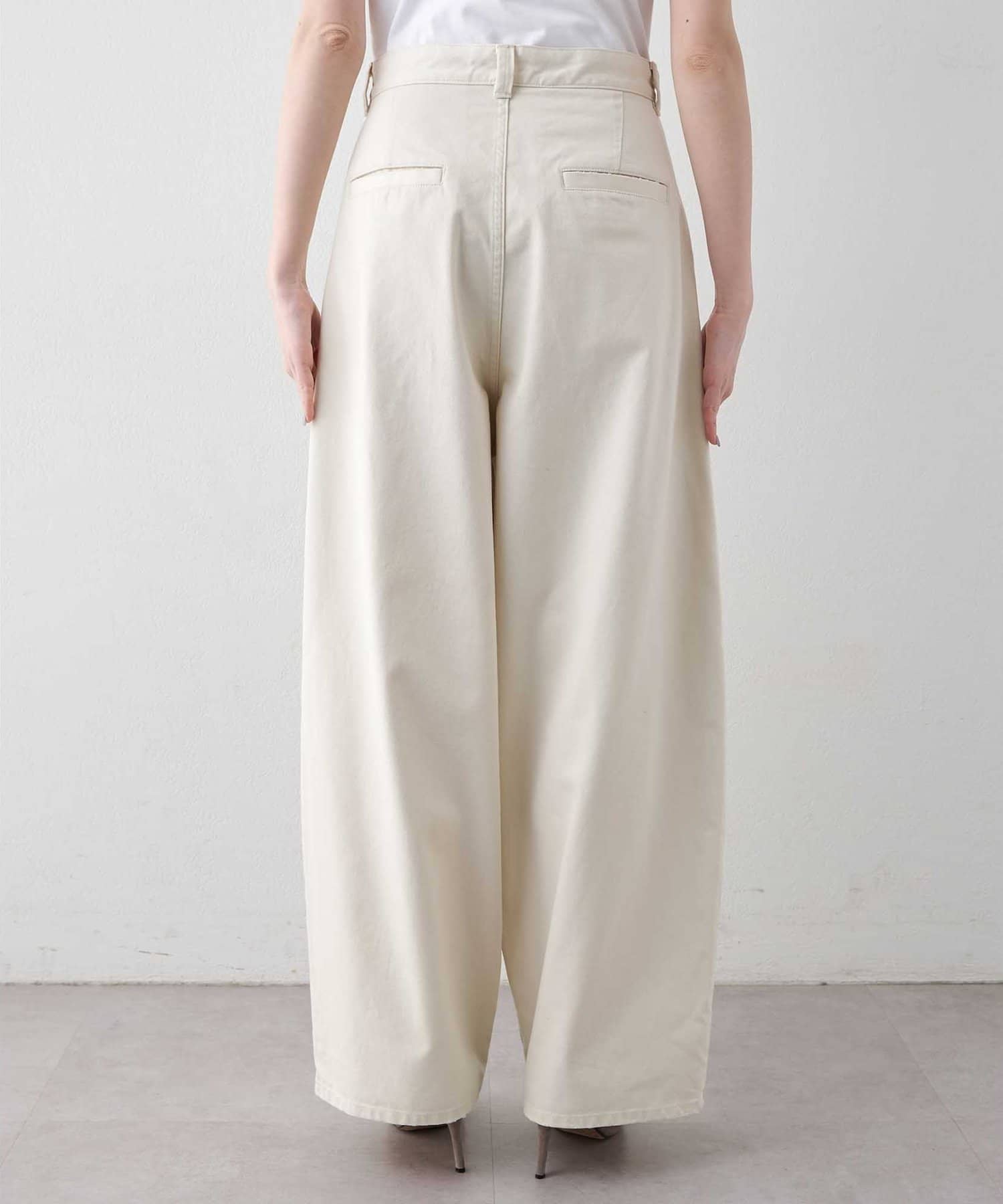 ■フロントに施したタックが立体感を生むチノ素材のワイドパンツ。