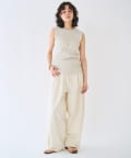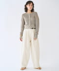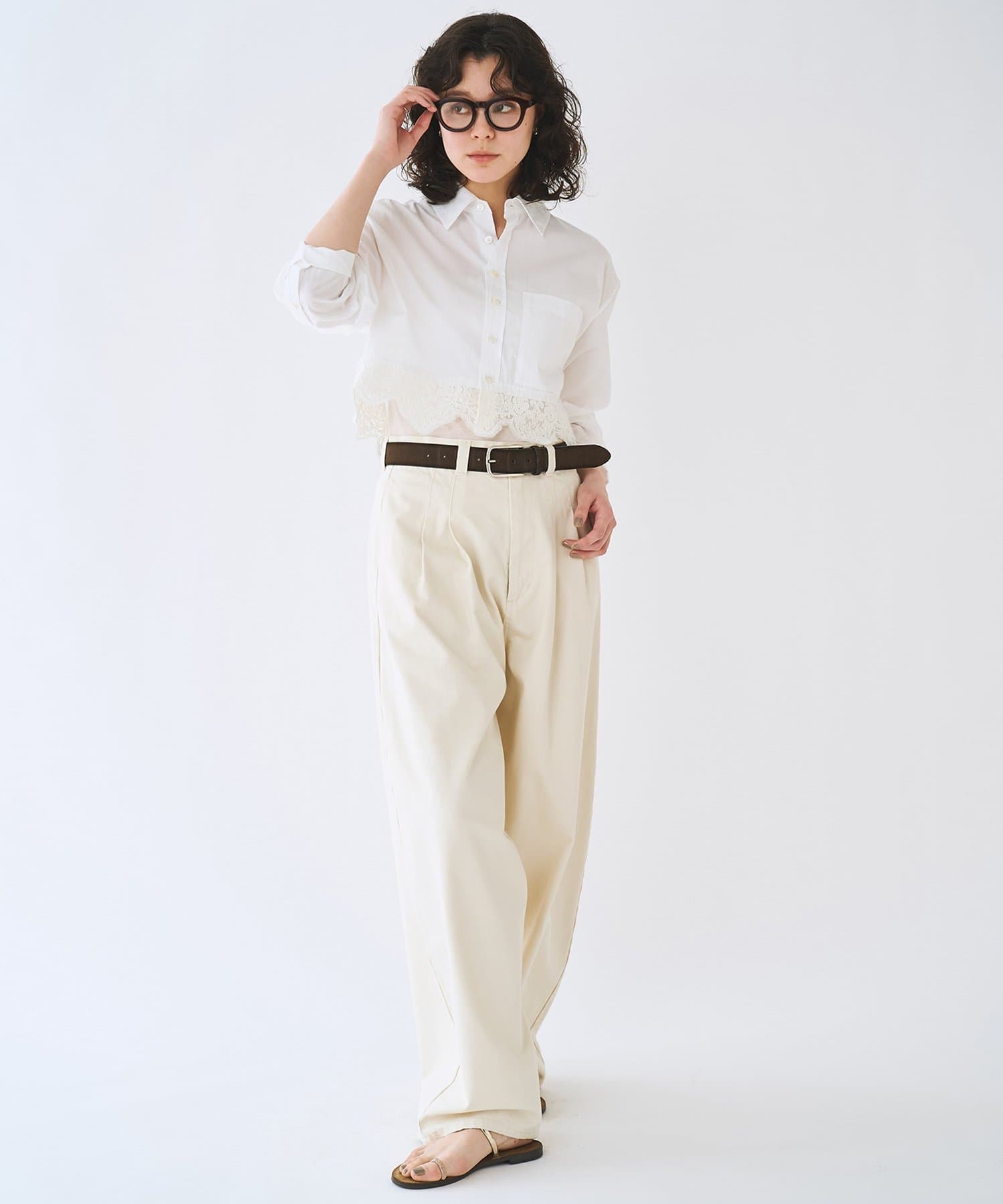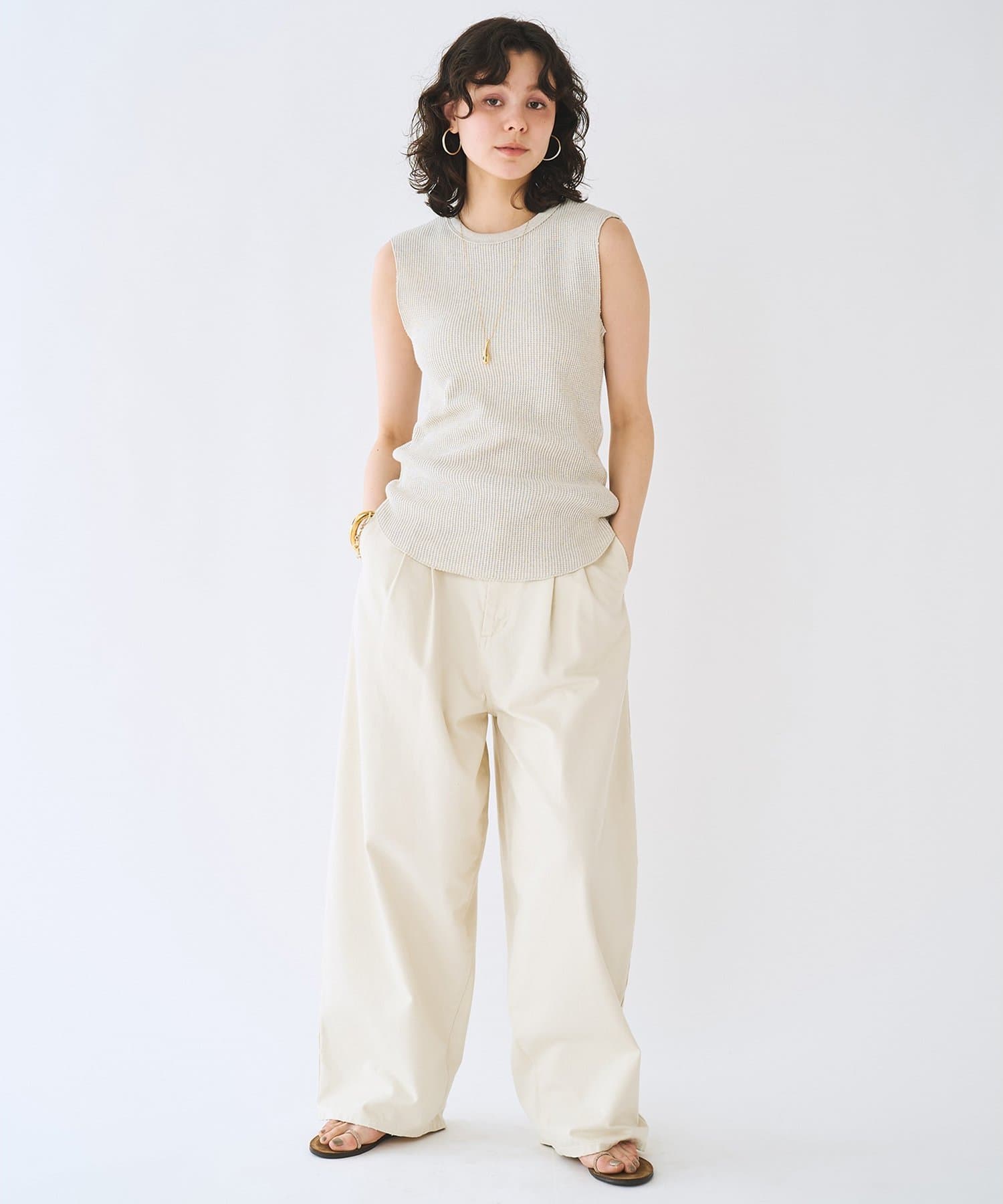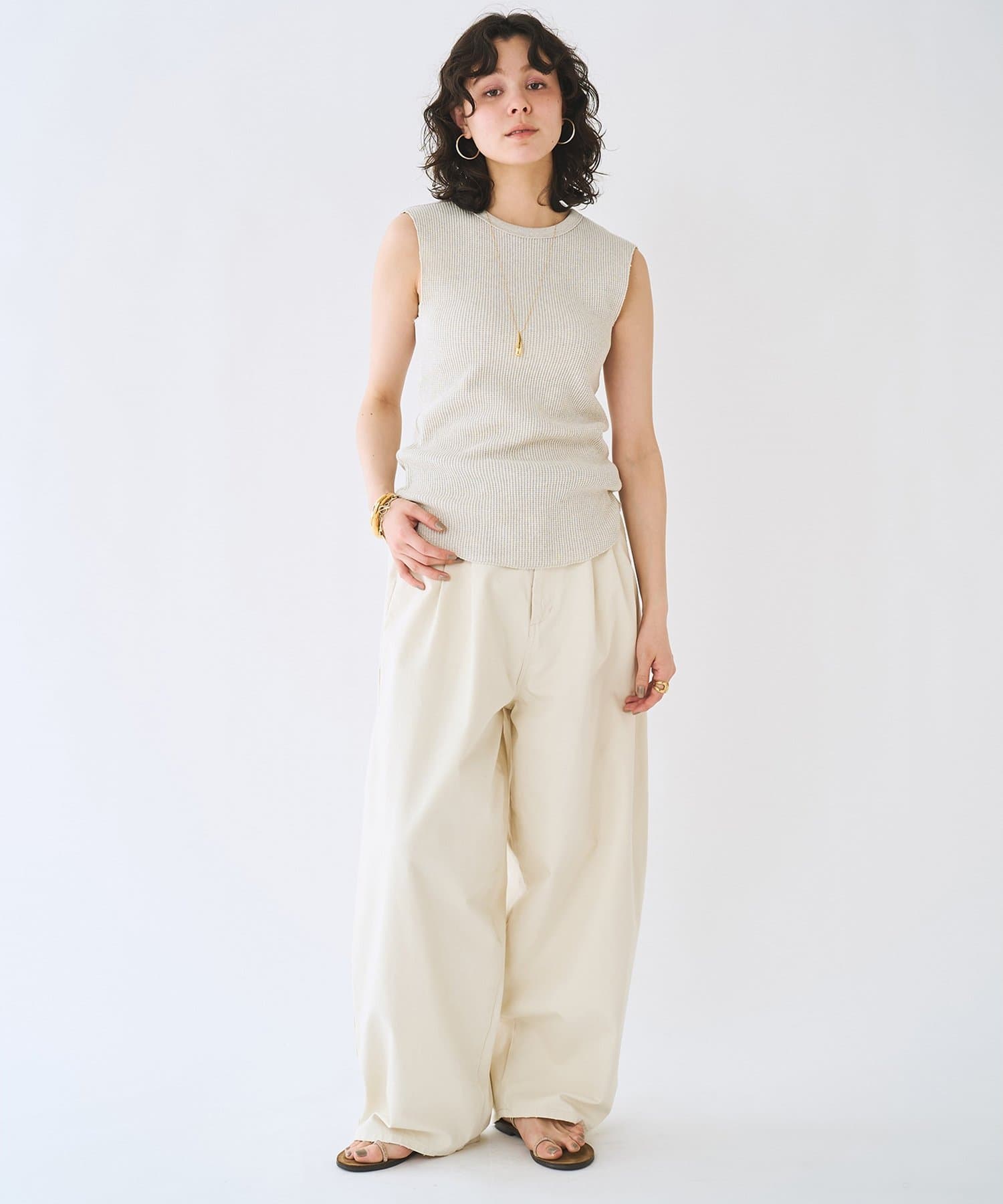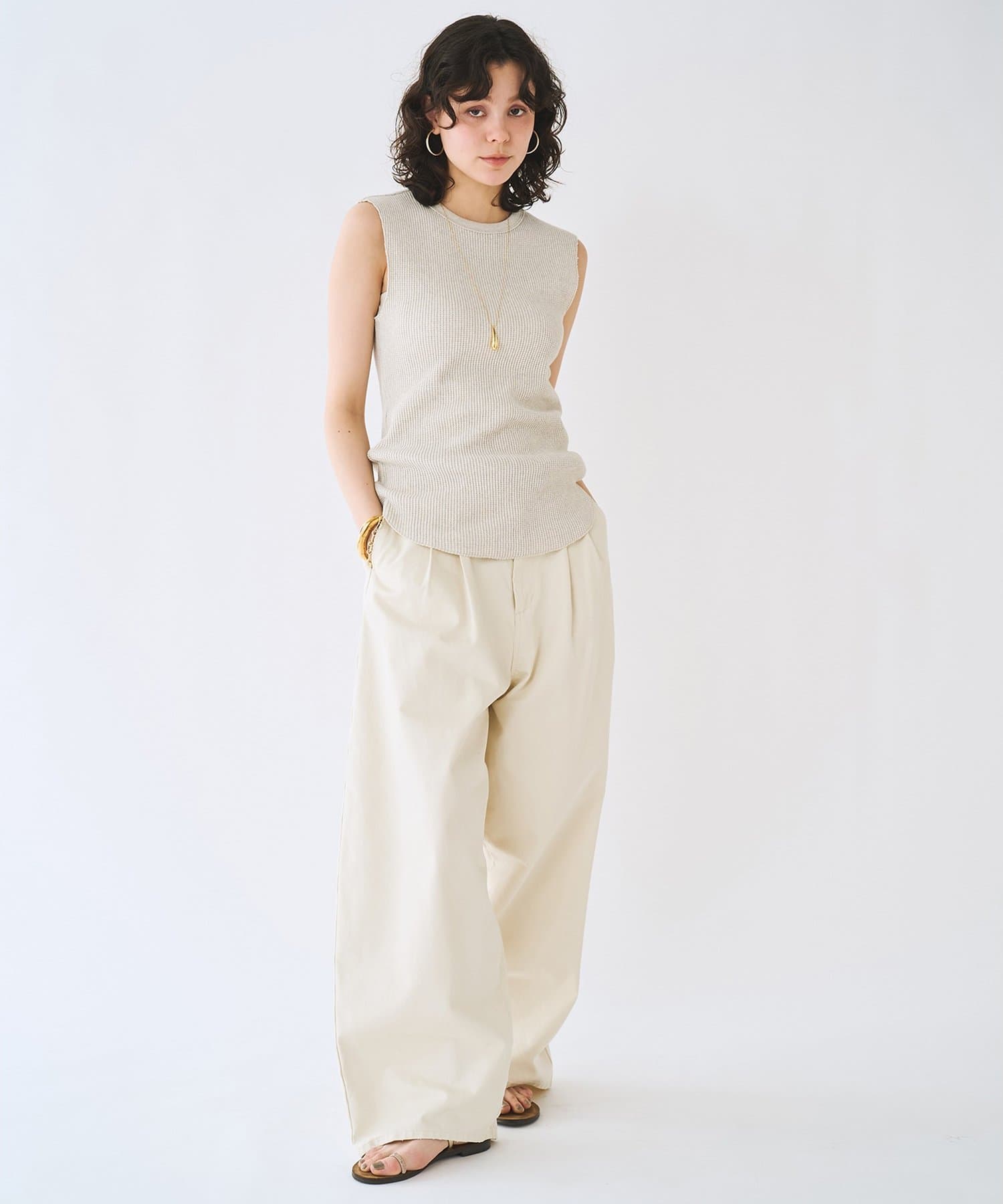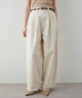 ■フロントに施したタックが立体感を生むチノ素材のワイドパンツ。