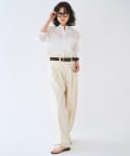 ■程よいハリ感のある生地がシルエットを美しく保ち、カジュアルになりすぎず大人のスタイリングに馴染む一本。
