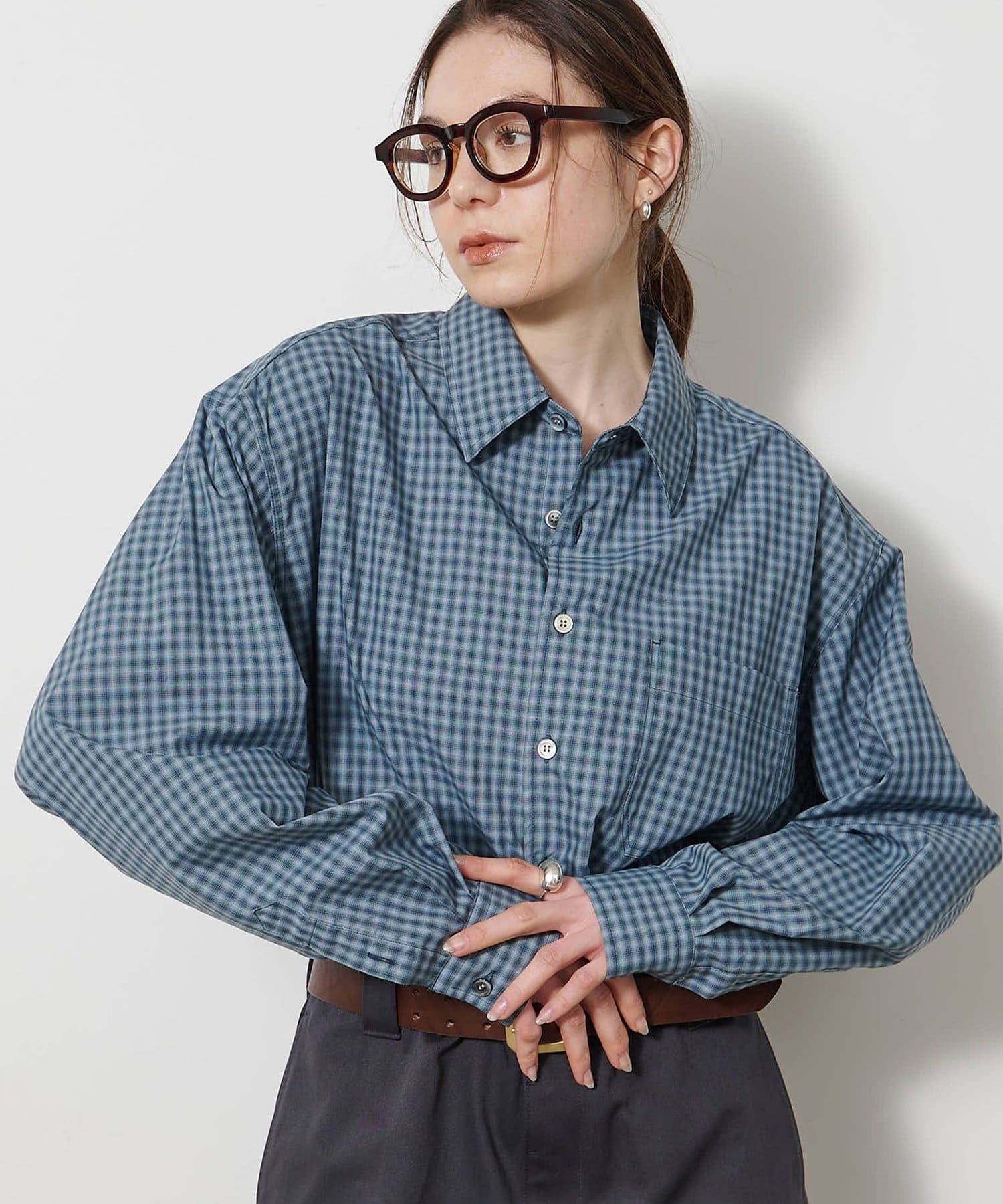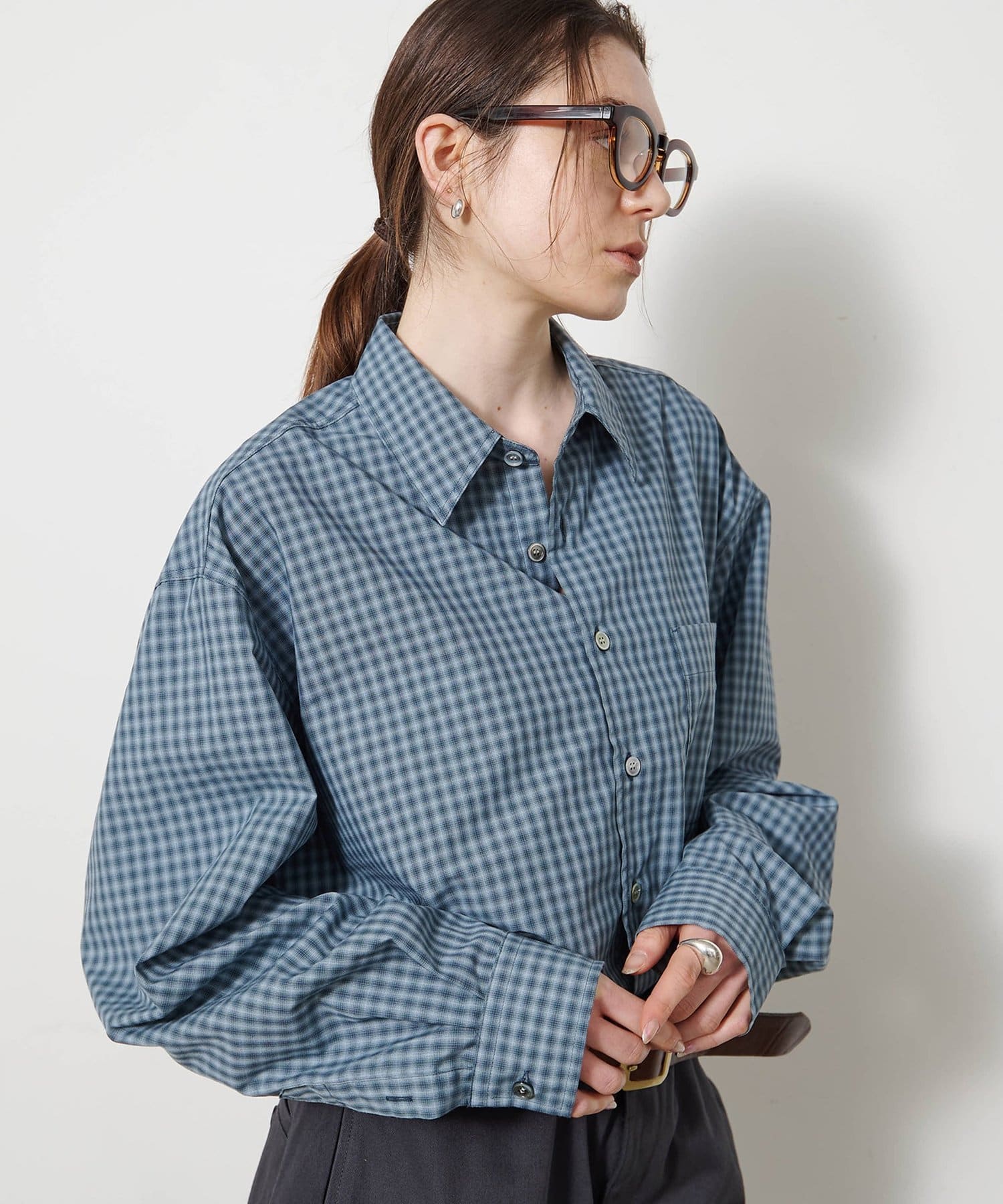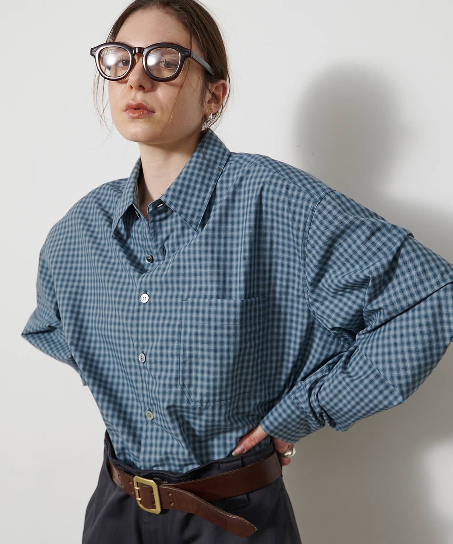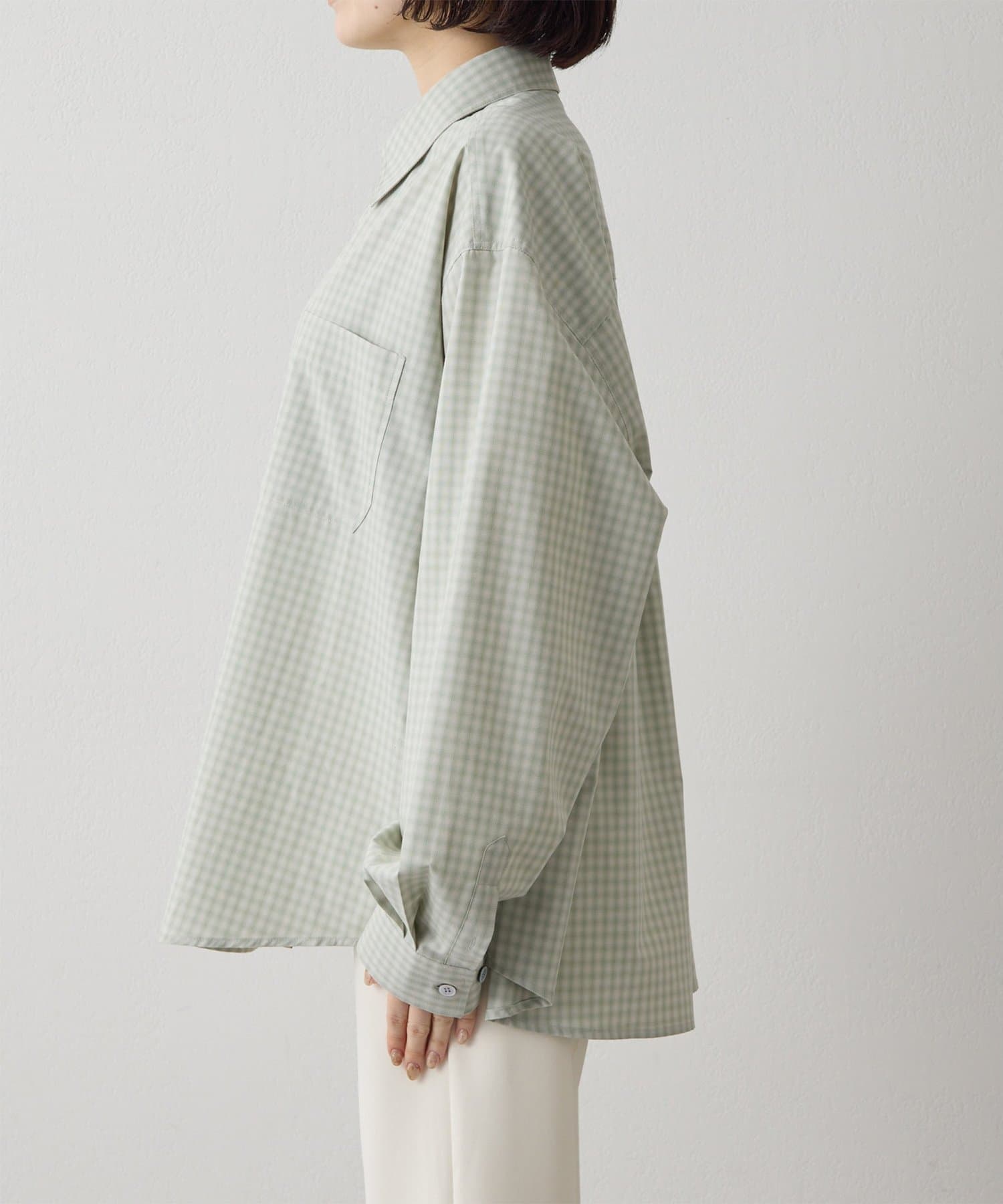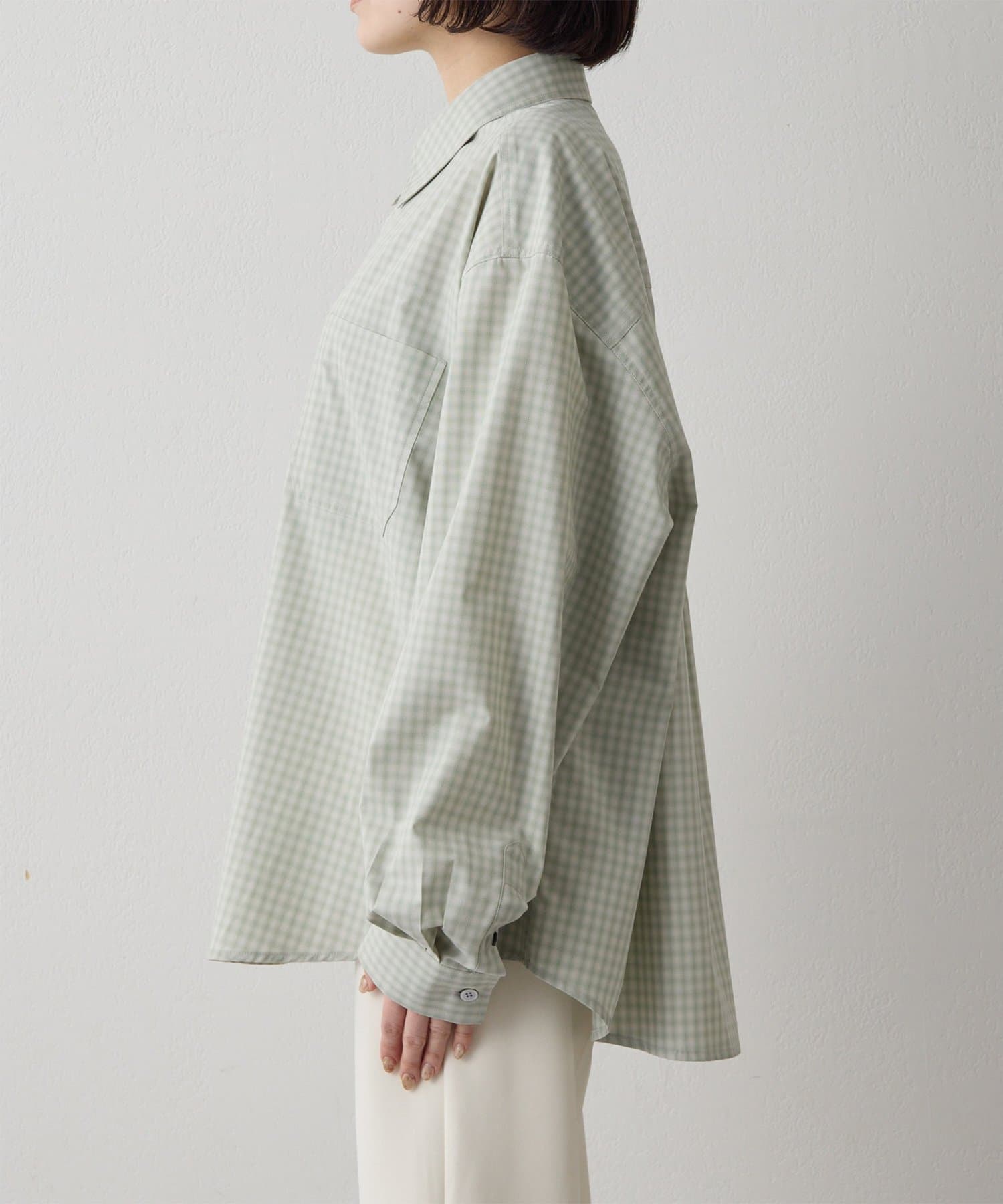 ■オンブレチェック生地を使用したオーバーシャツ。