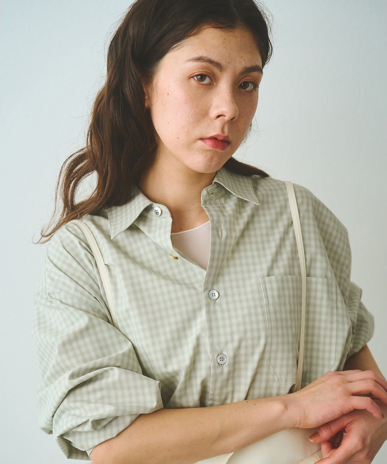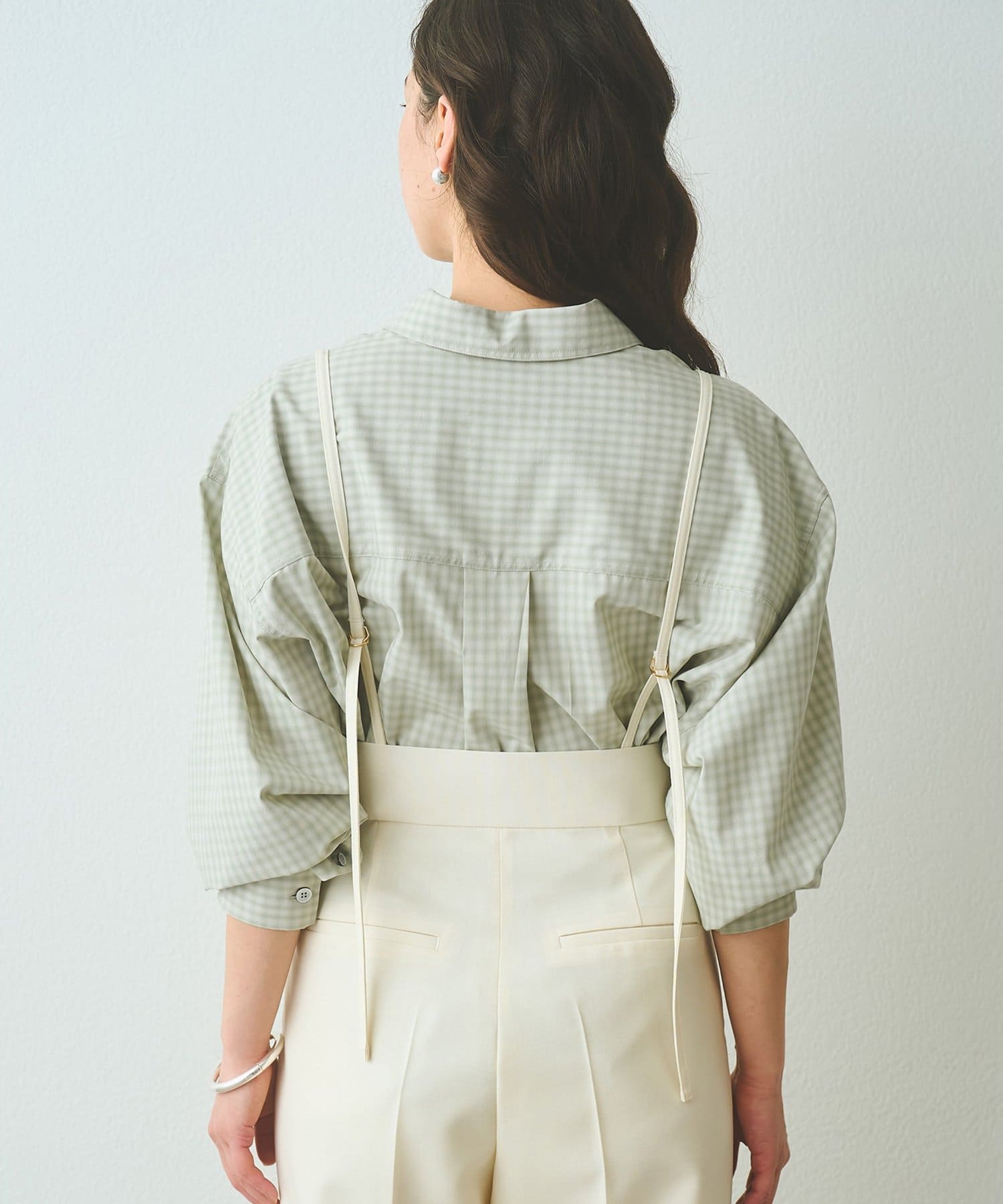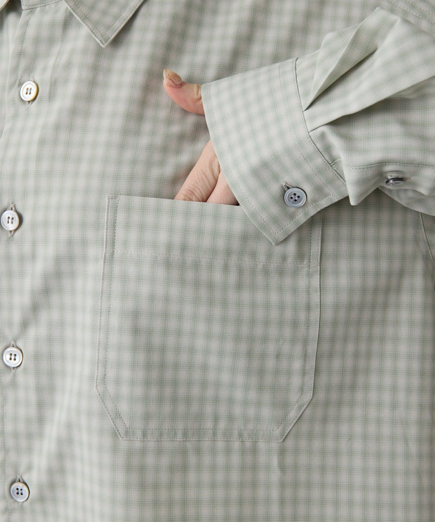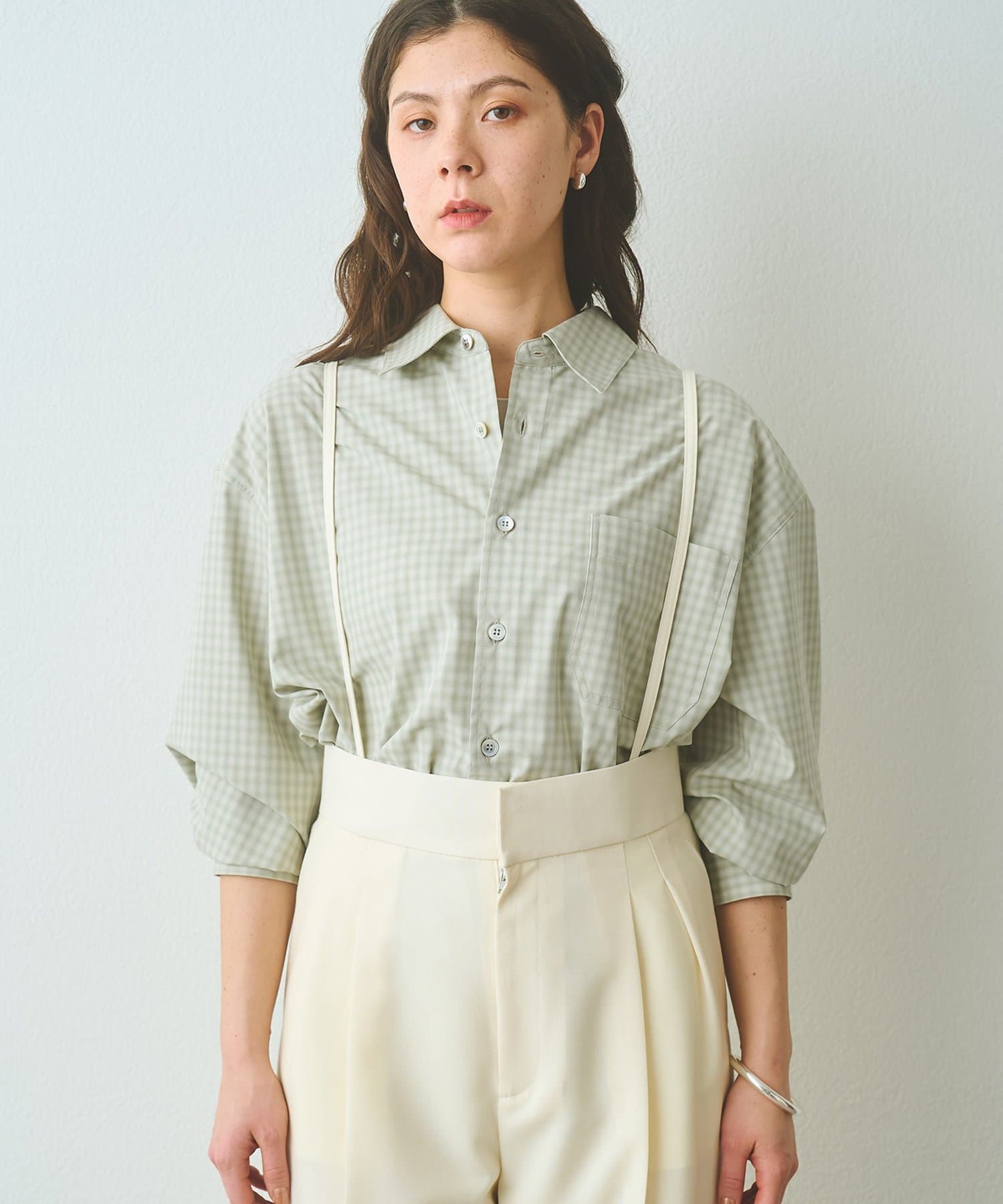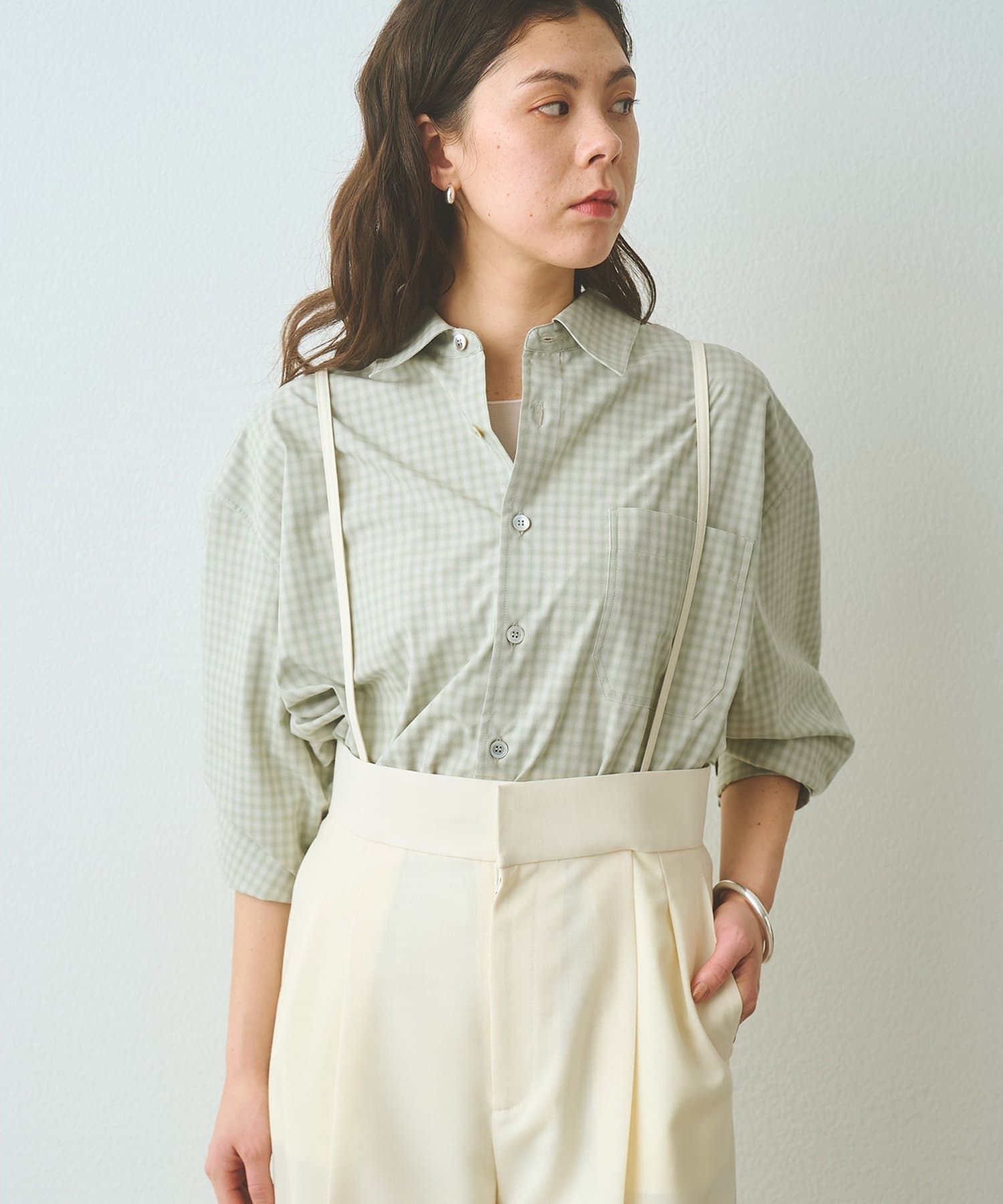 ■オンブレチェック生地を使用したオーバーシャツ。