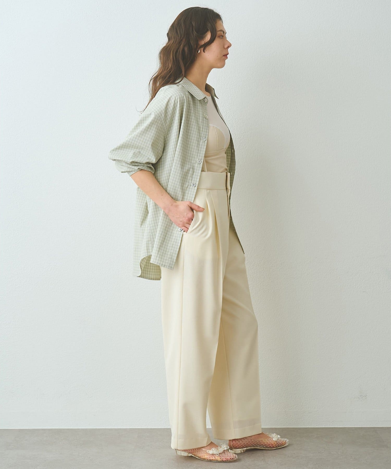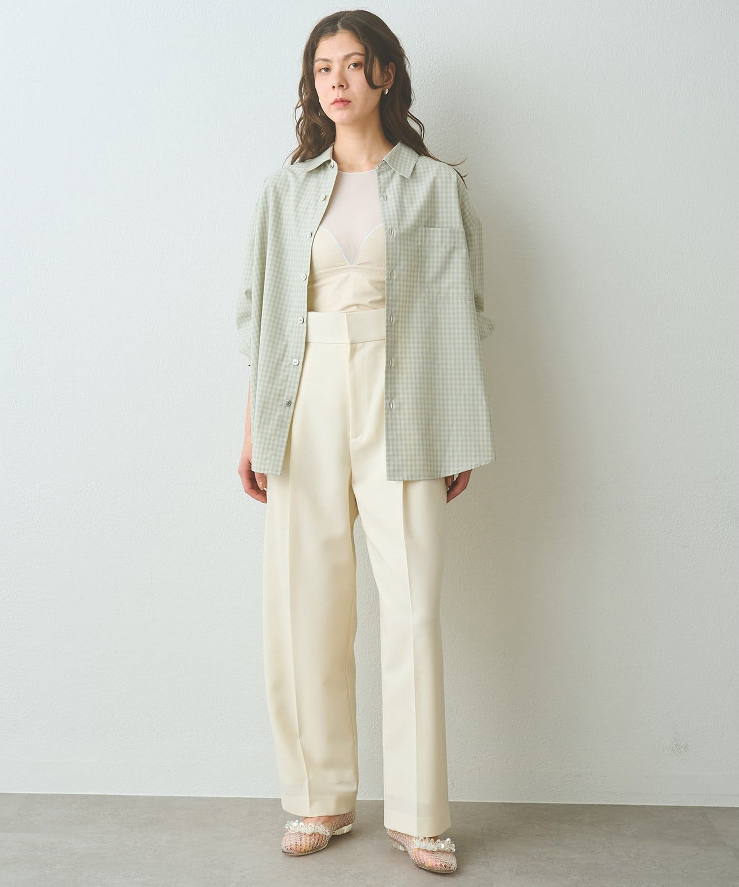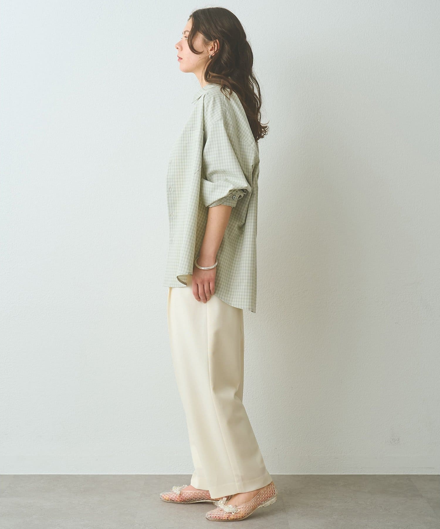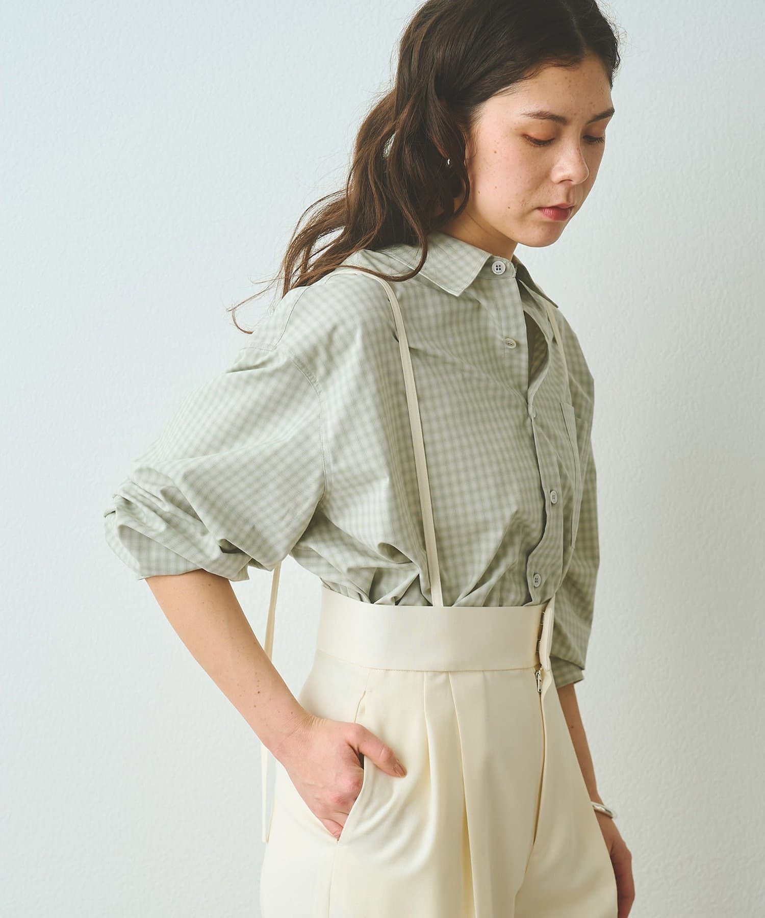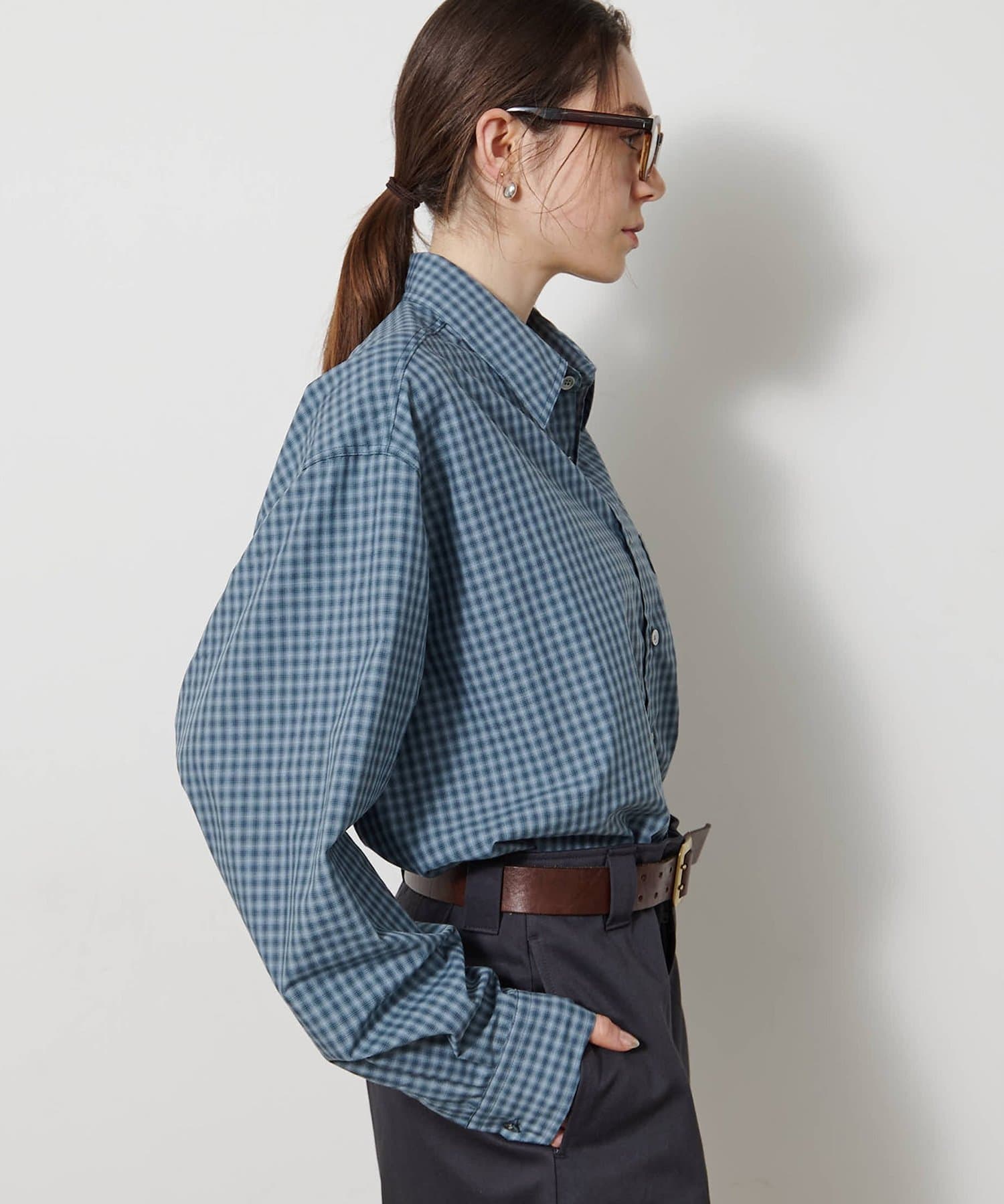 ■オンブレチェック生地を使用したオーバーシャツ。
