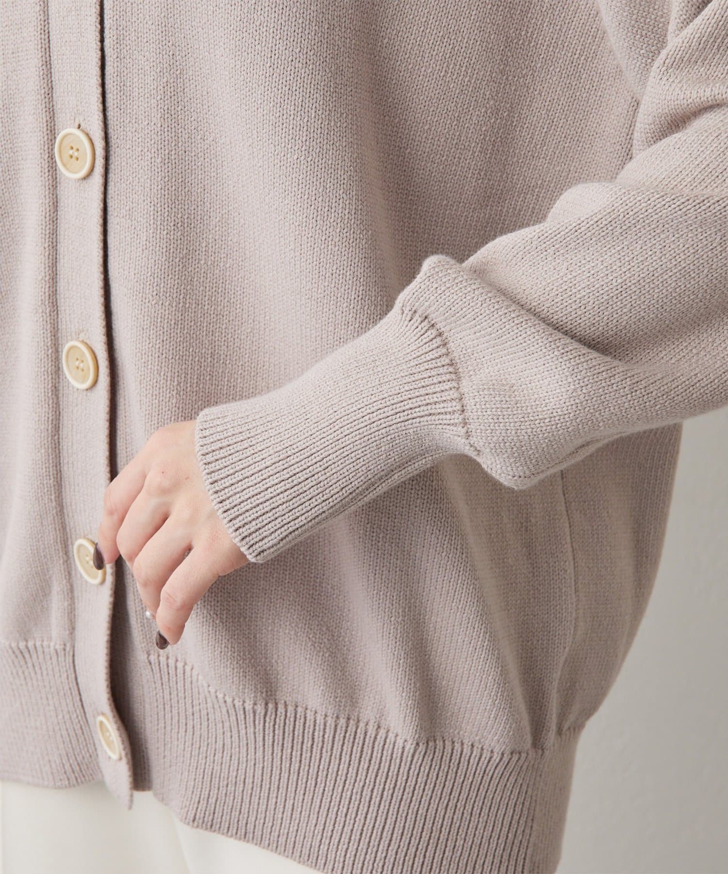 ■大きめのボタンがアクセントになったニットカーディガン。