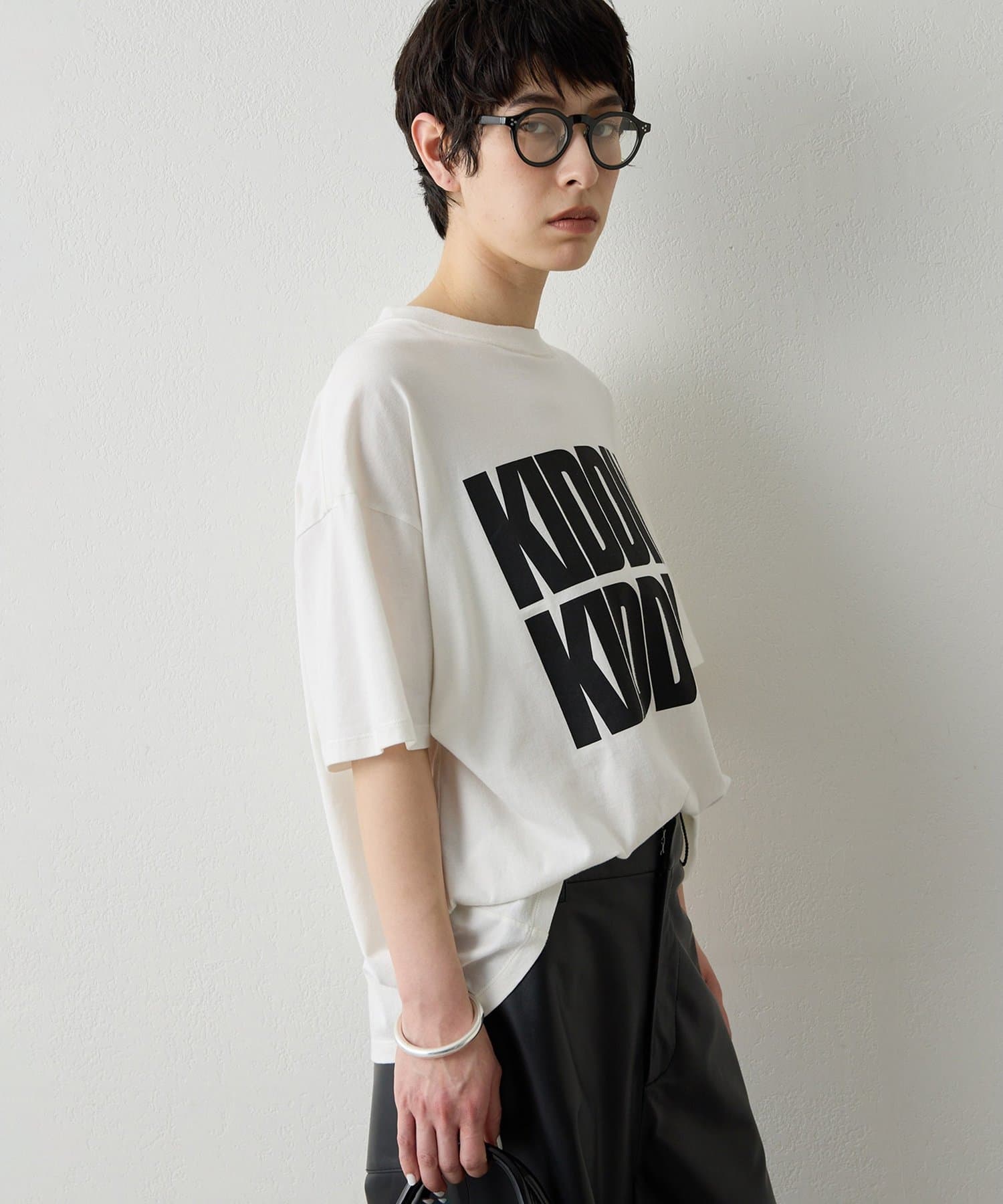 大きめロゴがアクセントになる、大人のプリントTシャツ