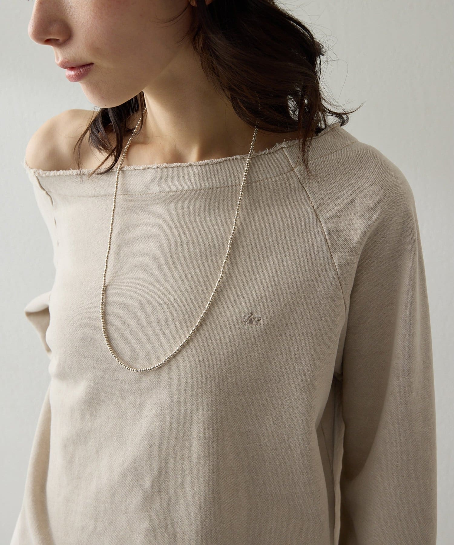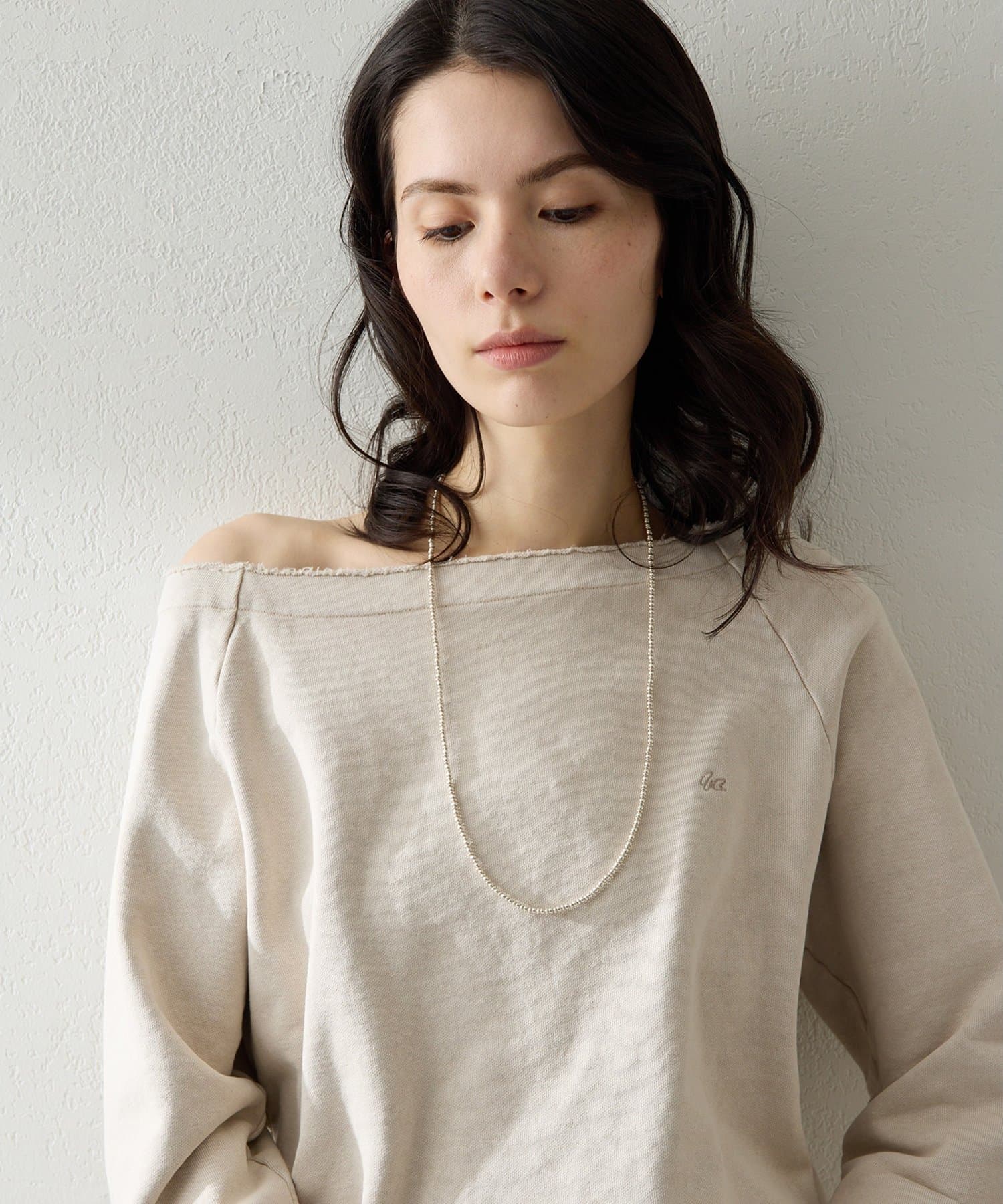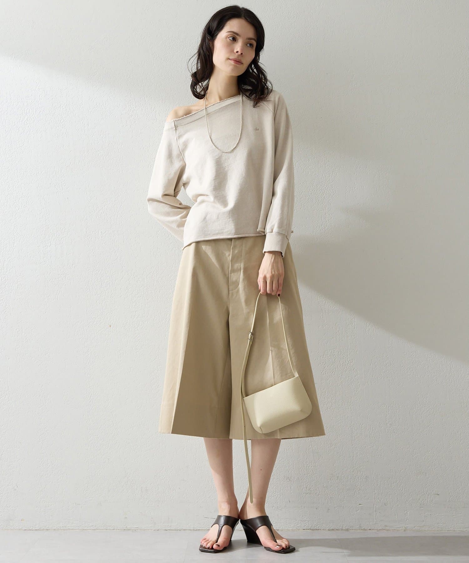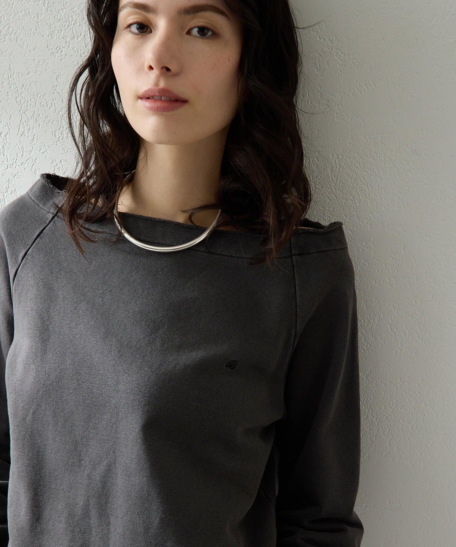 ■程よくラフな表情と、女性らしいデコルテラインを引き立てるオフショルデザインが絶妙なバランス。