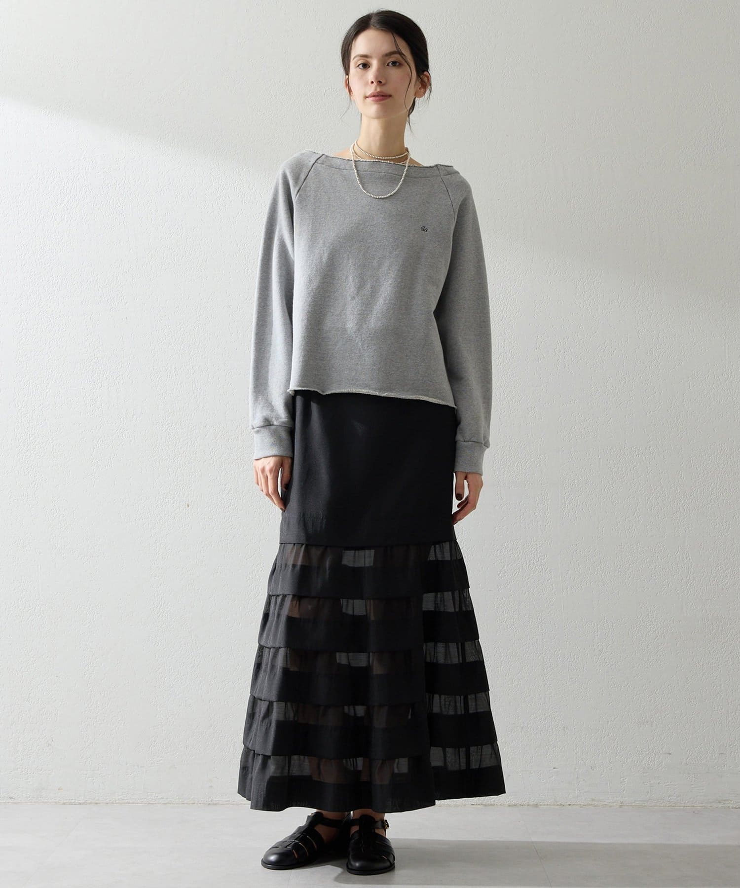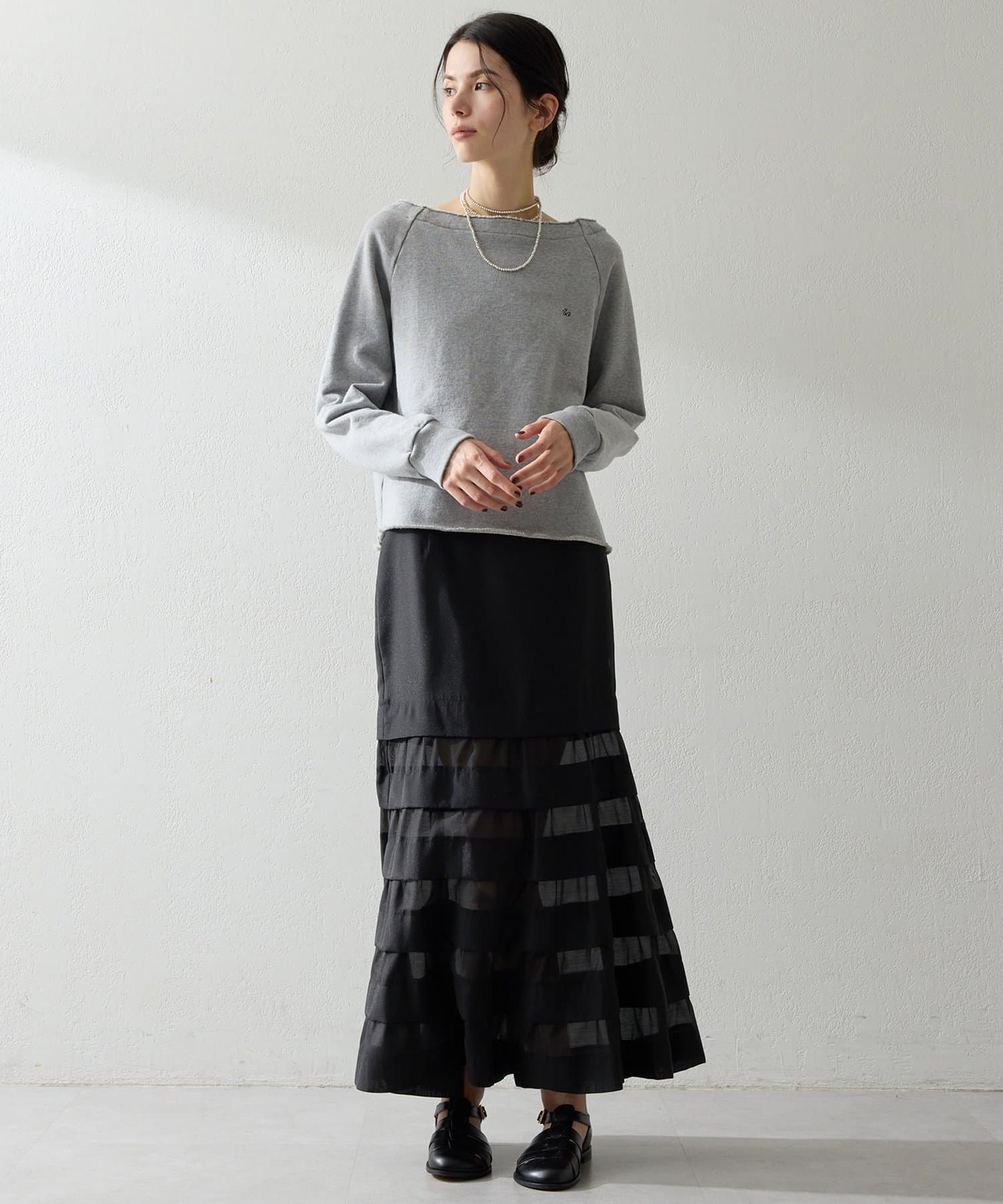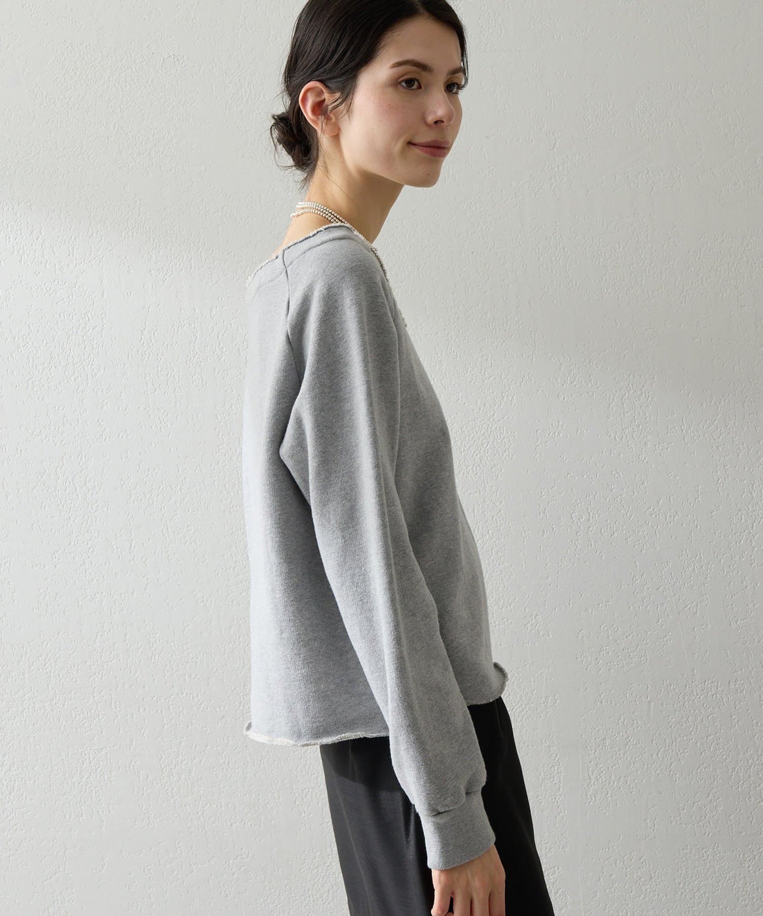 ■カジュアルになりがちなスウェットを女性らしく仕上げた一枚。