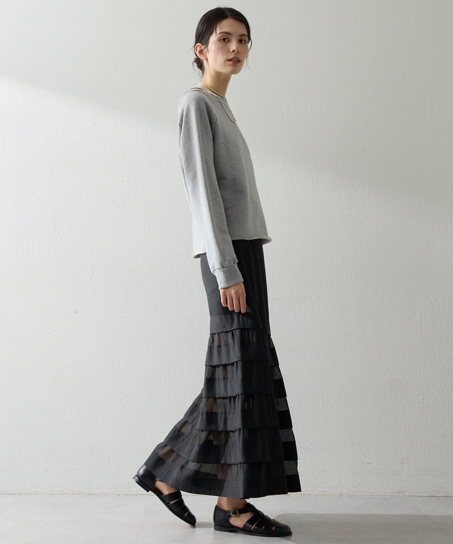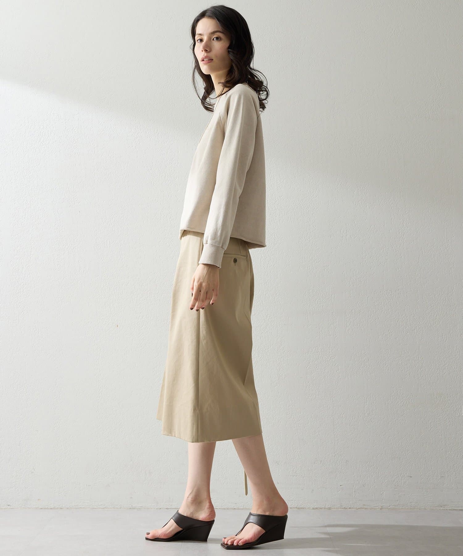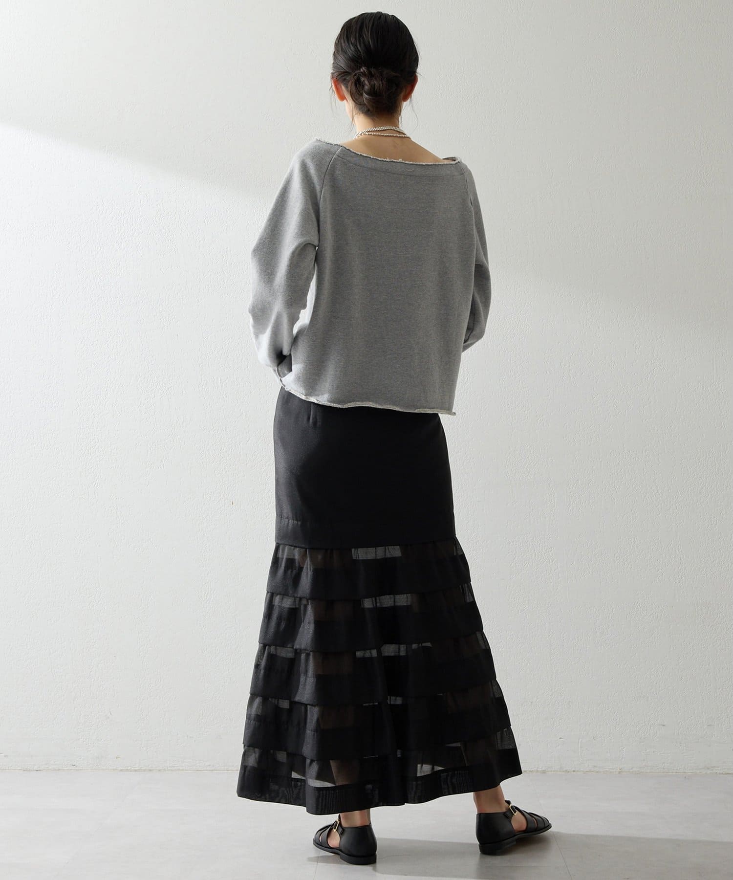 ■カジュアルになりがちなスウェットを女性らしく仕上げた一枚。