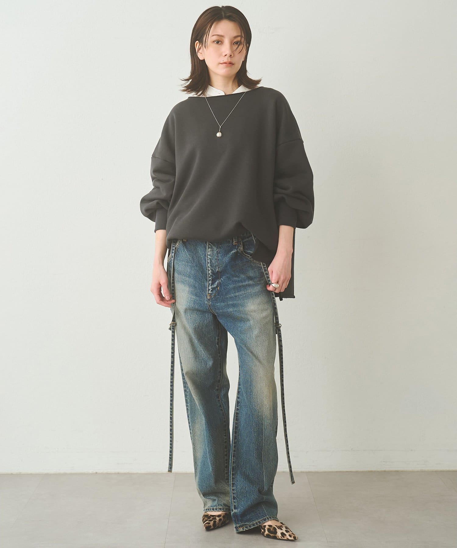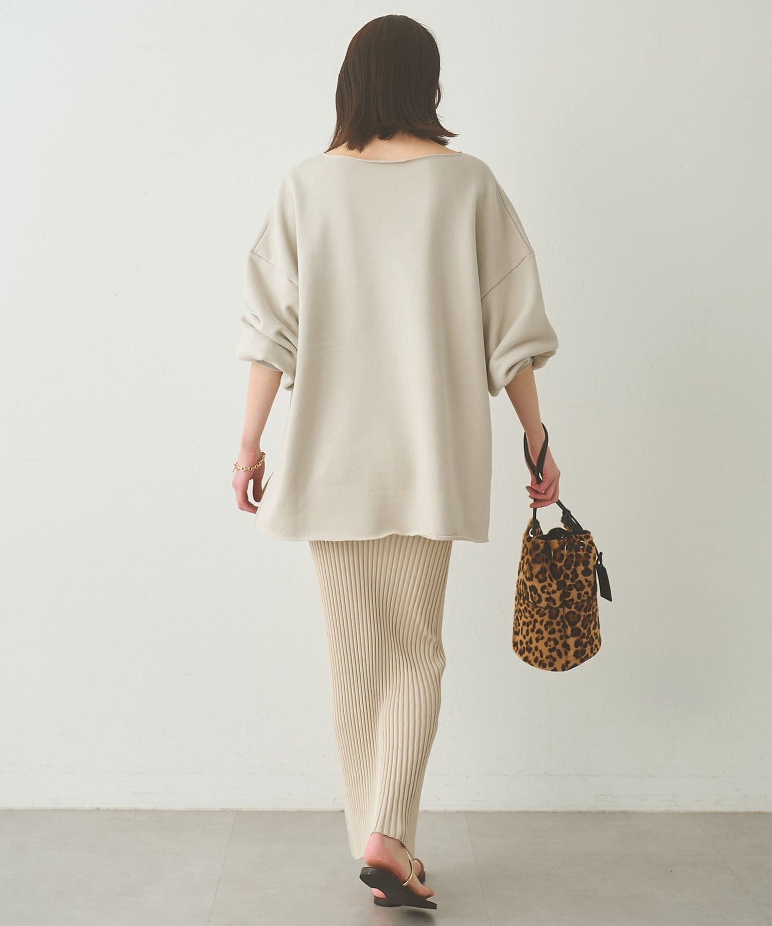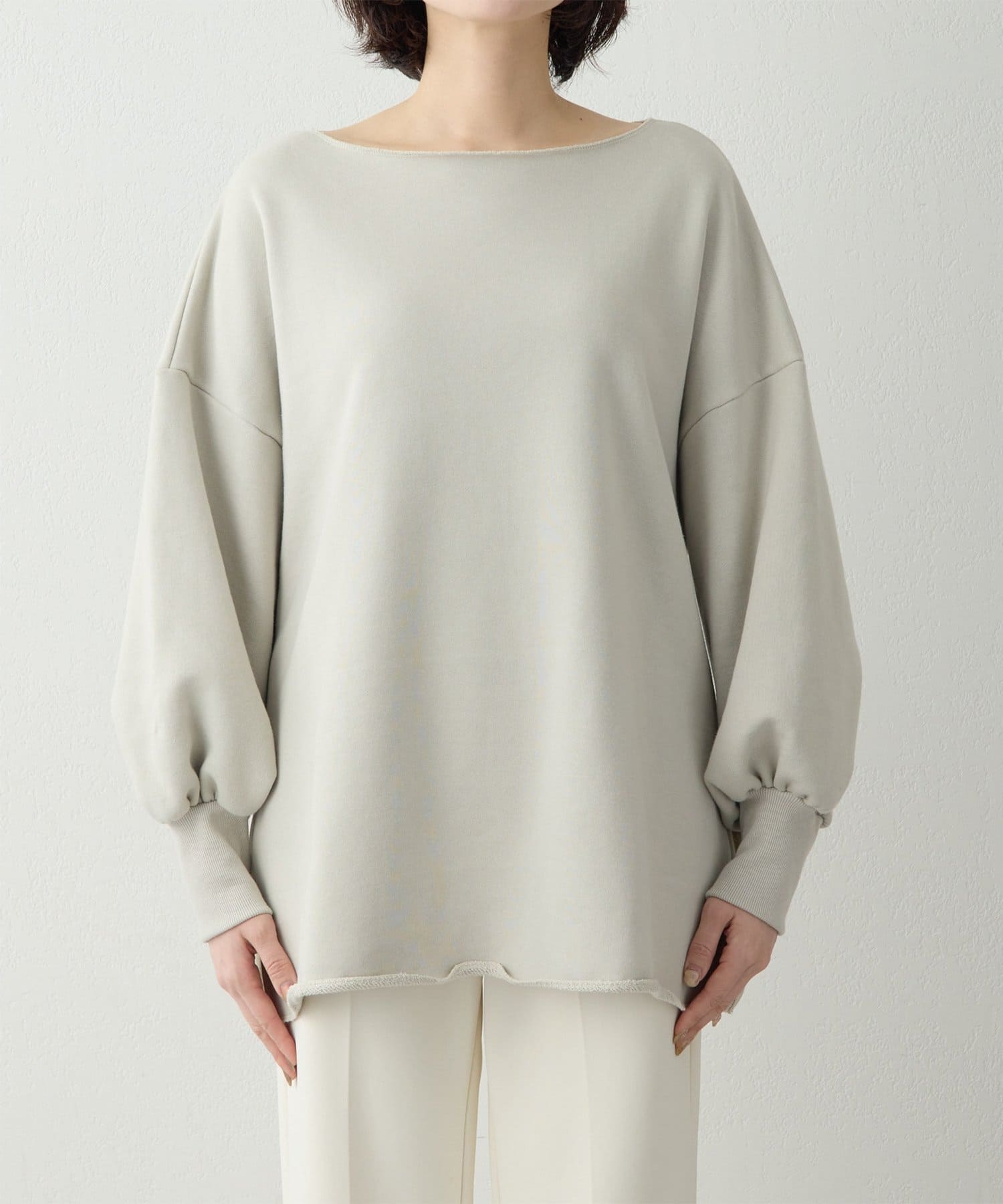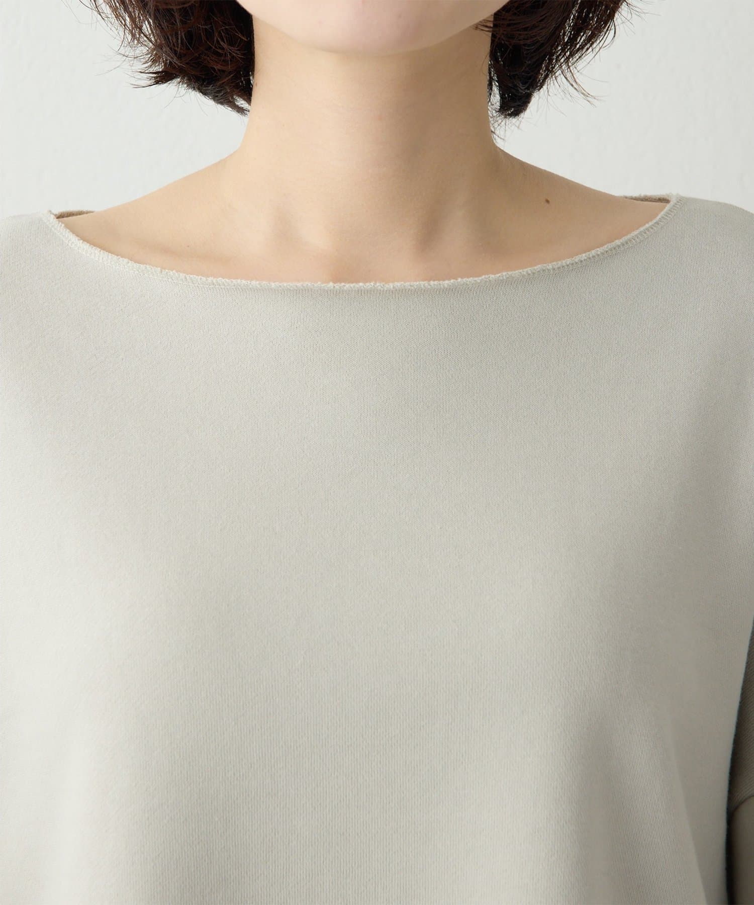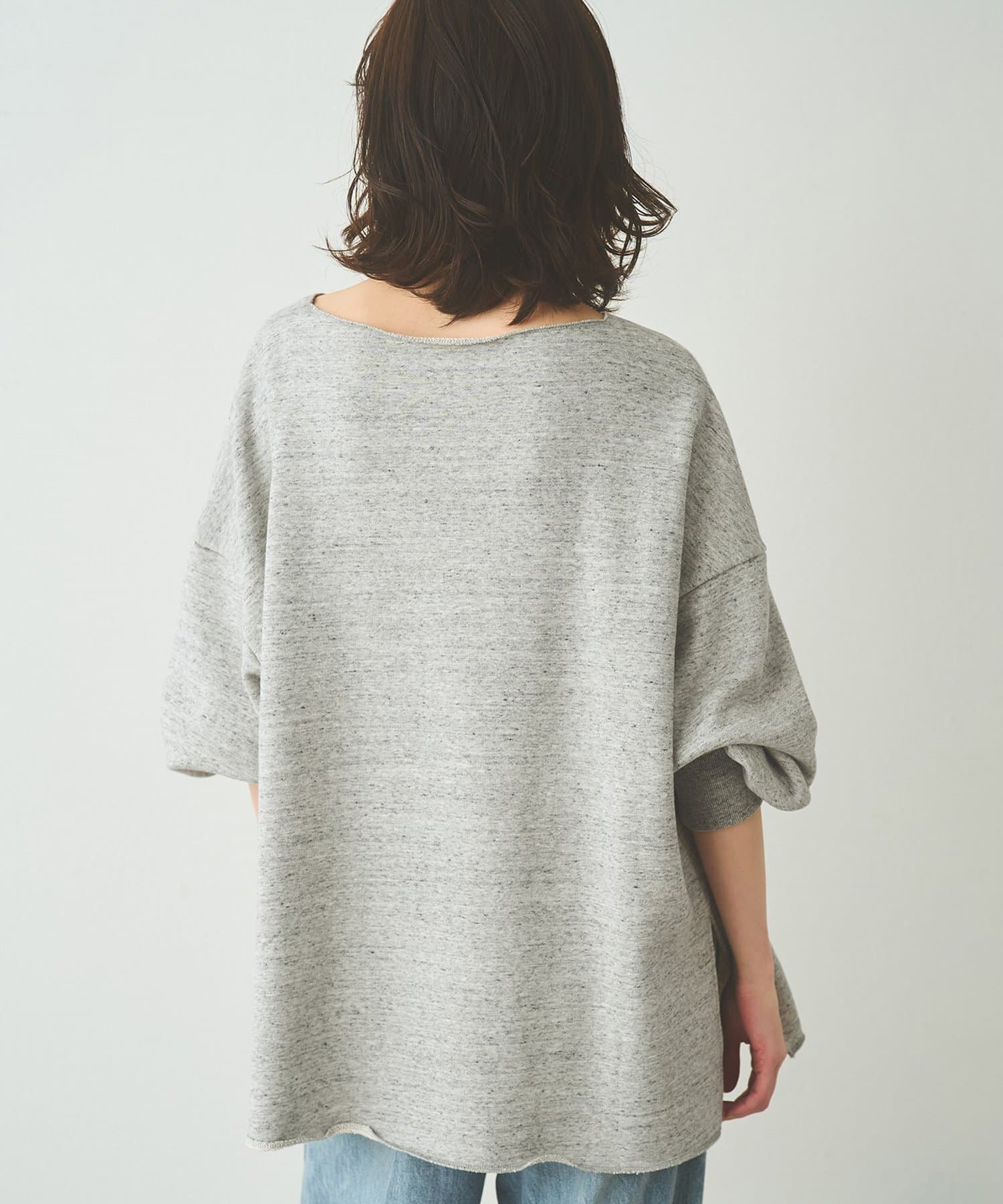 ■ゆったりとしたシルエットに、横に開いたネックラインが抜け感をプラス。