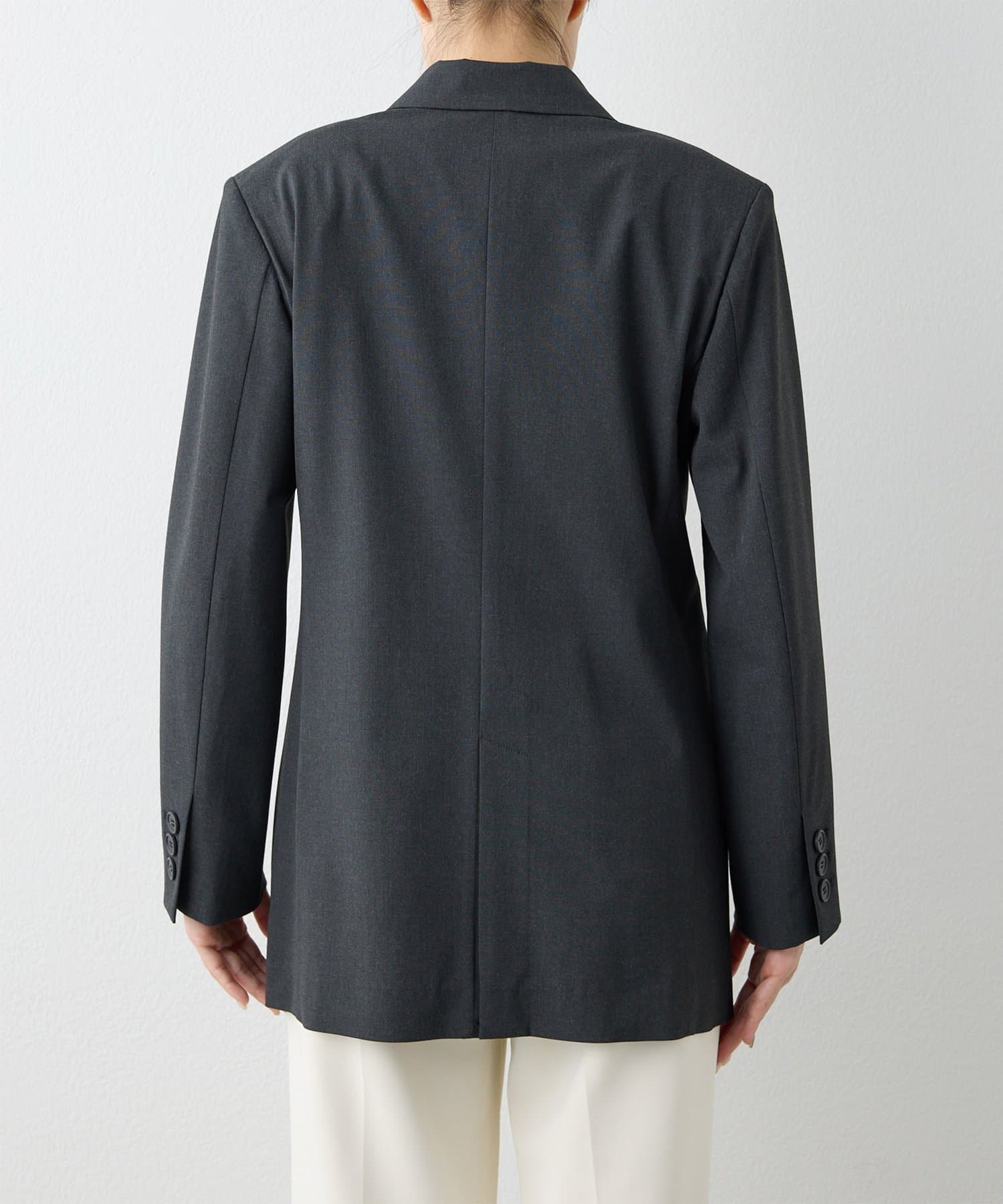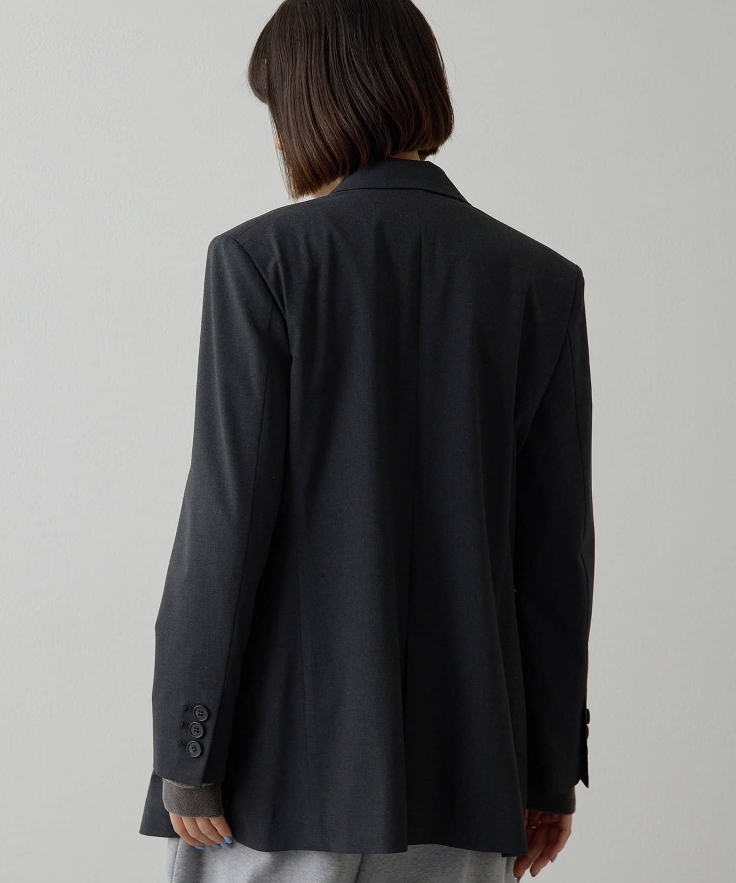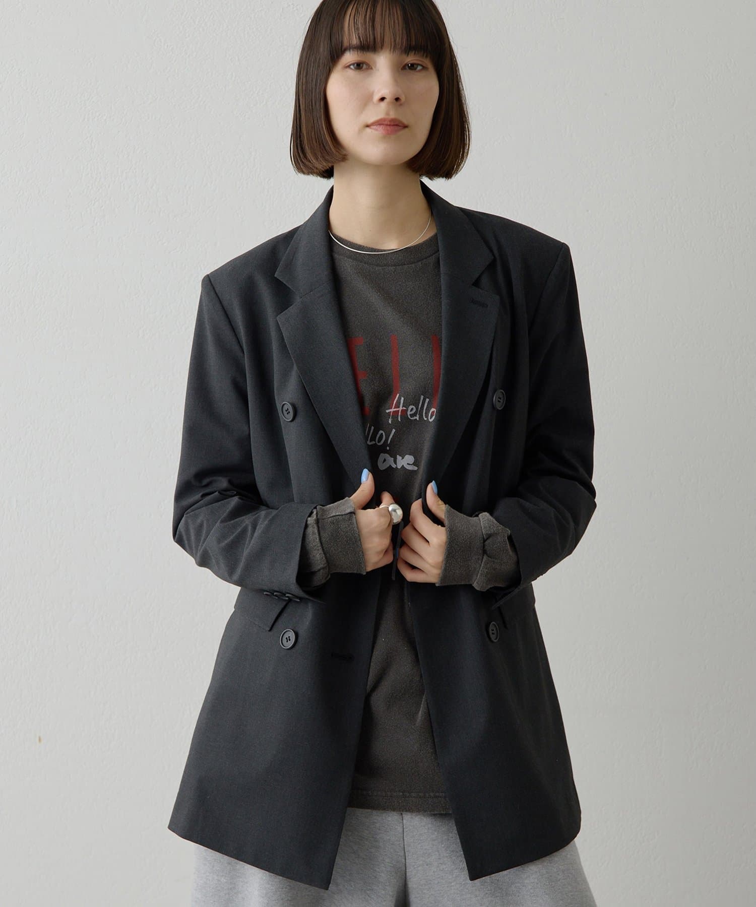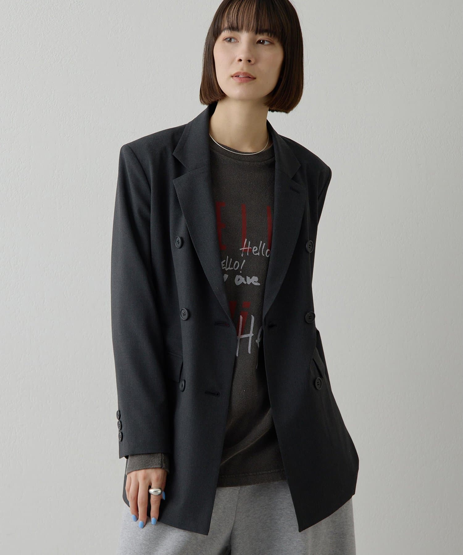 ■前を閉じてかっちりとした雰囲気を楽しんだり、オーバーなサイズ感を生かして前を開けてラフに羽織るスタイルもおすすめ。