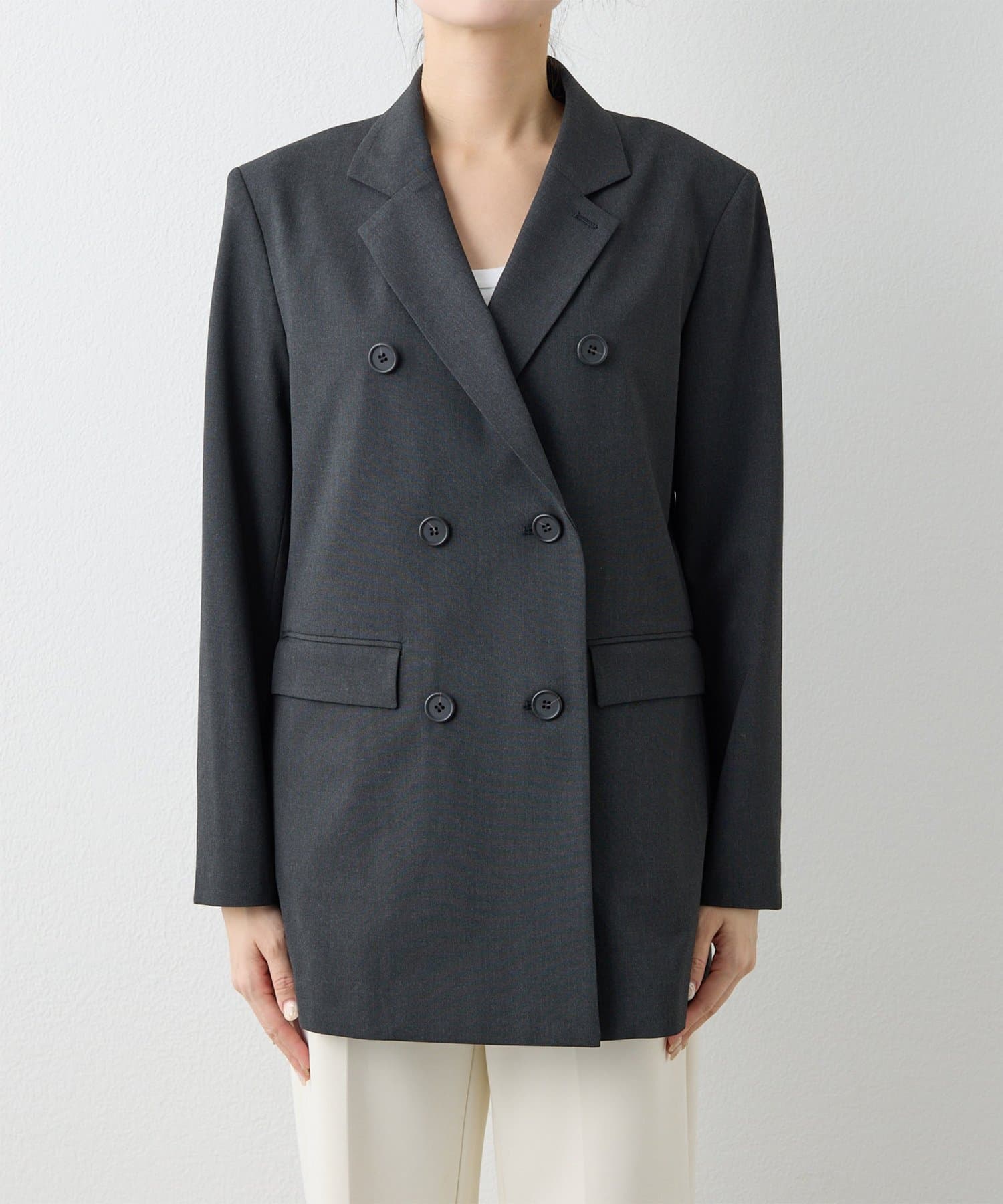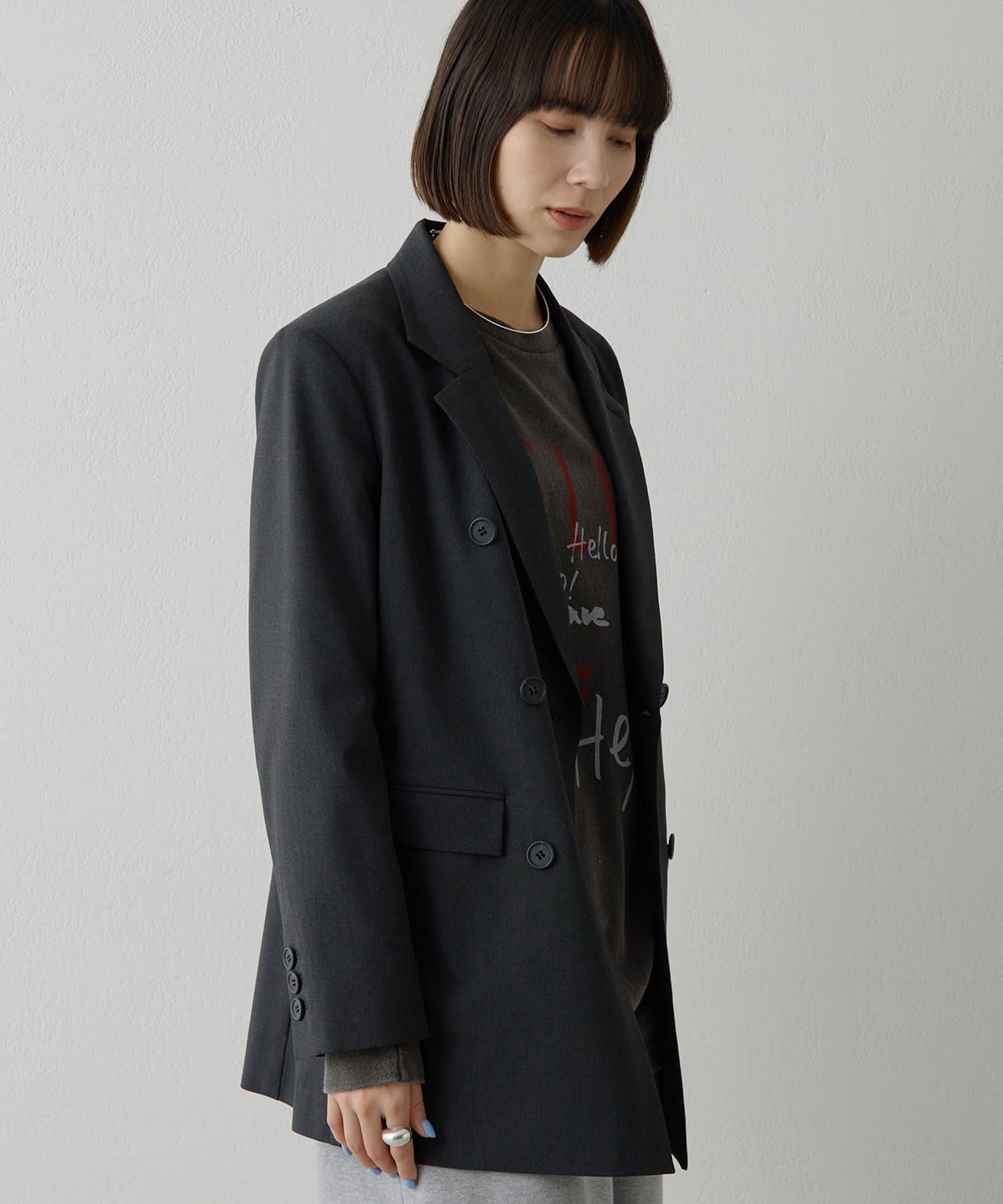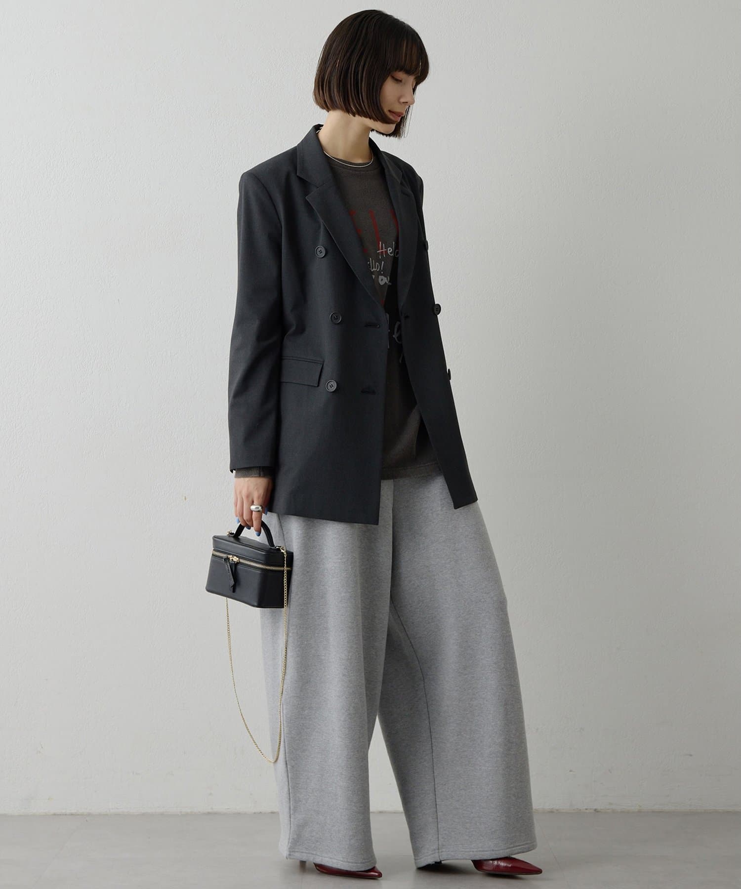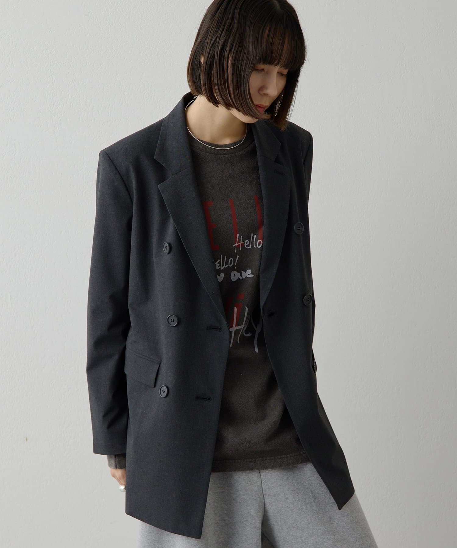 ■前を閉じてかっちりとした雰囲気を楽しんだり、オーバーなサイズ感を生かして前を開けてラフに羽織るスタイルもおすすめ。