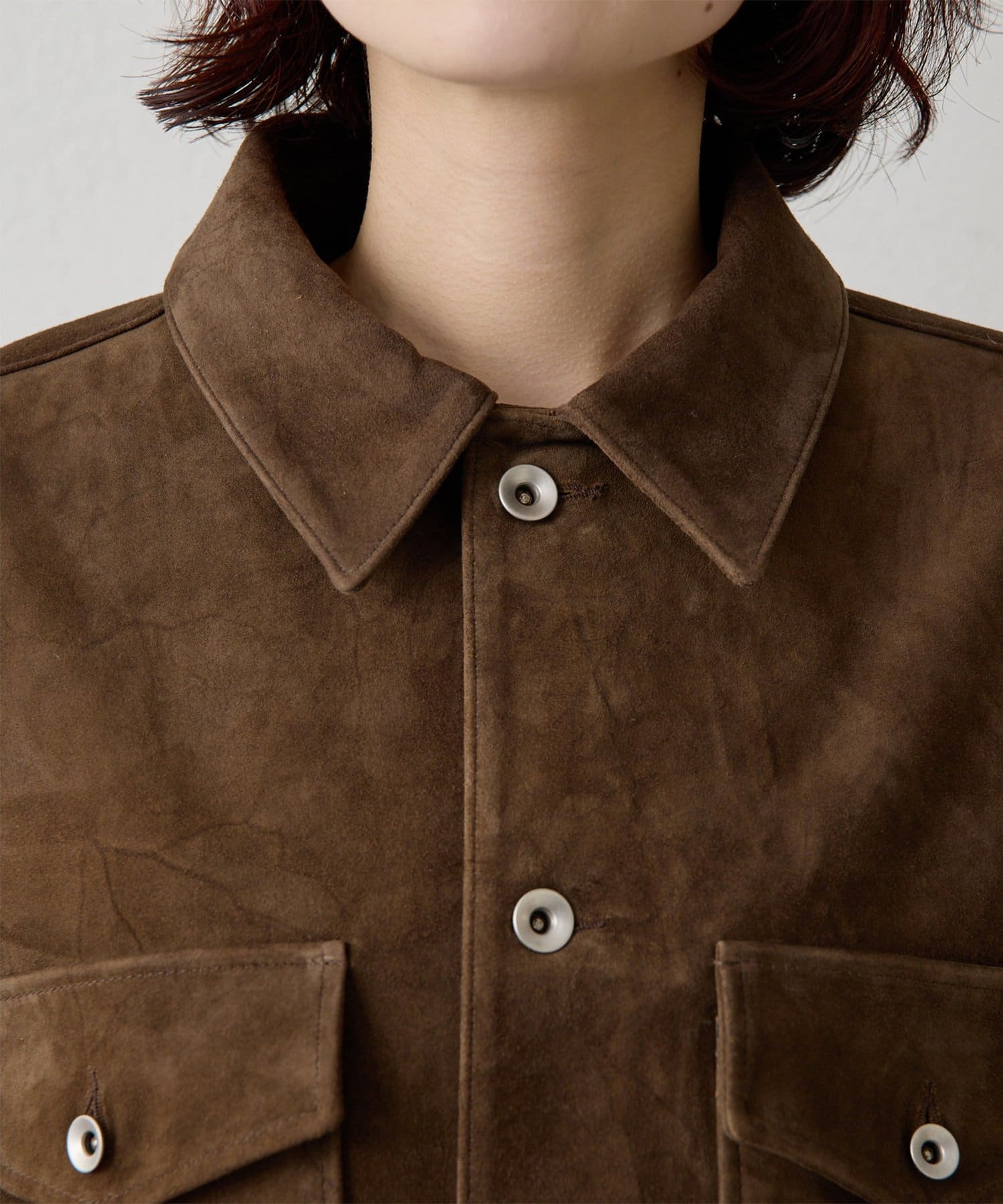 ■ゴートスエードレザーを使用したシャツジャケット。