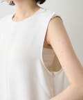 ■フロントはシンプルなクルーネック、バックはさりげないV開きにすることで、後ろ姿に女性らしい抜け感をプラス。