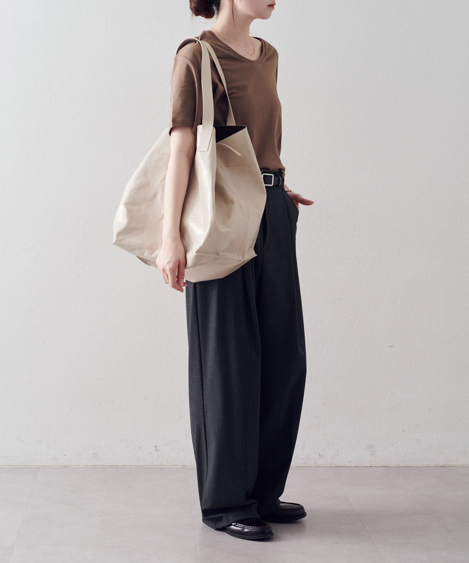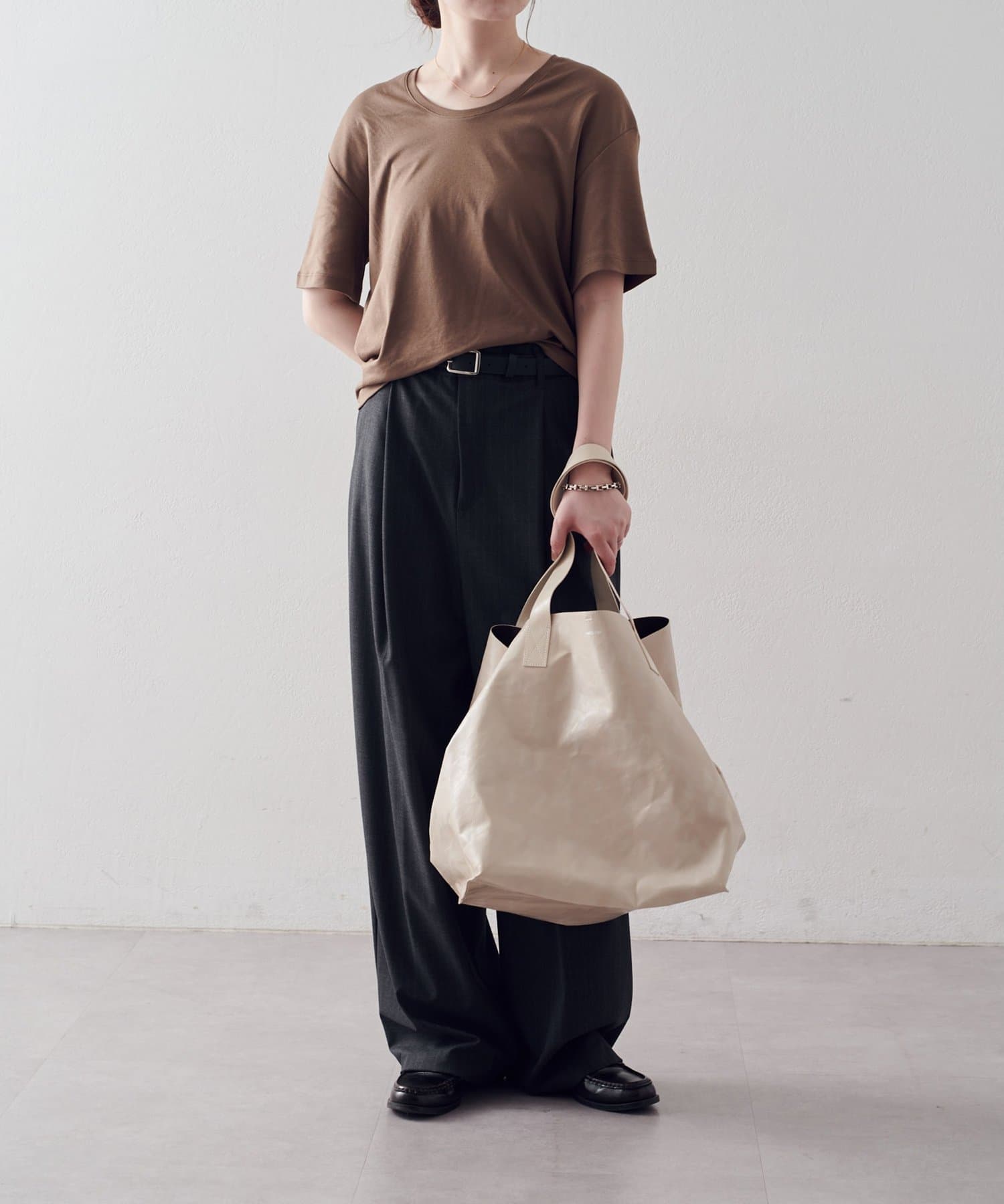 素材の質感と落ち感を活かし、無駄を削ぎ落としたフォルム。