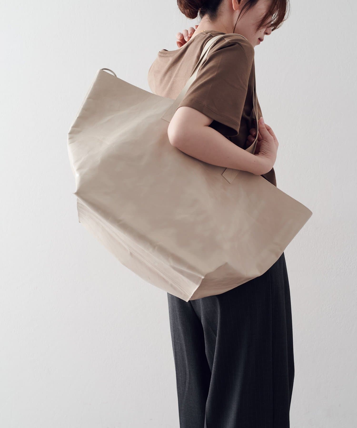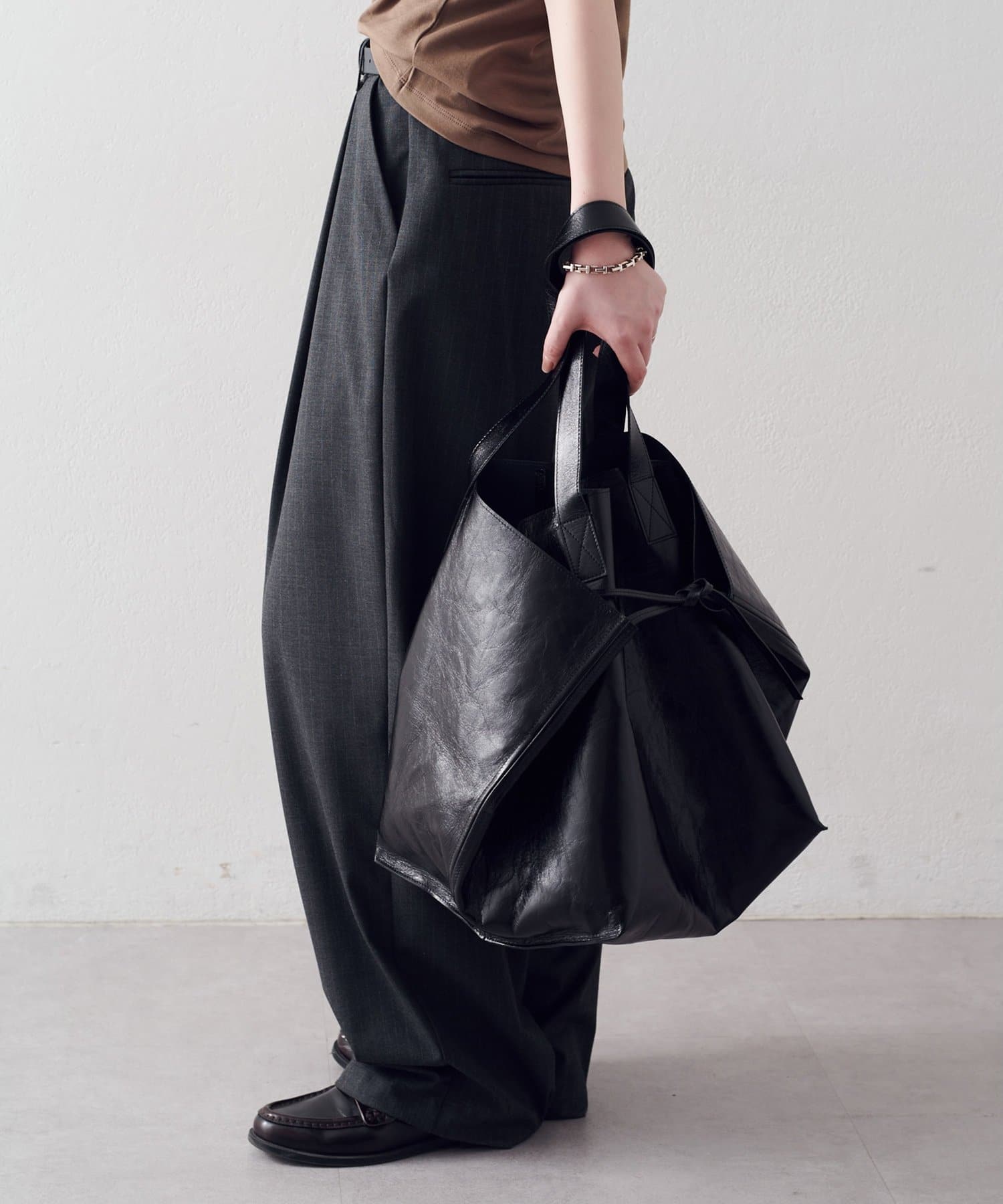 ・一枚のレザーを贅沢に用いたマキシトート