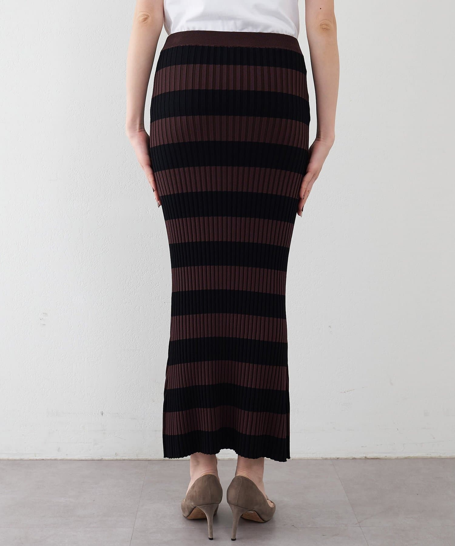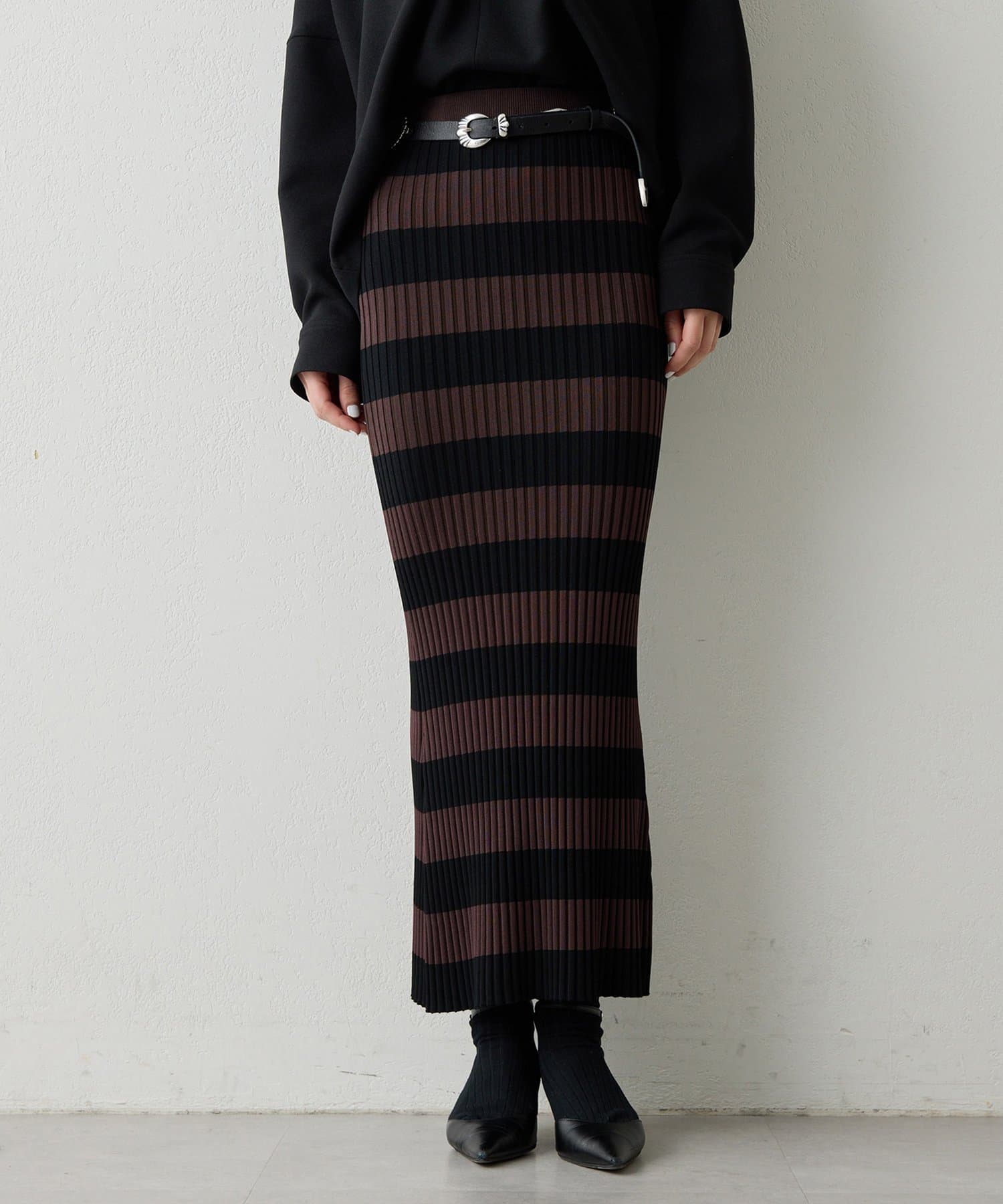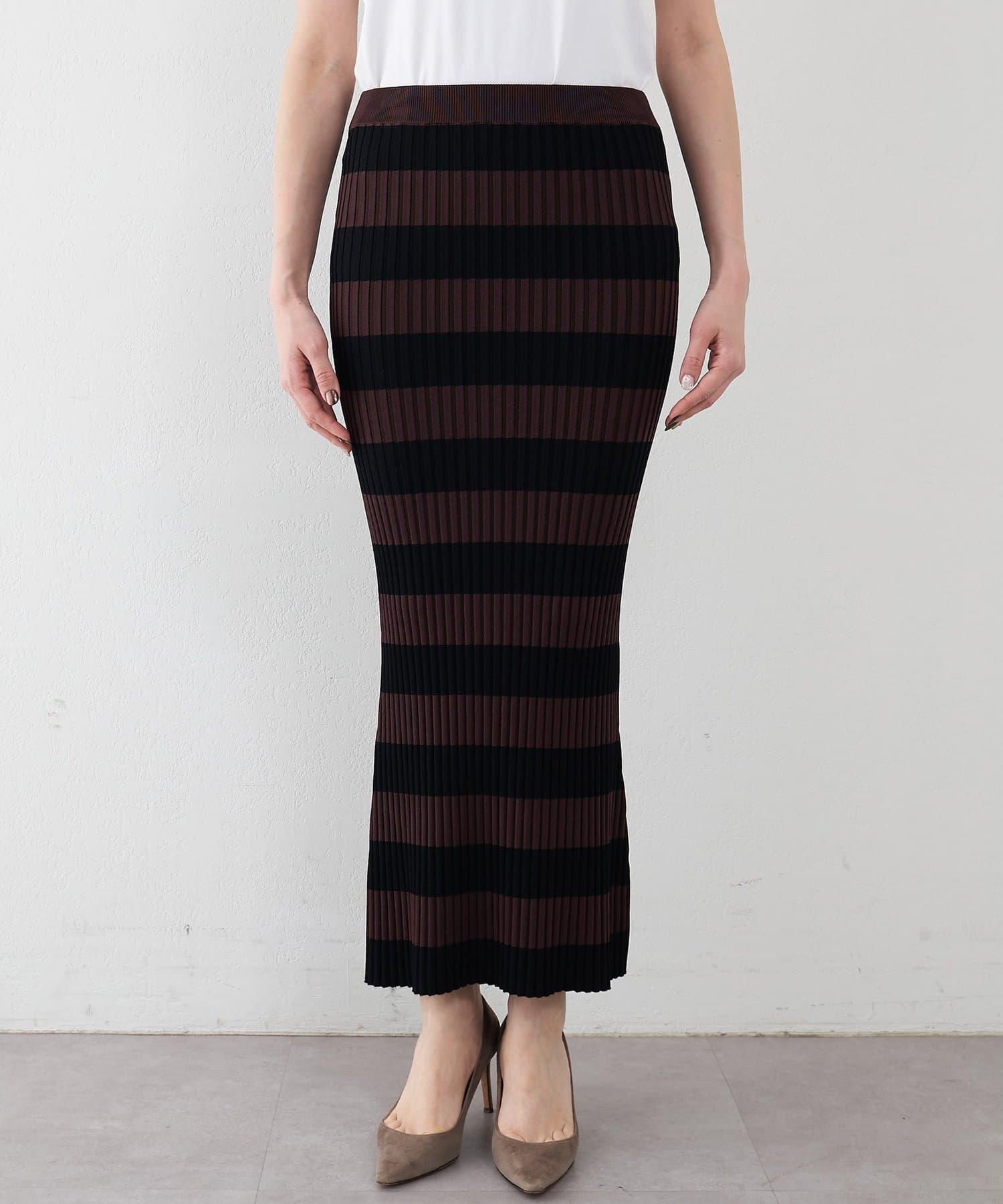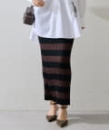 存在感のあるボーダー柄と美シルエットが印象的なニットスカート