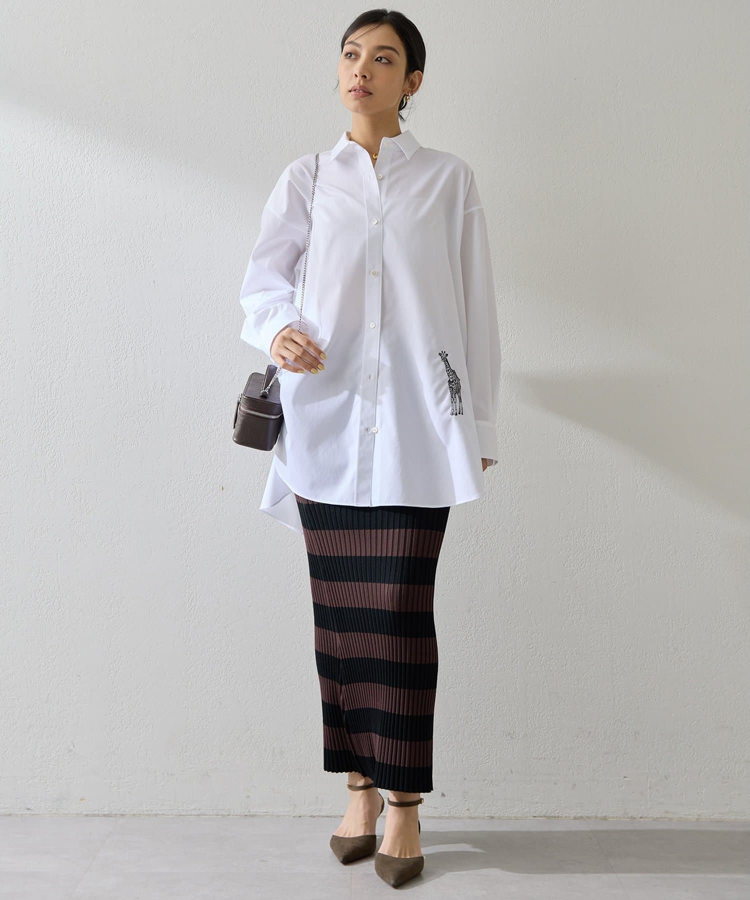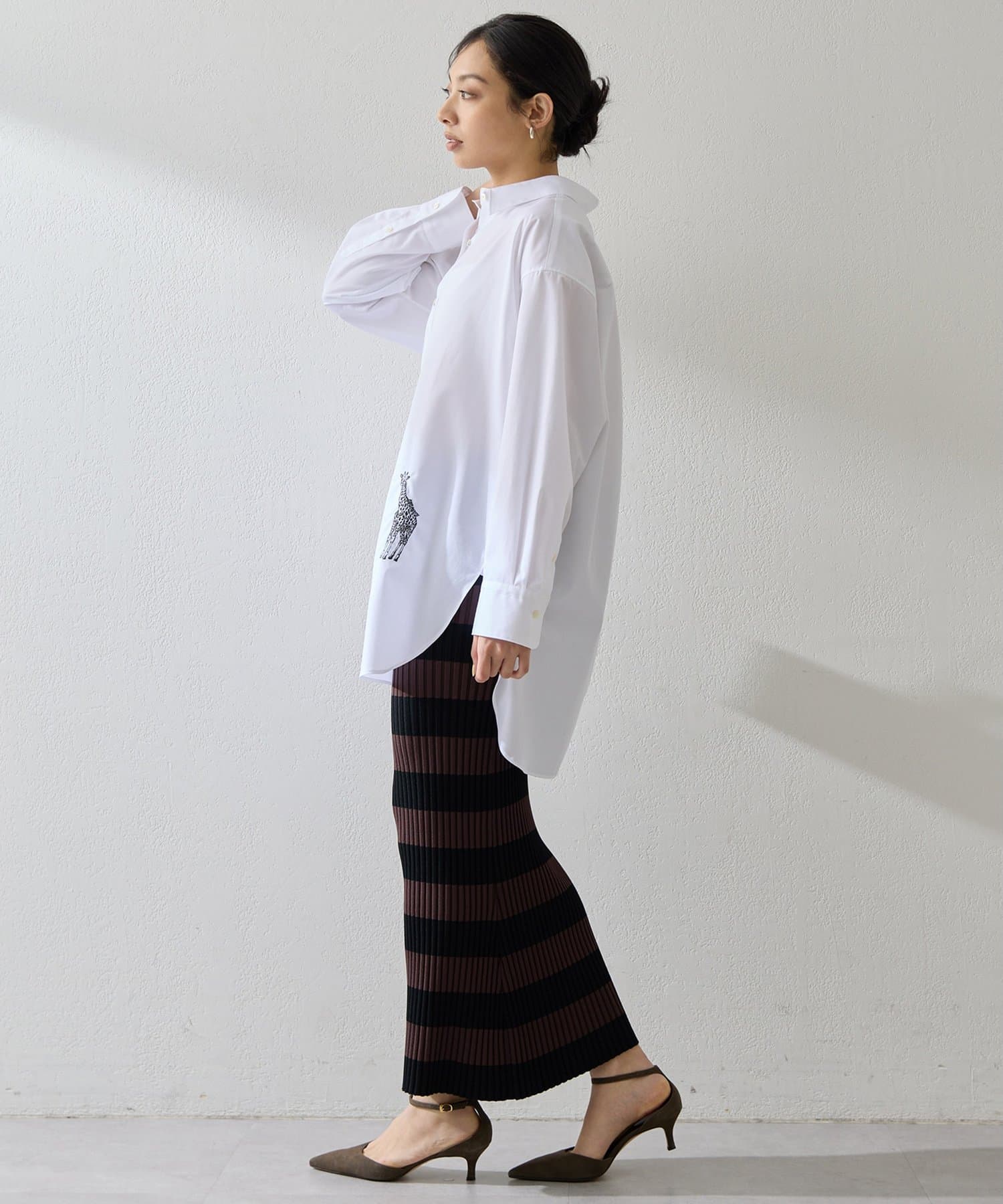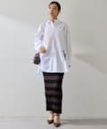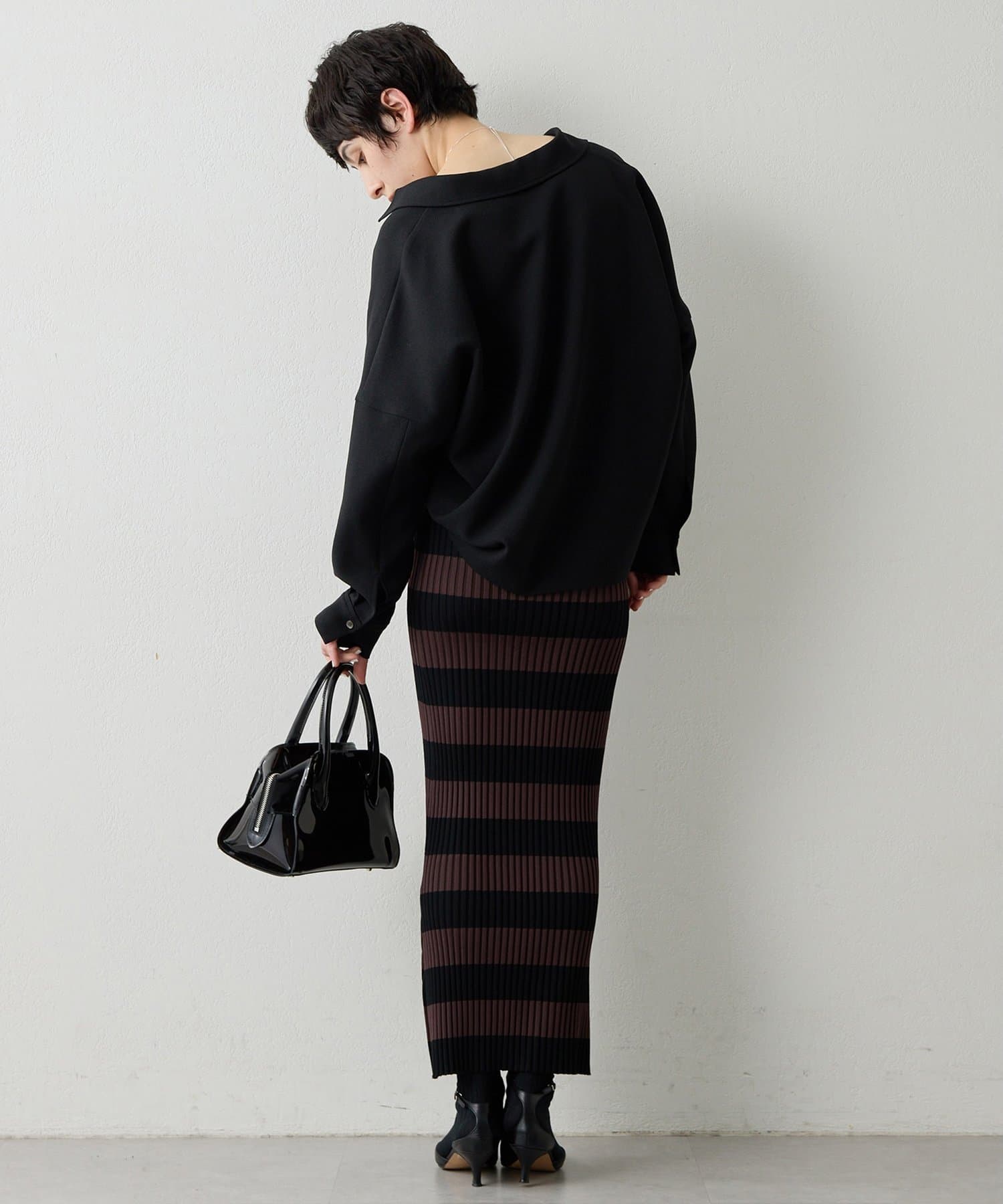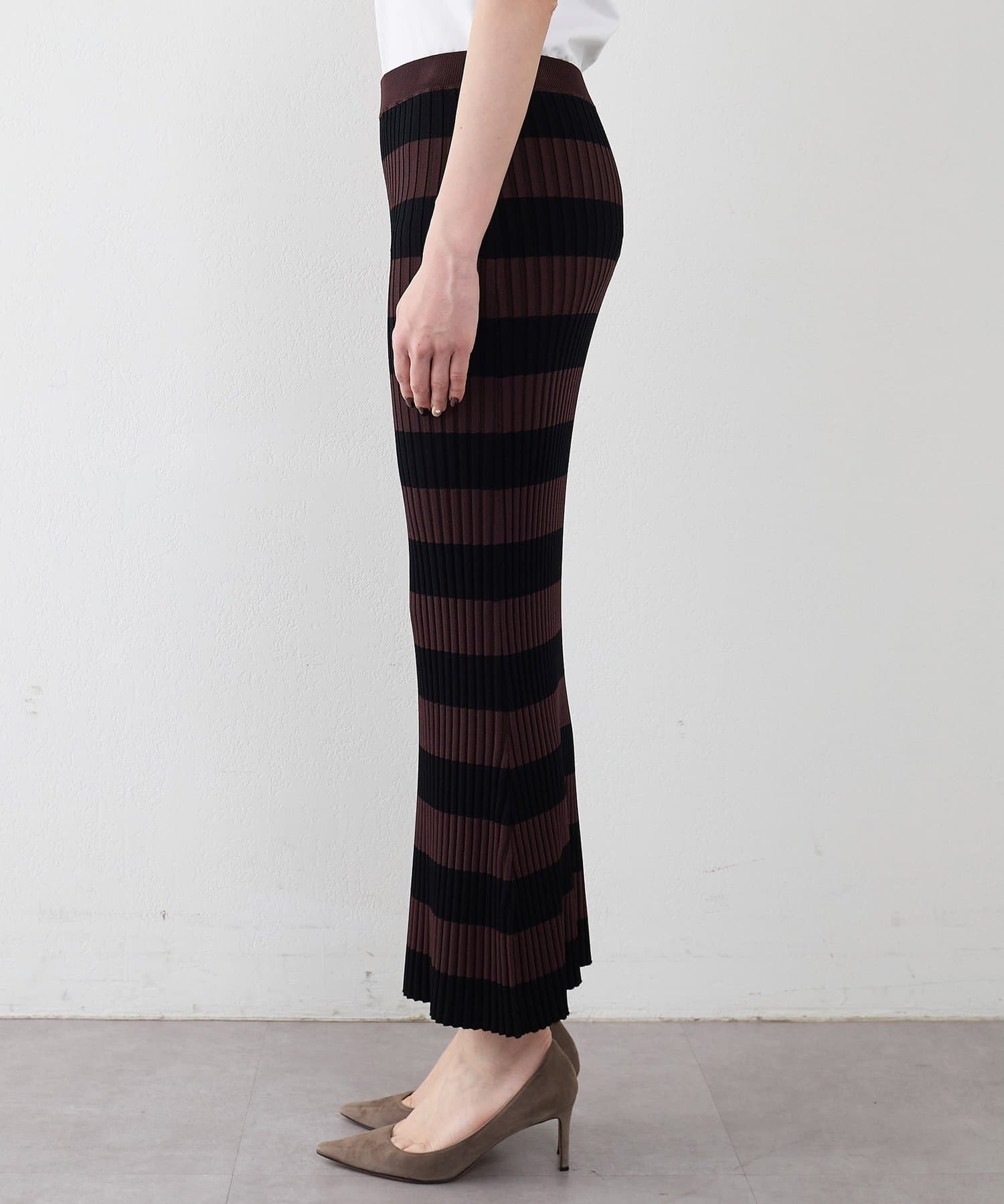 存在感のあるボーダー柄と美シルエットが印象的なニットスカート