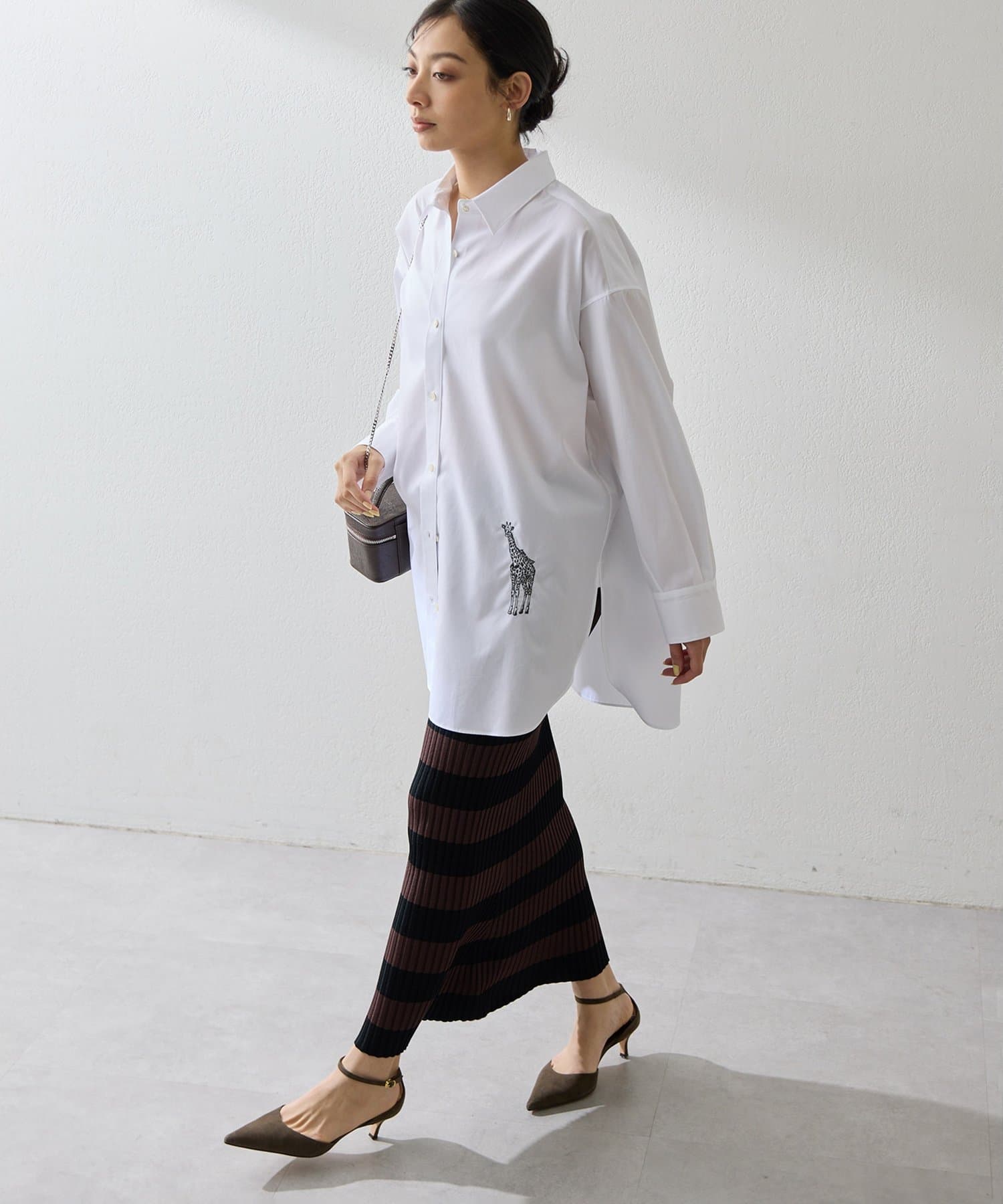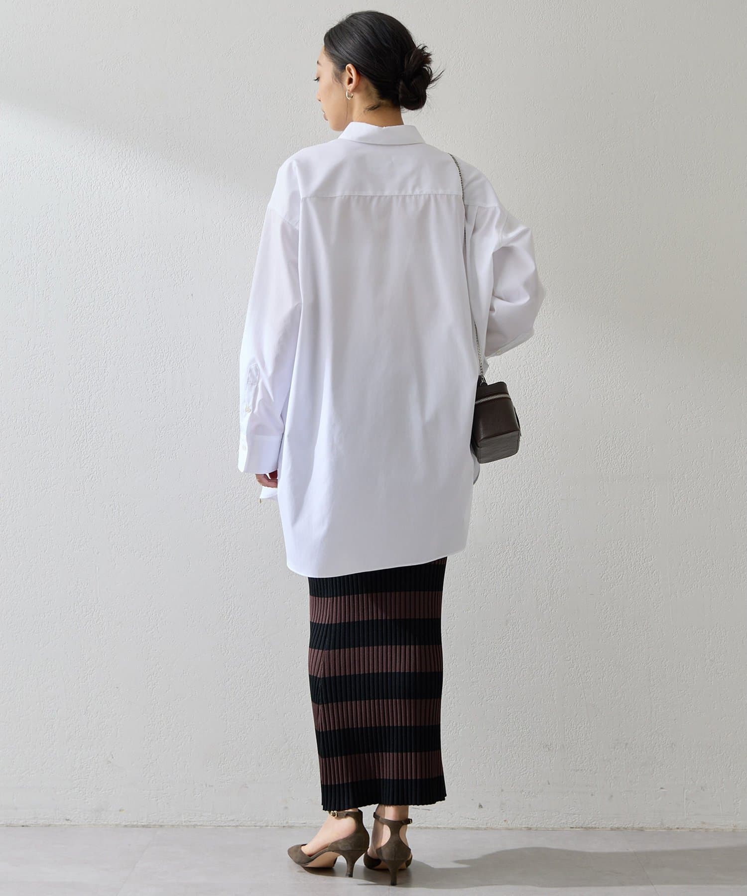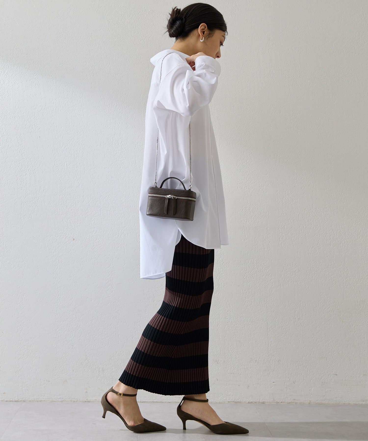 ■縦のラインを強調する配色で、すっきりとしたシルエットを演出。