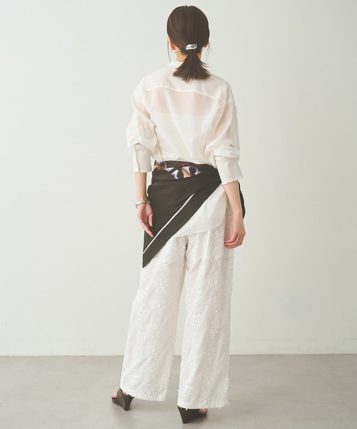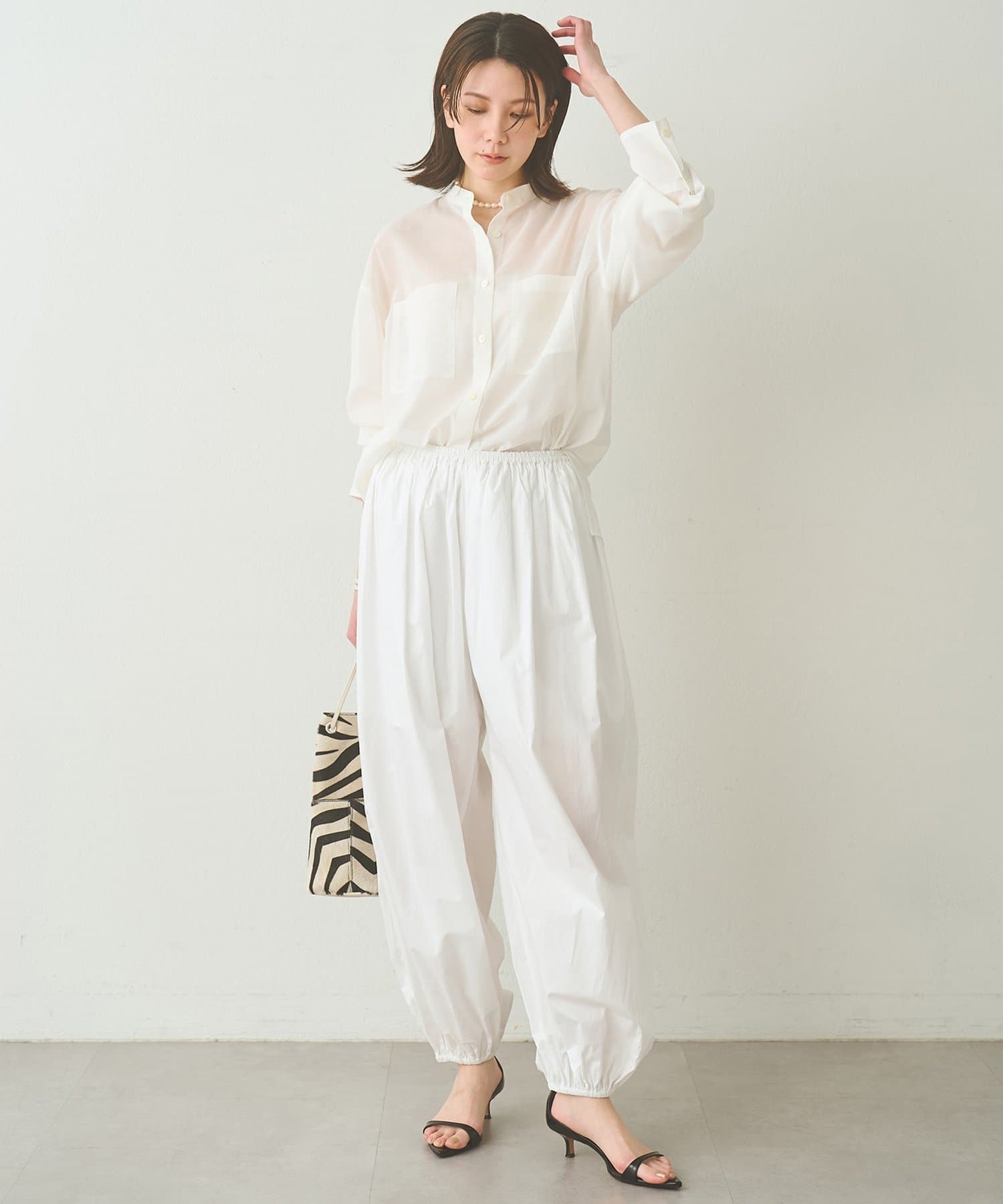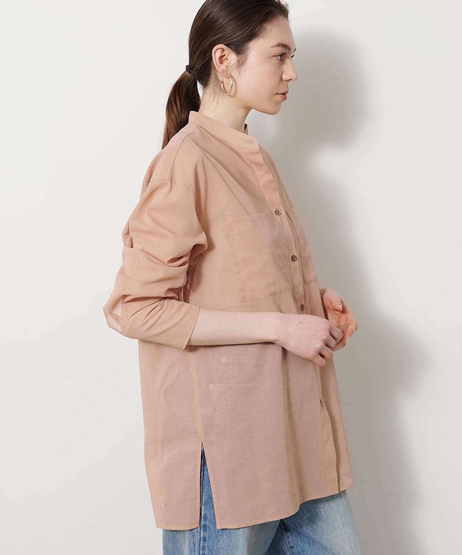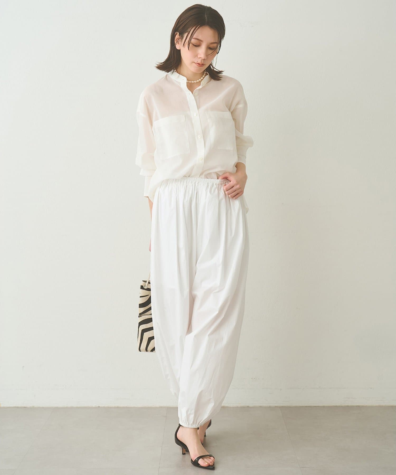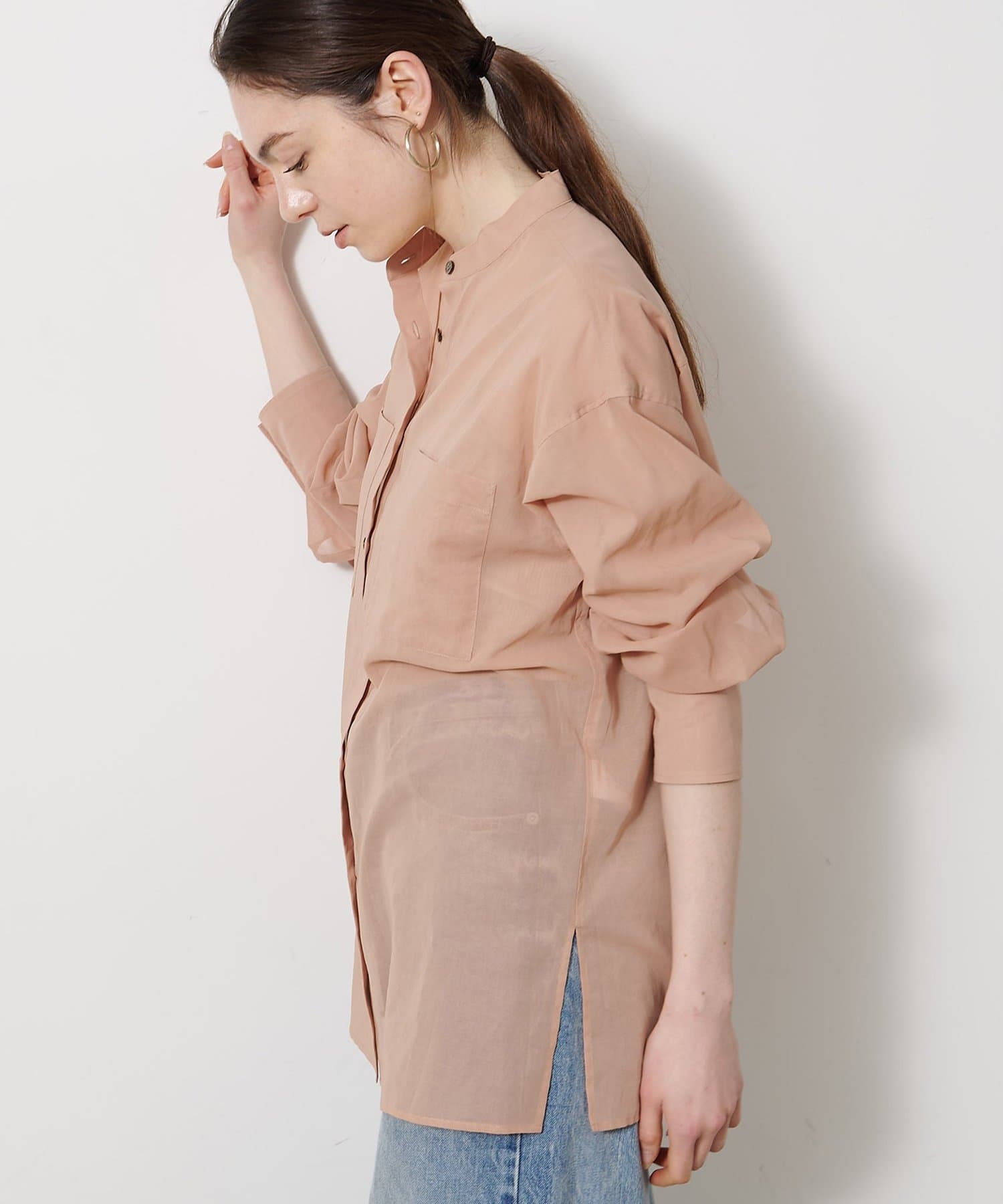 ■上品な透け感が合わせるアイテムを選ばないシアーシャツ。